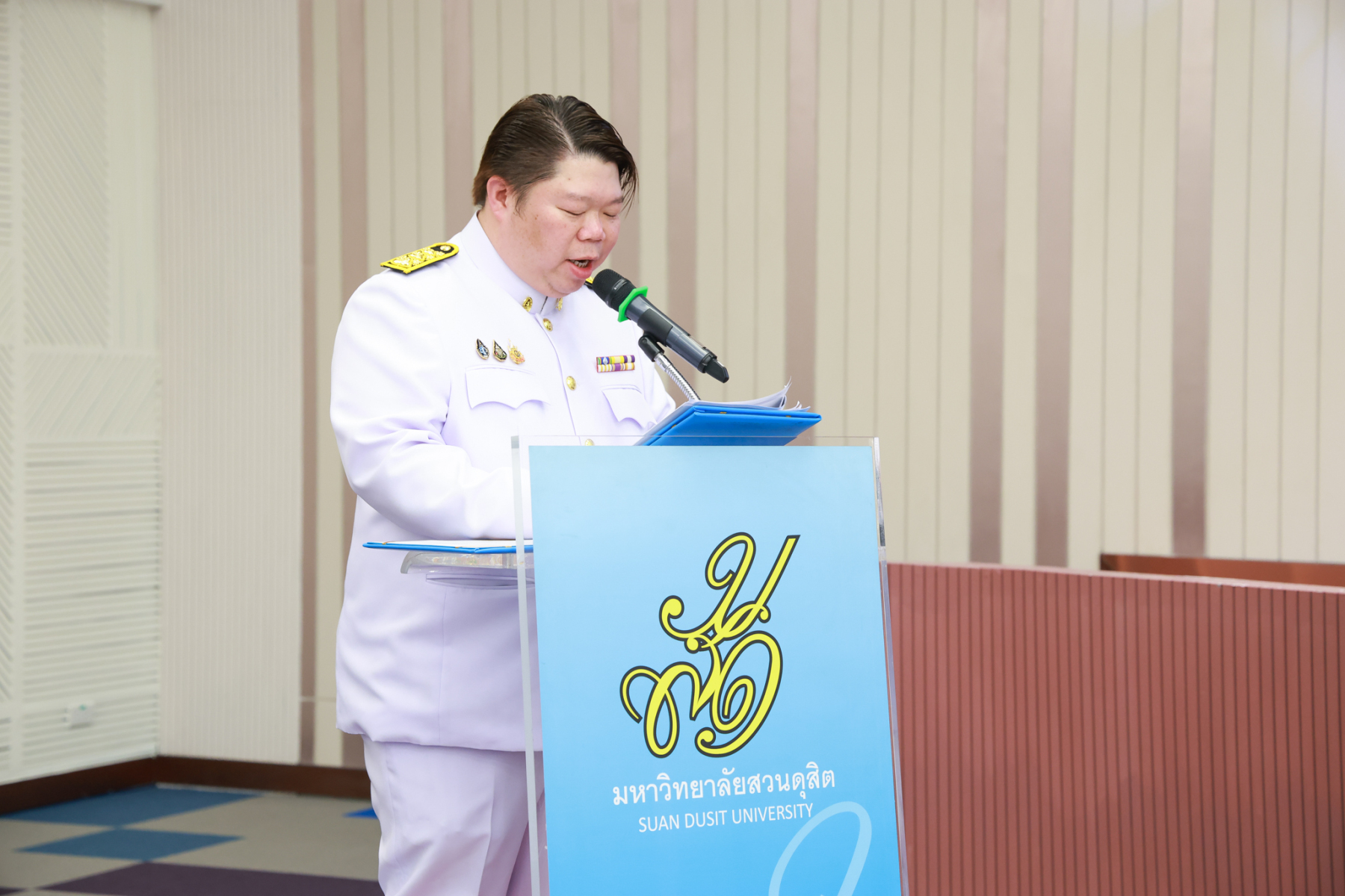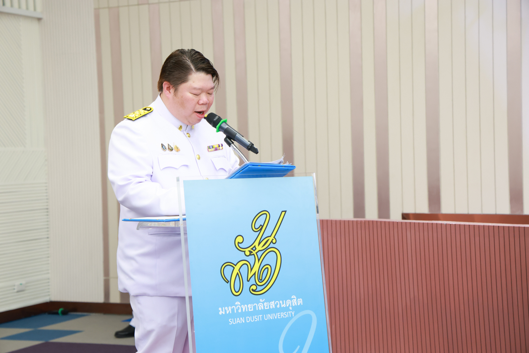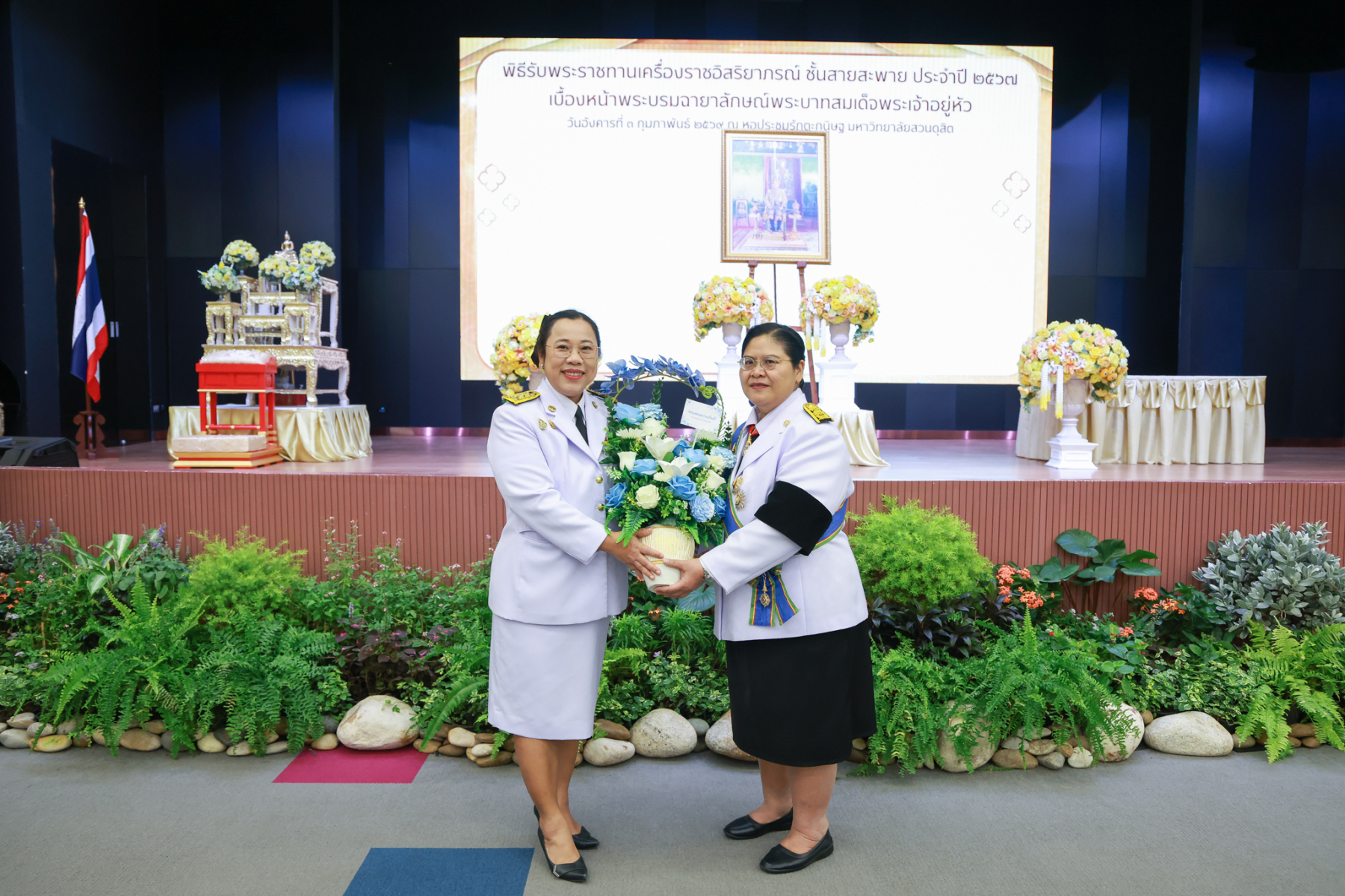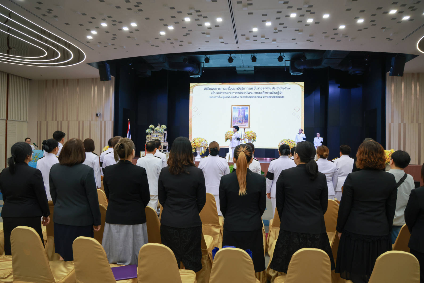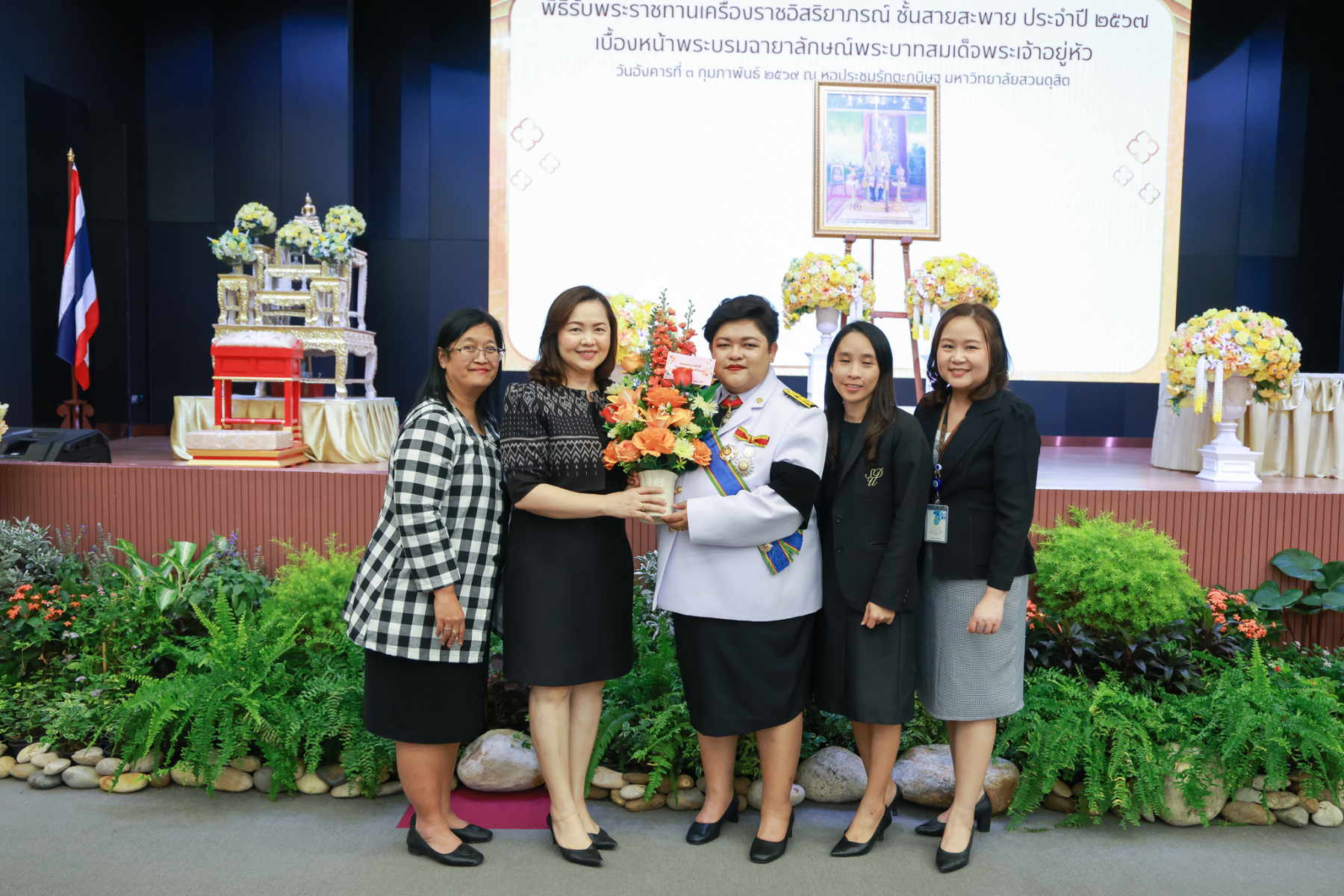 มหาวิทยาลัยสวนดุสิต จัดพิธีรับพระราชทานเครื่องราชอิสริยาภรณ์ ชั้นสายสะพาย ประจำปี 2567 เบื้องหน้าพระบรมฉายาลักษณ์พระบาทสมเด็จพระเจ้าอยู่หัว