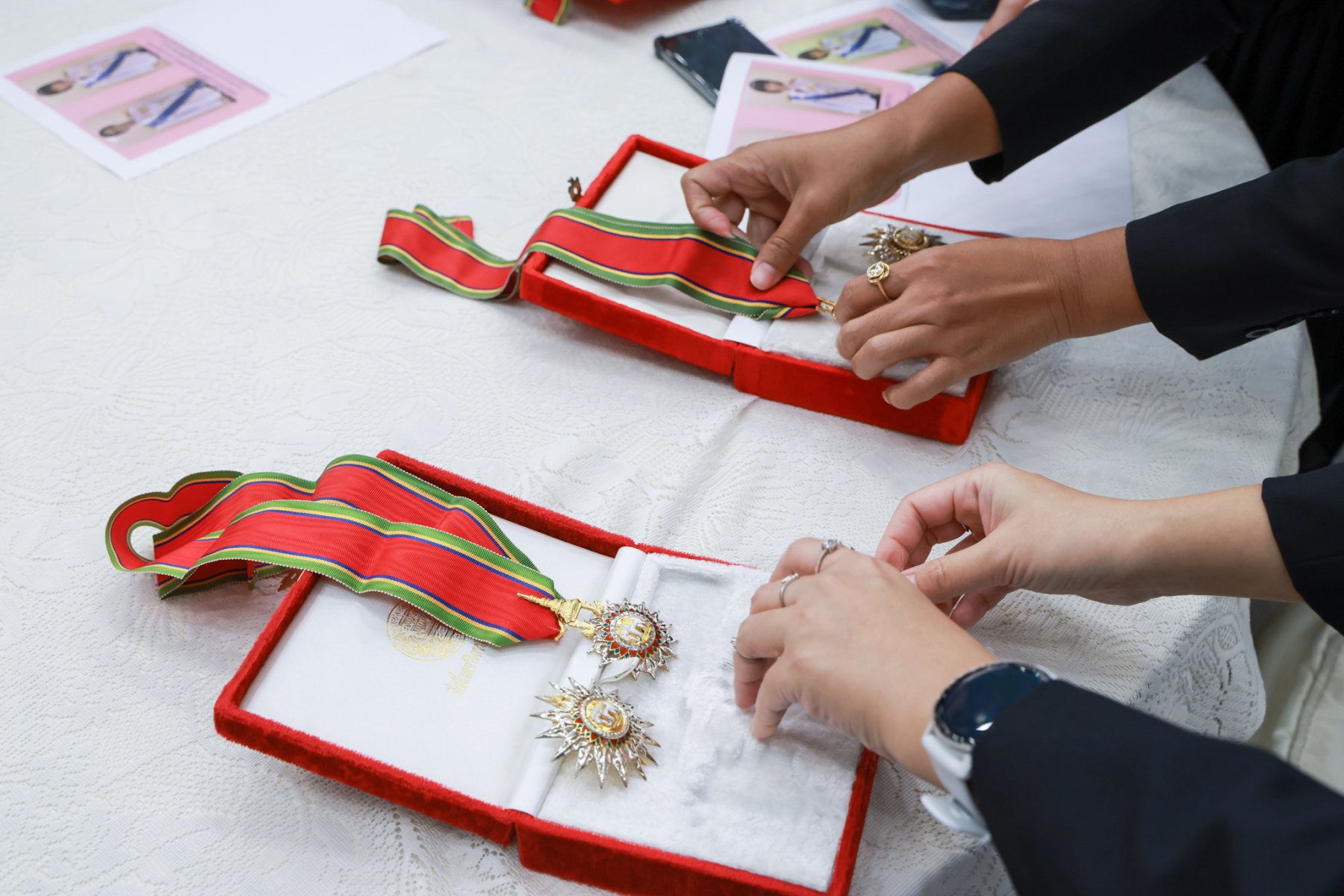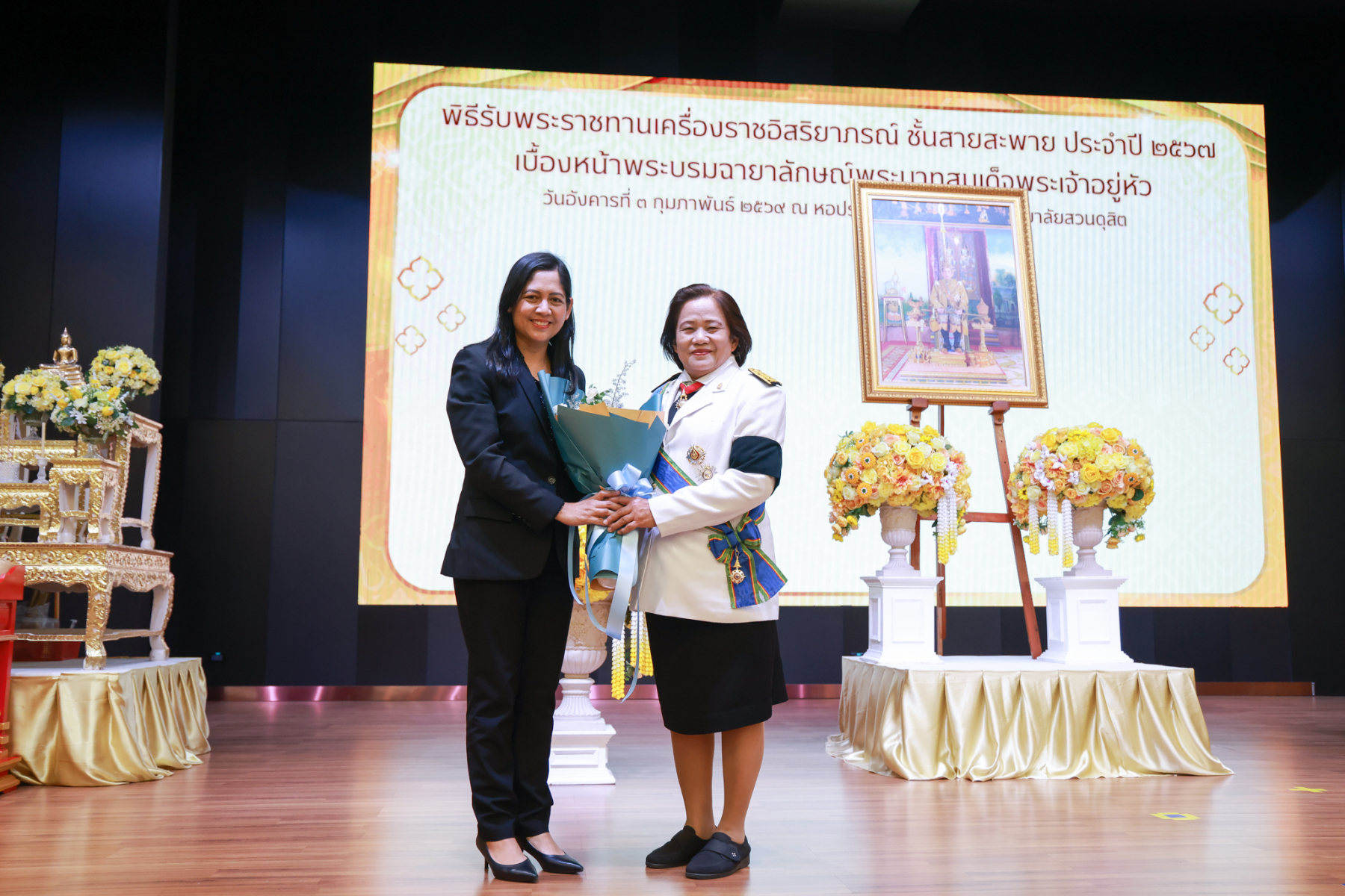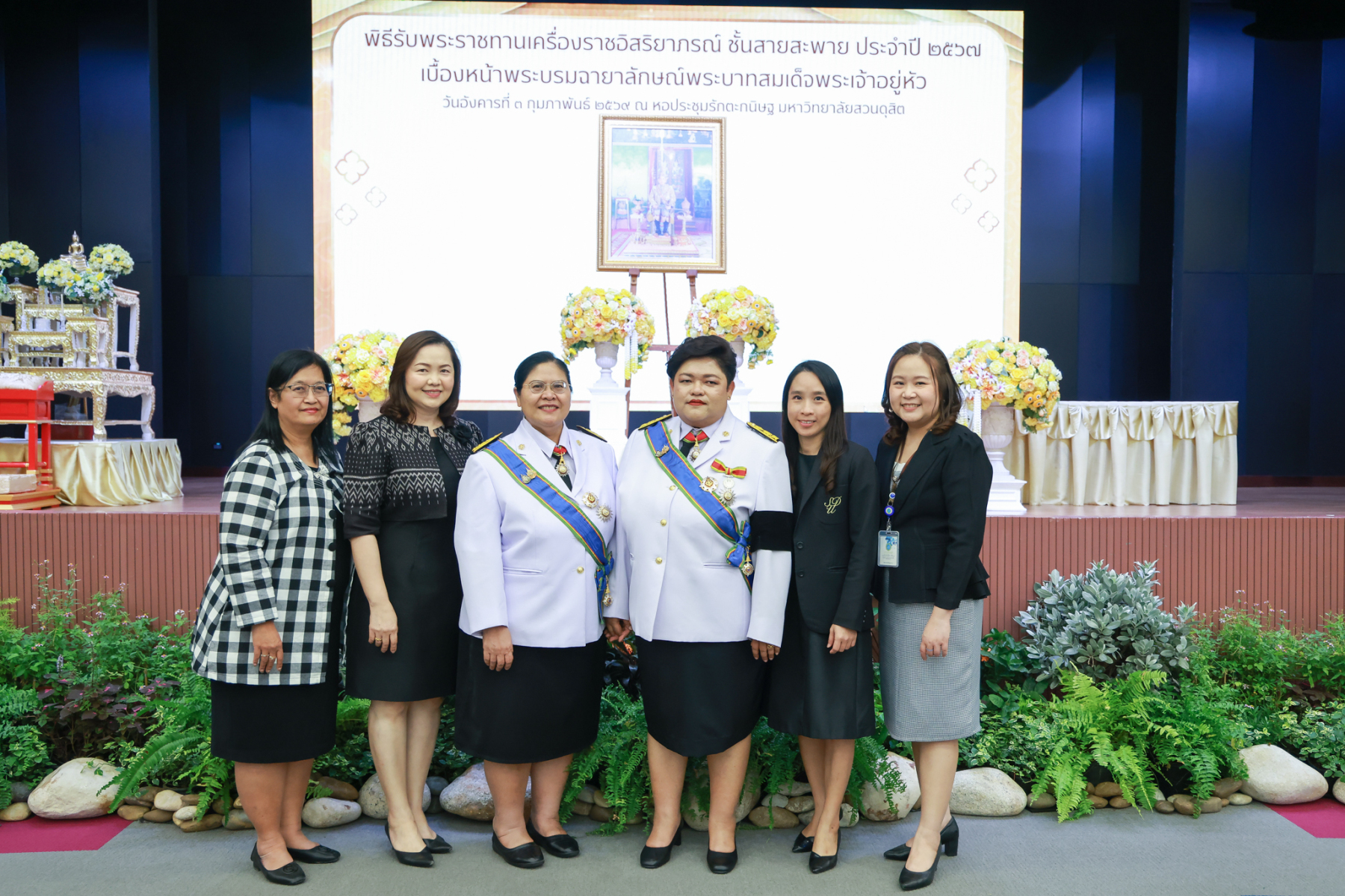 มหาวิทยาลัยสวนดุสิต จัดพิธีรับพระราชทานเครื่องราชอิสริยาภรณ์ ชั้นสายสะพาย ประจำปี 2567 เบื้องหน้าพระบรมฉายาลักษณ์พระบาทสมเด็จพระเจ้าอยู่หัว โดยรองศาสตราจารย์ พัชรี สวนแก้ว รองอธิการบดีฝ่ายกิจการนักศึกษา ปฏิบัติการแทนอธิการบดีมหาวิทยาลัยสวนดุสิต เป็นประธานในพิธี ซึ่งมีผู้ได้รับพระราชทานเครื่องราชอิสริยาภรณ์ ชั้นสายสะพาย ประจำปี 2567 ชั้นประถมาภรณ์มงกุฎไทย จำนวนรวมทั้งสิ้น 6 ราย ได้แก่ ผศ.ดร.ชฎามาศ ขาวสะอาด ผศ.ศศิพันธุ์ เปี๊ยนเปี่ยมสิน ผศ.ดร.เอื้ออารี จันทร ผศ.ดร.ธีรเดช ชื่นประภานุสรณ์ ผศ.ดร.สรพล จิระสวัสดิ์ ผศ.ดร.ขนิษฐา ปาลโมกข์ พิธีรับพระราชทานเครื่องราชอิสริยาภรณ์ ชั้นสายสะพาย ประจำปี 2567 เบื้องหน้าพระบรมฉายาลักษณ์พระบาทสมเด็จพระเจ้าอยู่หัว จัดขึ้น ณ หอประชุมรักตะกนิษฐ ชั้น 1 มหาวิทยาลัยสวนดุสิต เมื่อวันที่ 3 กุมภาพันธ์ 2569