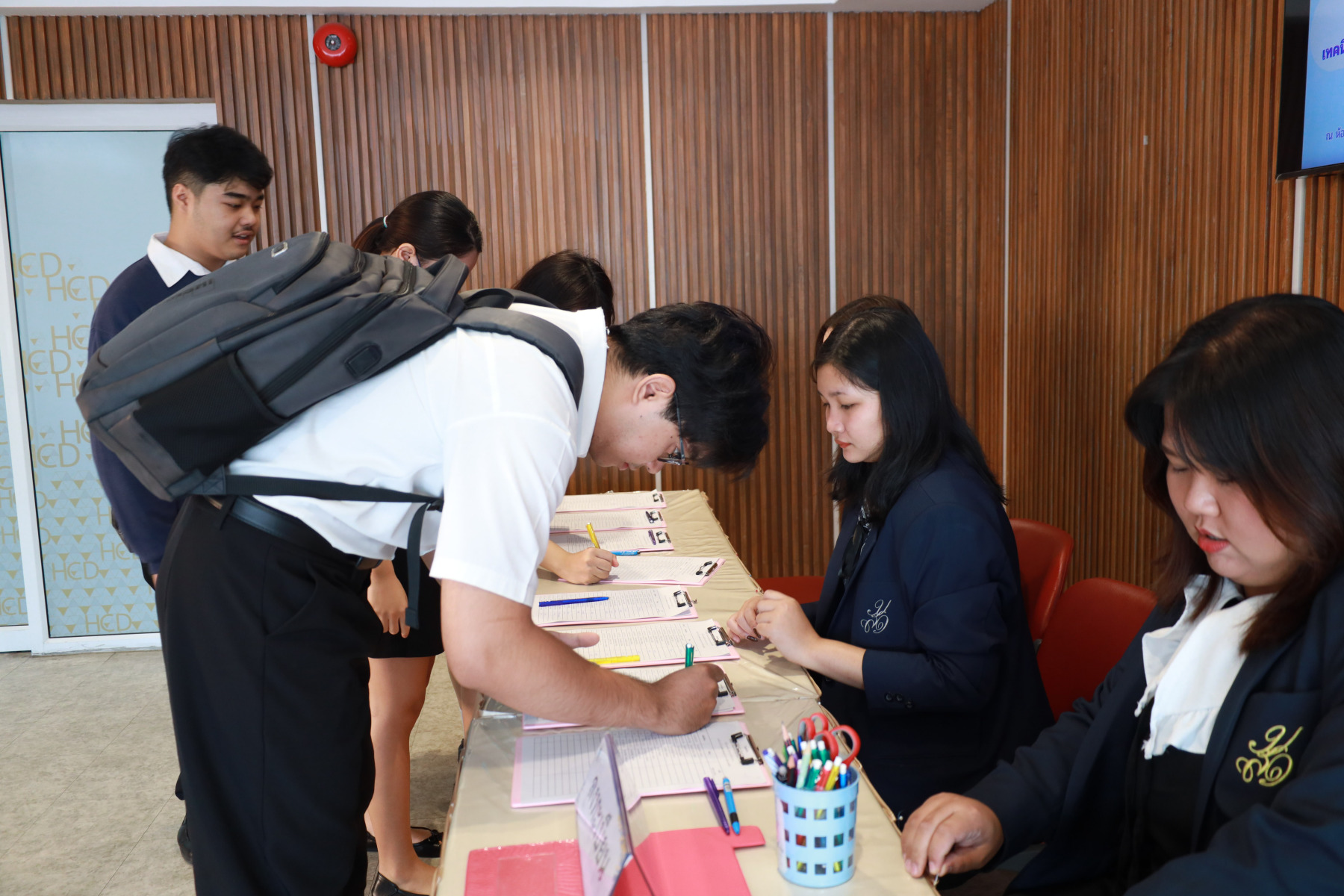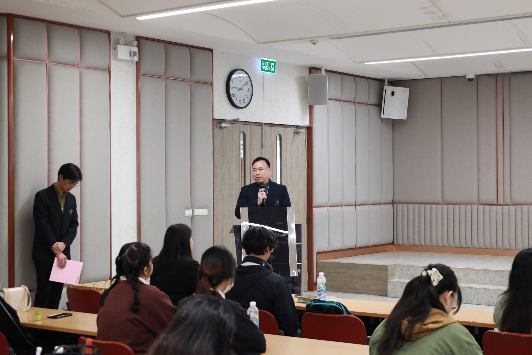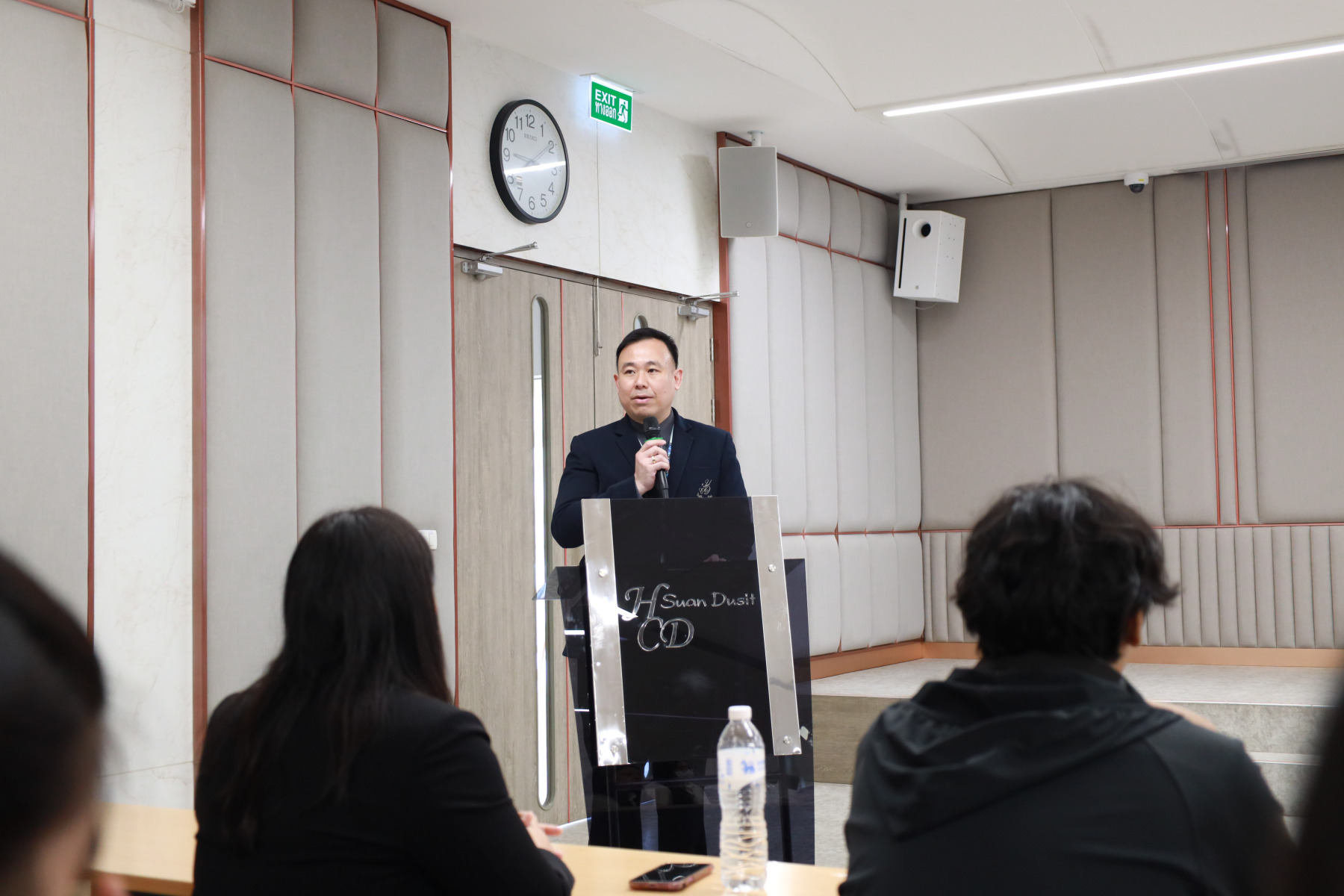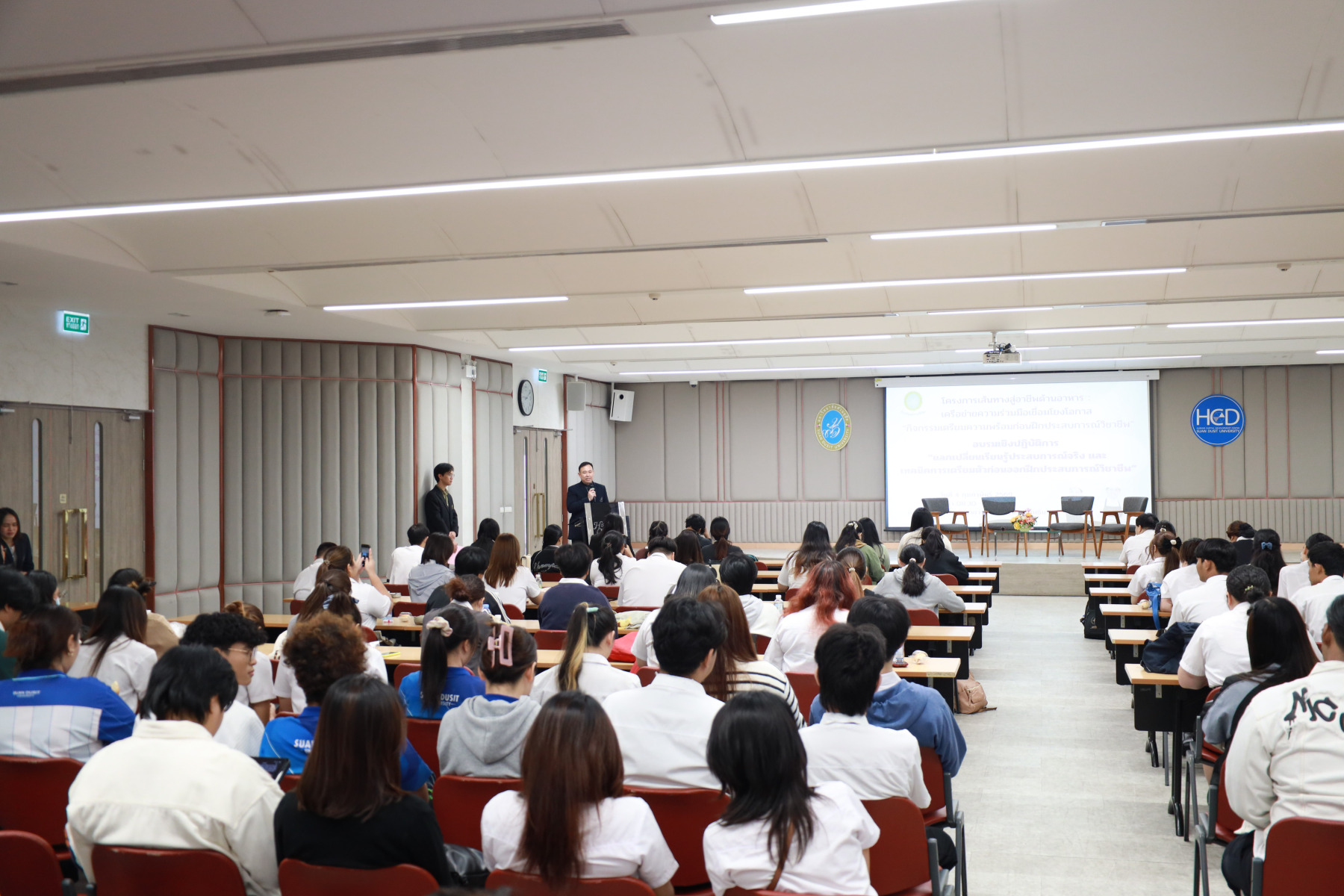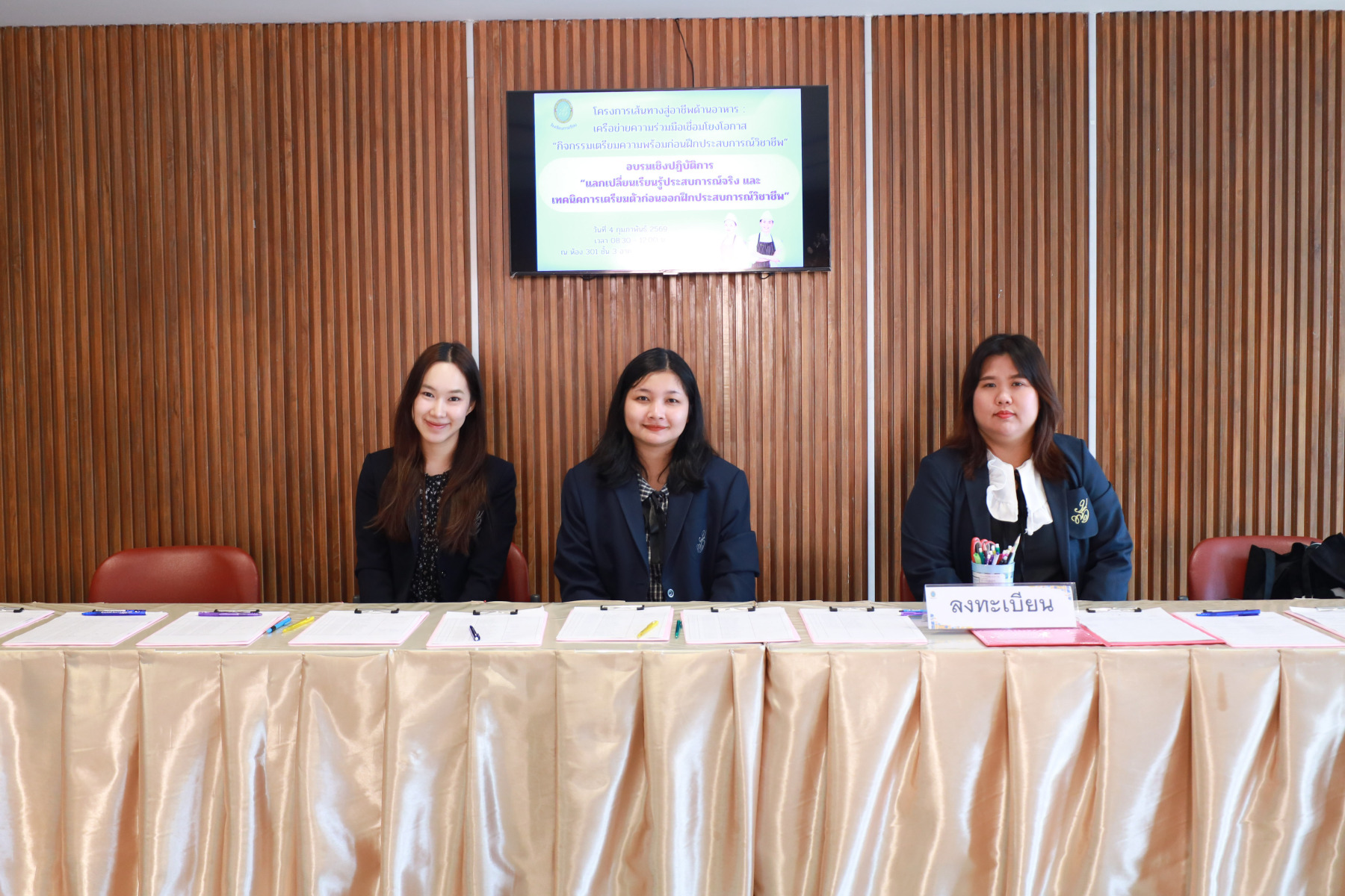 โรงเรียนการเรือน มหาวิทยาลัยสวนดุสิต จัดกิจกรรมเตรียมความพร้อมก่อนฝึกประสบการณ์วิชาชีพ ภายใต้โครงการเส้นทางสู่อาชีพด้านอาหาร : เครือข่ายความร่วมมือเชื่อมโยงโอกาส โดยได้รับเกียรติจาก ผู้ช่วยศาสตราจารย์ ว่าที่ ร้อยตรี ดร.ธนพัฒน์ แสงรุ่งเรือง คณบดีโรงเรียนการเรือน กล่าวเปิดงาน ดร.จันทร์จนา ศิริพันธ์วัฒนา ประธานที่ปรึกษาคณบดีโรงเรียนการเรือน กล่าวให้โอวาท ต่อด้วยกิจกรรมการอบรมเชิงปฏิบัติการ หัวข้อ “แลกเปลี่ยนเรียนรู้ประสบการณ์จริง และเทคนิคการเตรียมตัวก่อนออกฝึกประสบการณ์” โดยได้รับเกียรติจากวิทยากร ได้แก่ ดร.พัสสนันท์ แย้มฉ่ำไพร ผู้จัดการโครงการอาหารกลางวัน 1 (ครัวสวนดุสิต) คุณพรประภา คนรำ (Head Chef /R&D บริษัท Peace Oriental Teahouse) และคุณชนะราช พิมพ์พันธ์ (Executive Sous Chef of Pullman King Power Hotel) ดำเนินรายการ โดย ดร.จันทร์จนา ศิริพันธ์วัฒนา ประธานที่ปรึกษาคณบดีโรงเรียนการเรือนและผู้จัดการสวนดุสิตโฮมเบเกอรี่ จากนั้นเป็นการแนะนำสถานประกอบการที่ทำ MOU ร่วมกับ โรงเรียนการเรือน (รูปแบบ Clip Video) โดยจัดขึ้นในวันที่ 4 กุมภาพันธ์ 2569 ณ ห้อง 301 ชั้น 3 ศูนย์พัฒนาทนมนุษย์ อาคาร ดร.ศิโรจน์ ผลพันธิน