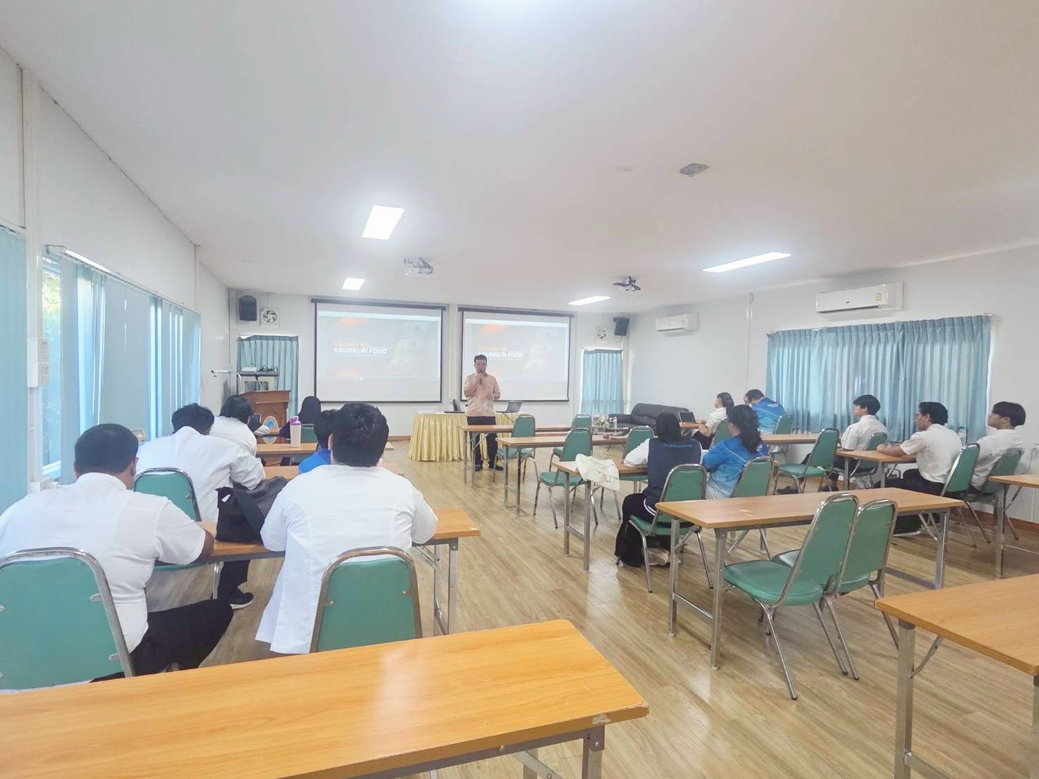 โดยได้รับเกียรติจากวิทยาการผู้มีความรู้ ความเชี่ยวชาญ และประสบการณ์ด้านนวัตกรรมทางธุรกิจอาหาร คุณจีระศักดิ์ ทับเที่ยง ประธานชมรมผู้ประกอบการร้านอาหารจังหวัดตรัง ซึ่งชมรมผู้ประกอบการร้านอาหารจังหวัดตรังเป็นหนึ่งในเครือข่ายความร่วมมือทางวิชาการกับมหาวิทยาลัยสวนดุสิต ศูนย์การศึกษา ตรัง โดยกลุ่มเป้าหมาย ได้แก่ นักศึกษาชั้นปีที่ 3 หลักสูตรการจัดการบัณฑิต ในรายวิชานวัตกรรมทางธุรกิจอาหารฮาลาล อาจารย์ผู้สอน ดร.นวลรัตน์ วัฒนา นักศึกษาชั้นปีที่ 3 สาขาวิชาเทคโนโลยีการประกอบอาหารและการบริการ ในรายวิชาพัฒนาผลิตภัณฑ์และการตลาด อาจารย์ผู้สอน ผศ.ดุษฎี ทรัพย์บัว และนักศึกษาชั้นปีที่ 2 สาขาวิชาเทคโนโลยีการประกอบอาหารและการบริการ ในรายวิชาจุดประกายความคิดเชิงธุรกิจ อาจารย์ผู้สอน อ.จริยา เกิดไกรแก้ว ในวันที่ 30 มกราคม 2569 เวลา 09.00 – 12.00 น. ณ มหาวิทยาลัยสวนดุสิต ศูนย์การศึกษา ตรัง