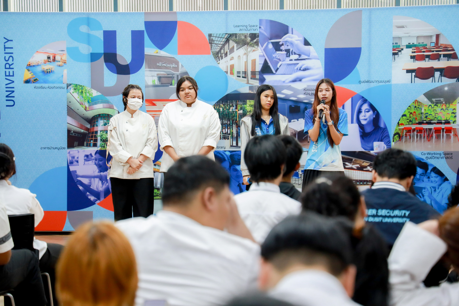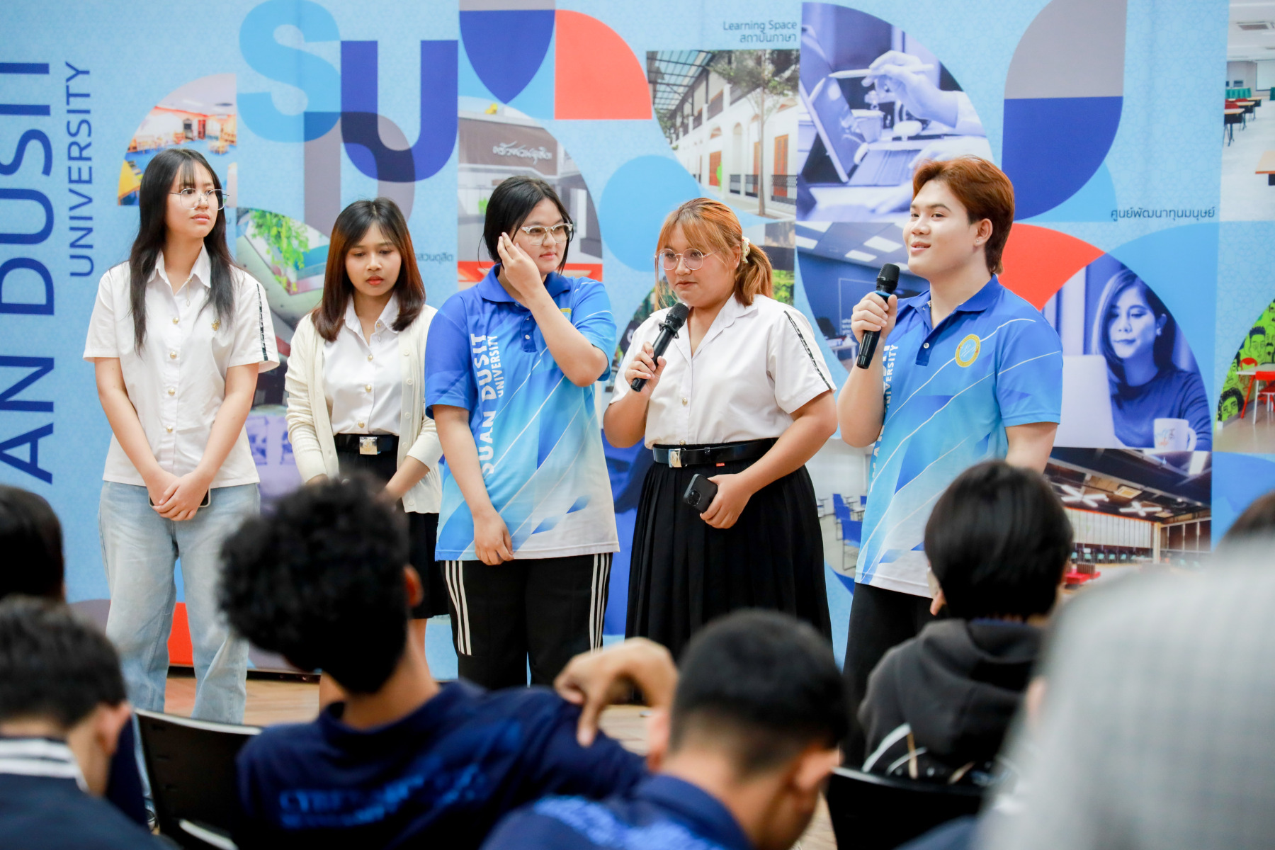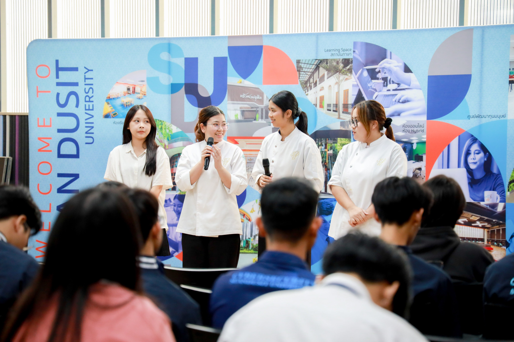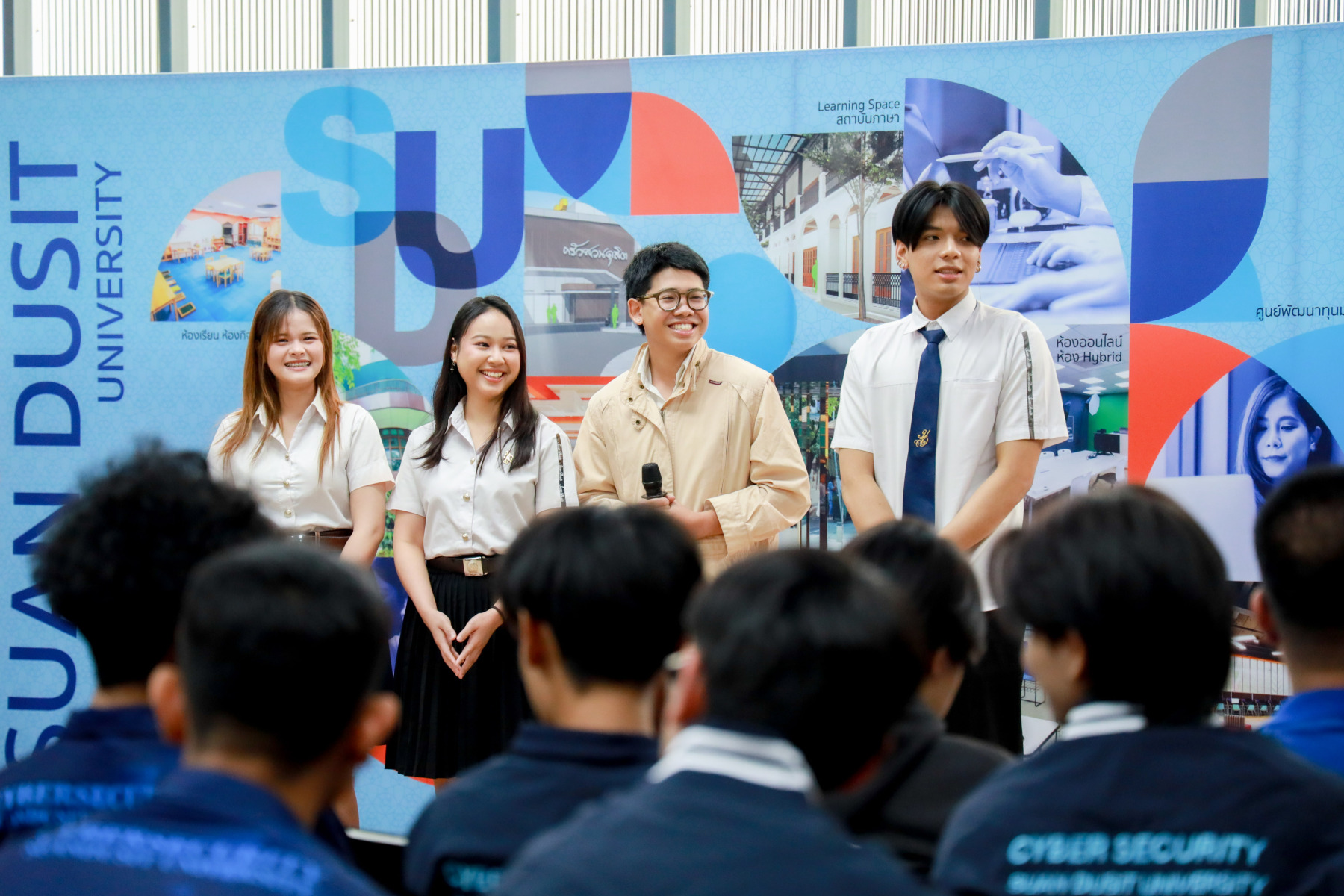 สาขาวิชาภาษาและการสื่อสาร คณะมนุษยศาสตร์และสังคมศาสตร์ จัดกิจกรรม “Show Case พลังภาษาไทย สร้างสรรค์สื่อ เพื่อสังคม” ภายใต้โครงการ “พลังภาษาไทย” โดยกิจกรรม Show case มีการนำเสนอผลงานของนักศึกษาแต่ละตอนเรียนต่าง ๆ ผ่าน 4 ประเด็นหลัก ได้แก่ สื่อสารเพื่อโลกสีเขียว (SDGs) สร้างแรงบันดาลใจ Vlog Review และคนรุ่นใหม่ใส่ใจสุขภาพ เมื่อวันที่ 5 กุมภาพันธ์ 2569 ณ Activity Space 2 มหาวิทยาลัยสวนดุสิต
