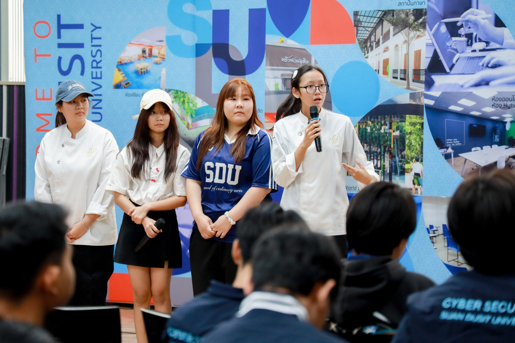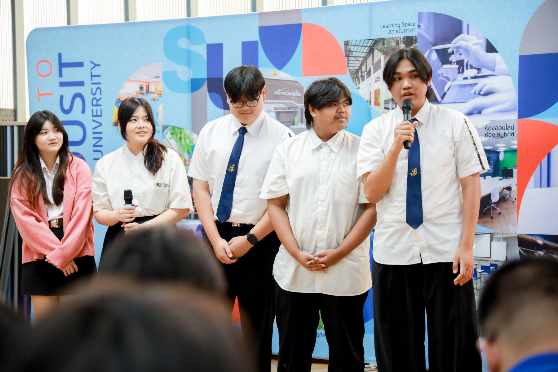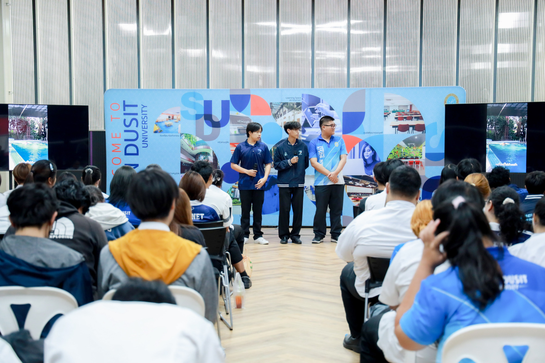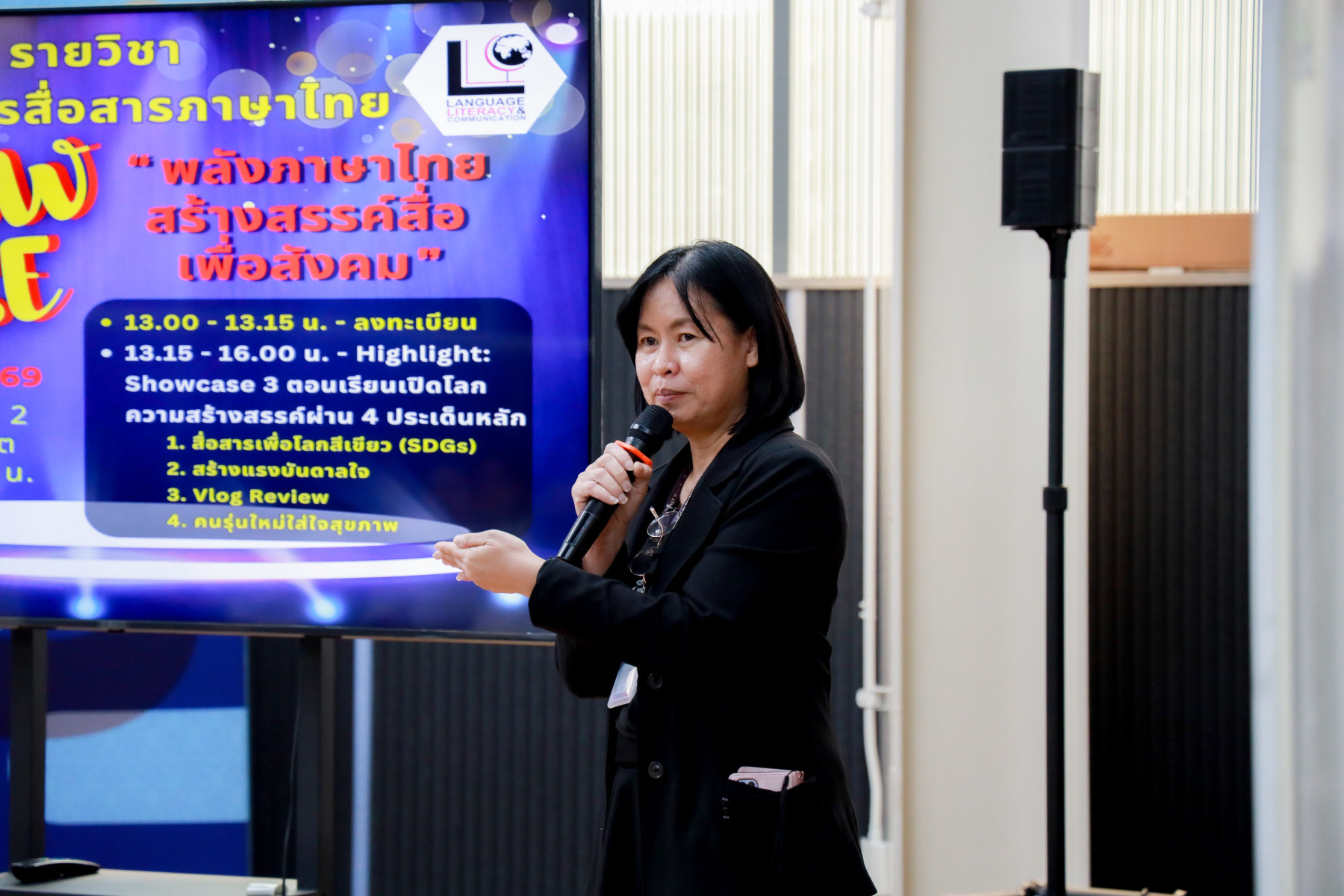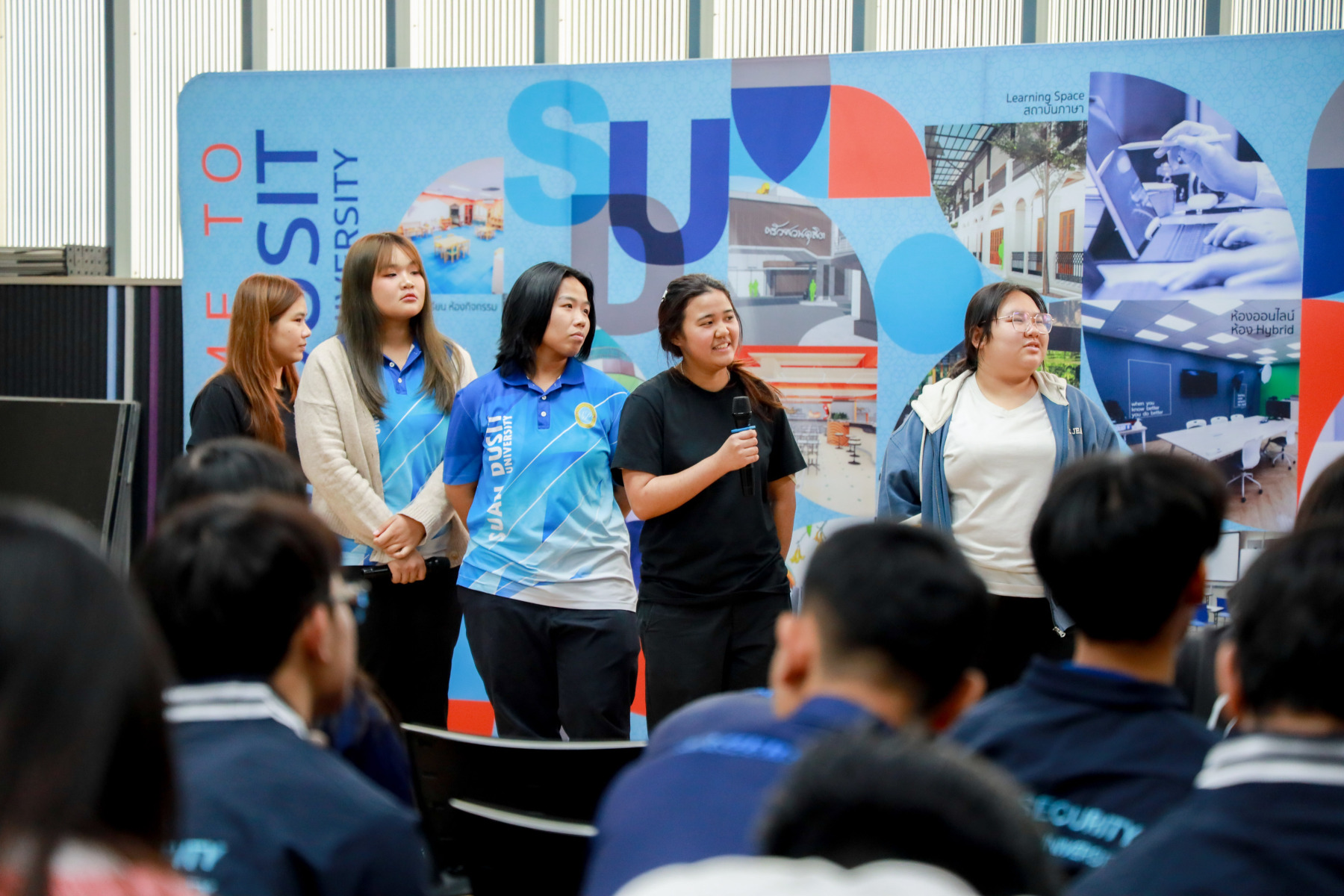 สาขาวิชาภาษาและการสื่อสาร คณะมนุษยศาสตร์และสังคมศาสตร์ จัดกิจกรรม “Show Case พลังภาษาไทย สร้างสรรค์สื่อ เพื่อสังคม” ภายใต้โครงการ “พลังภาษาไทย” โดยกิจกรรม Show case มีการนำเสนอผลงานของนักศึกษาแต่ละตอนเรียนต่าง ๆ ผ่าน 4 ประเด็นหลัก ได้แก่ สื่อสารเพื่อโลกสีเขียว (SDGs) สร้างแรงบันดาลใจ Vlog Review และคนรุ่นใหม่ใส่ใจสุขภาพ เมื่อวันที่ 5 กุมภาพันธ์ 2569 ณ Activity Space 2 มหาวิทยาลัยสวนดุสิต