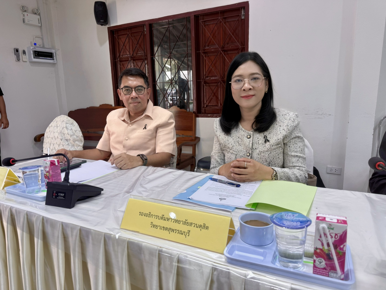 มหาวิทยาลัยสวนดุสิต วิทยาเขตสุพรรณบุรี นำโดย นางกัณณ์อลิน สุอังคะวาทิน ผู้อำนวยการสำนักงานวิทยาเขตสุพรรณบุรี เข้าร่วมประชุมคณะอนุกรรมการส่งเสริมวิสาหกิจชุมชนจังหวัดสุพรรณบุรี ครั้งที่ 1/2569 เพื่อให้การดำเนินงานส่งเสริมวิสาหกิจชุมชนจังหวัดสุพรรณบุรี ร่วมกันวางแผนพัฒนาและส่งเสริมวิสาหกิจชุมชนของจังหวัด โดยให้หัวหน้าส่วนราชการที่เข้าร่วมประชุมนำเสนอแผน/ผลการดำเนินงาน การส่งเสริมและสนับสนุนวิสาหกิจชุมชน ประจำปีงบประมาณ พ.ศ. 2569 โดยมีคุณพจนา เสมา เกษตรและสหกรณ์จังหวัดสุพรรณบุรี เป็นประธานคณะอนุกรรมการในการจัดประชุมดังกล่าว ในวันศุกร์ที่ 6 กุมภาพันธ์ 2569 เวลา 13.30 – 16.30 น. ณ ห้องประชุมสำนักงานเกษตรจังหวัดสุพรรณบุร