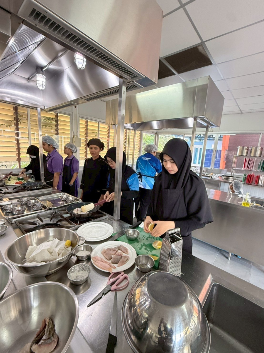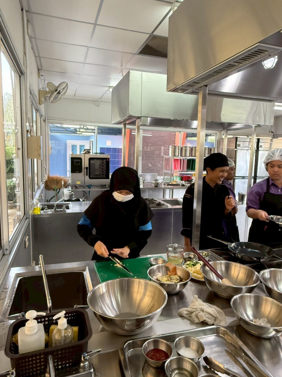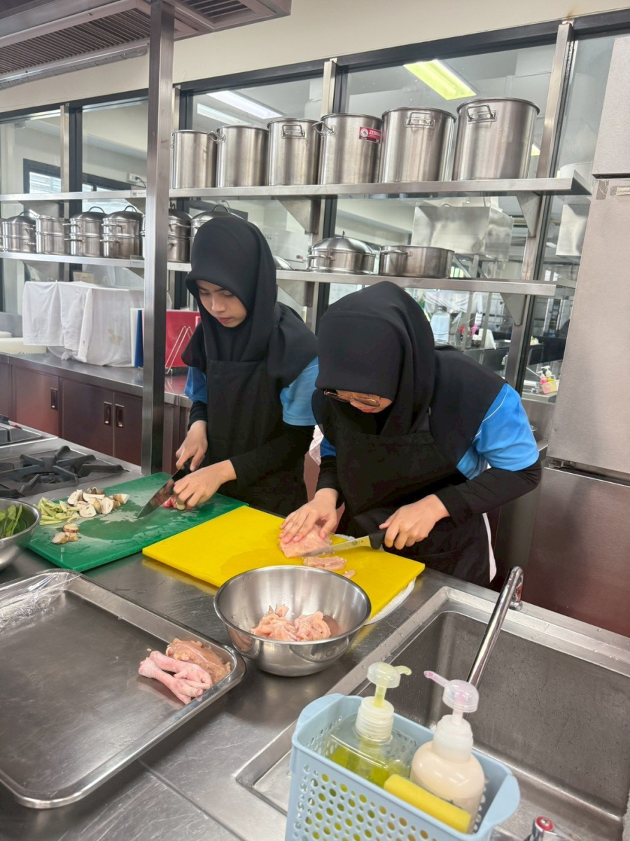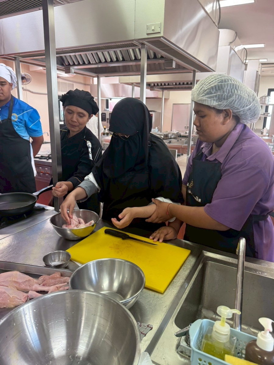 กิจกรรมที่ 2 การเสริมสร้างทักษะการประกอบการอาหารฮาลาลไทย – ยุโรป โดยการฝึกปฏิบัติและเรียนรู้ผ่านการลงมือทำจริงกับอาหารยุโรป เมนู Chicken Cordon Bleu วิทยากรโดย นายตรีชาติ ชลธาร นักการอาหาร ในวันที่ 30 มกราคม 2569 และอาหารไทย เมนู แกงเขียวหวานไก่ฮาลาล วิทยากรโดย นางสาวอรวรรณ นวลหอม นักการอาหาร ในวันที่ 5 กุมภาพันธ์ 2569 ณ ศูนย์ฝึกปฏิบัติการอาหารนานาชาติ มหาวิทยาลัยสวนดุสิต ศูนย์การศึกษา ตรัง