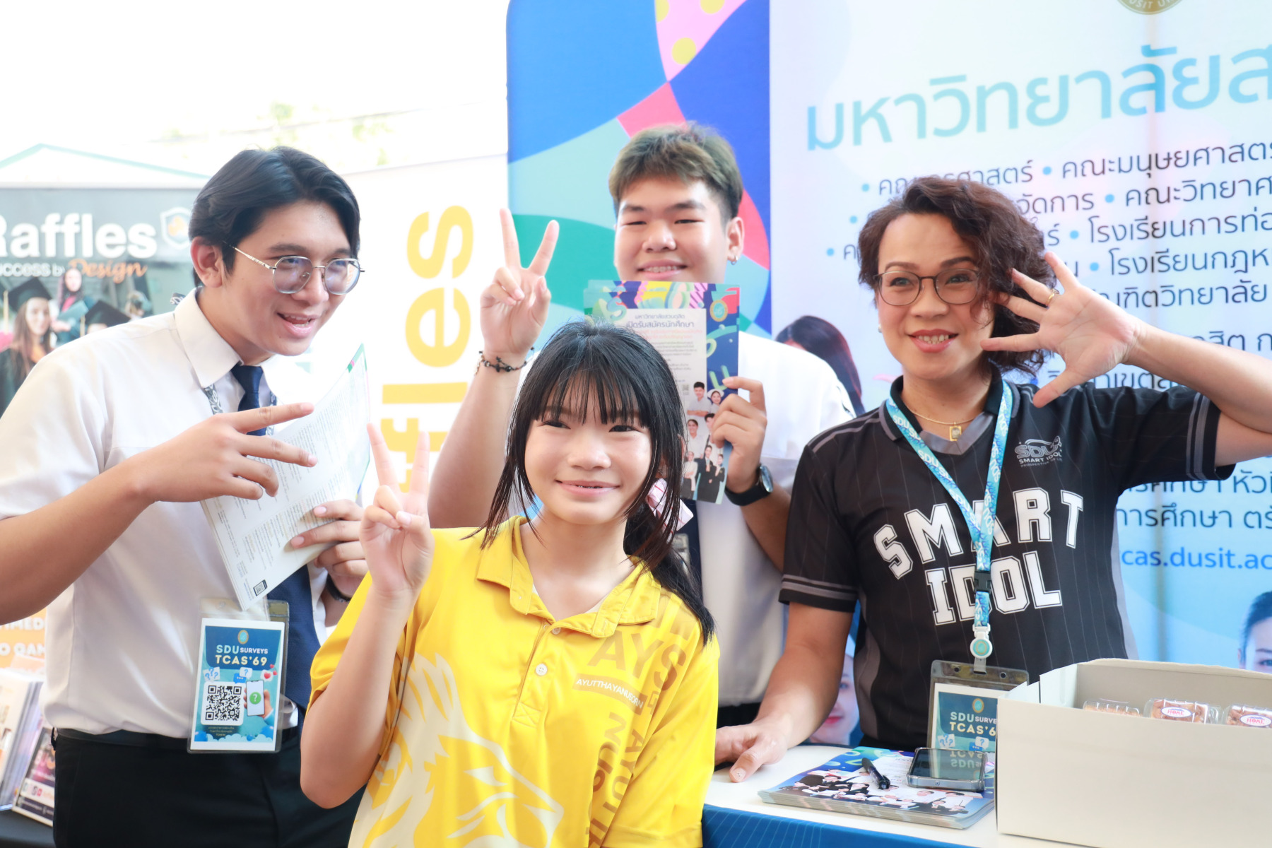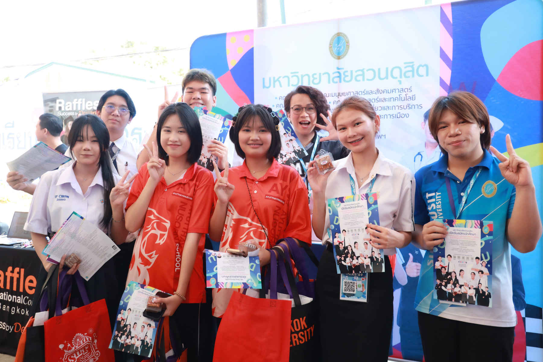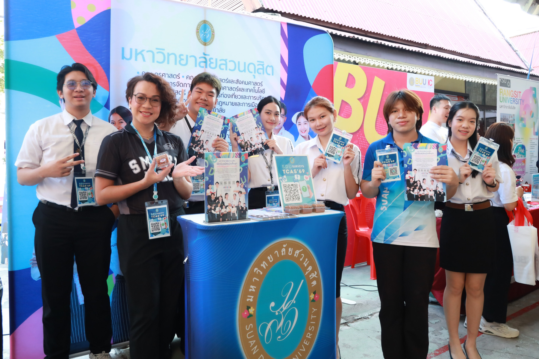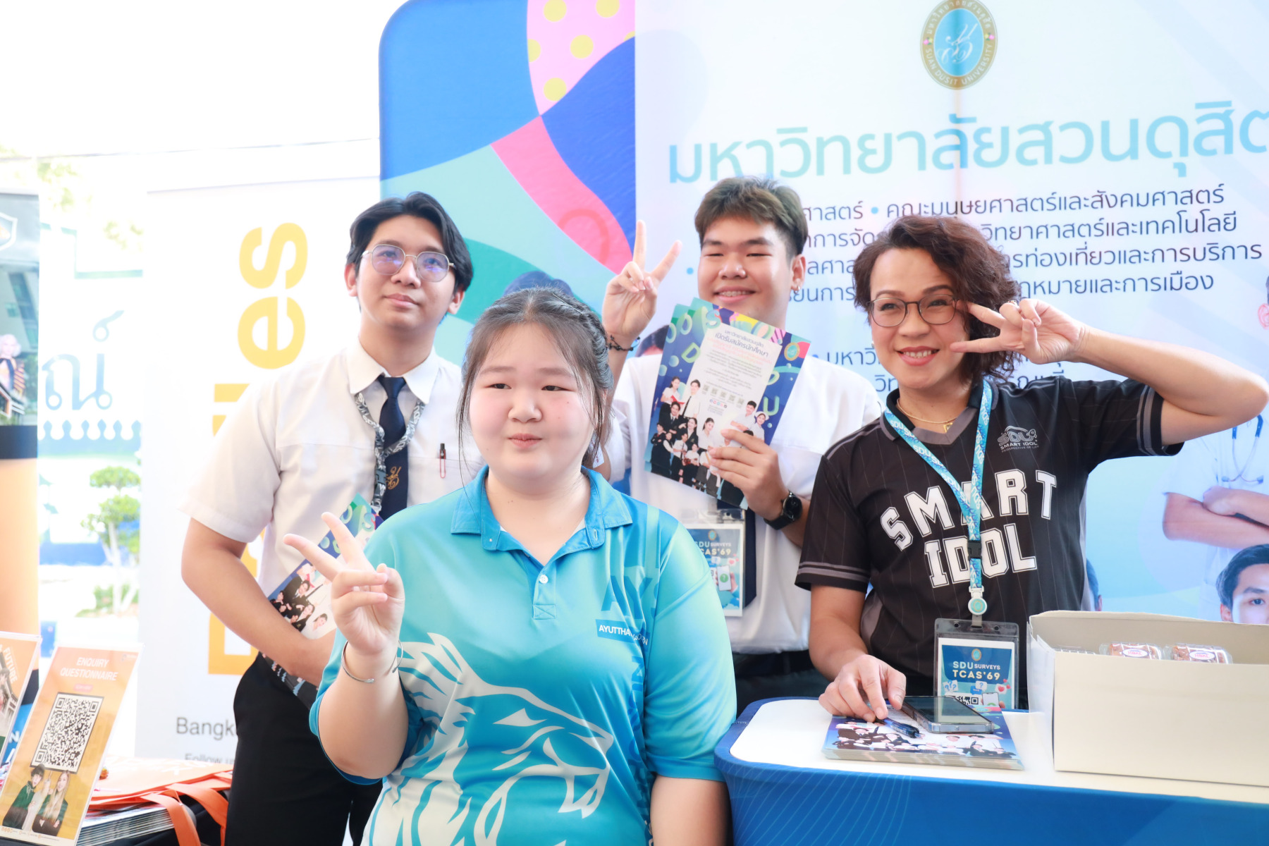 มหาวิทยาลัยสวนดุสิต นำโดย กองประชาสัมพันธ์ และนักศึกษาจาก โรงเรียนการท่องเที่ยวและการบริการ คณะวิทยาการจัดการ คณะมนุษยศาสตร์และสังคมศาสตร์ เข้าร่วมงาน “AYS Guidance Exhibition แนะให้ไกล ไปให้แนว 2025” ปีการศึกษา 2568 โดยในกิจกรรมมีการแนะนำข้อมูลของมหาวิทยาลัยสวนดุสิต ข้อมูลของหลักสูตรการเรียนการสอน พร้อมทั้งมี Toffee Cake จากสวนดุสิต Home Bakery มาให้นักเรียนได้ชิมกัน สร้างความประทับใจให้แก่นักเรียนเป็นอย่างมาก ในวันที่ 10 กุมภาพันธ์ 2569 ณ โรงเรียนอยุธยานุสรณ์