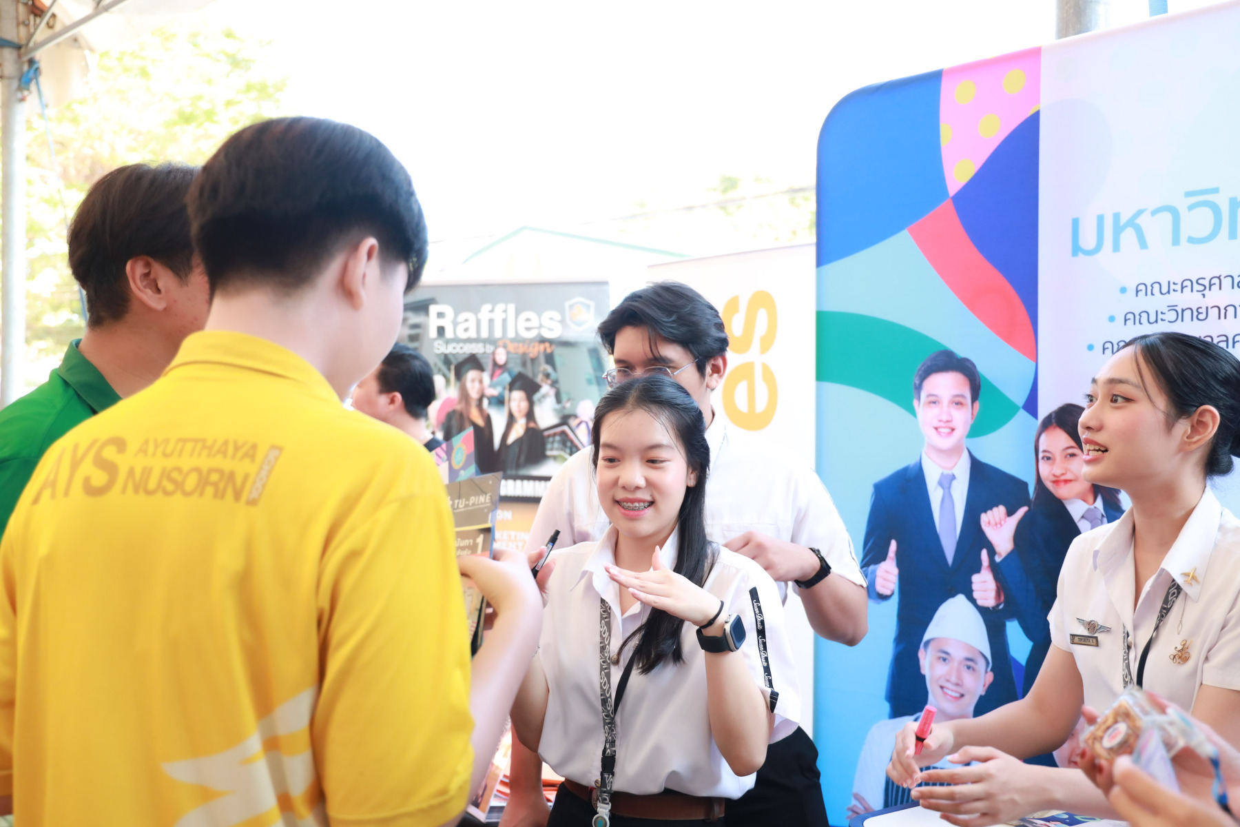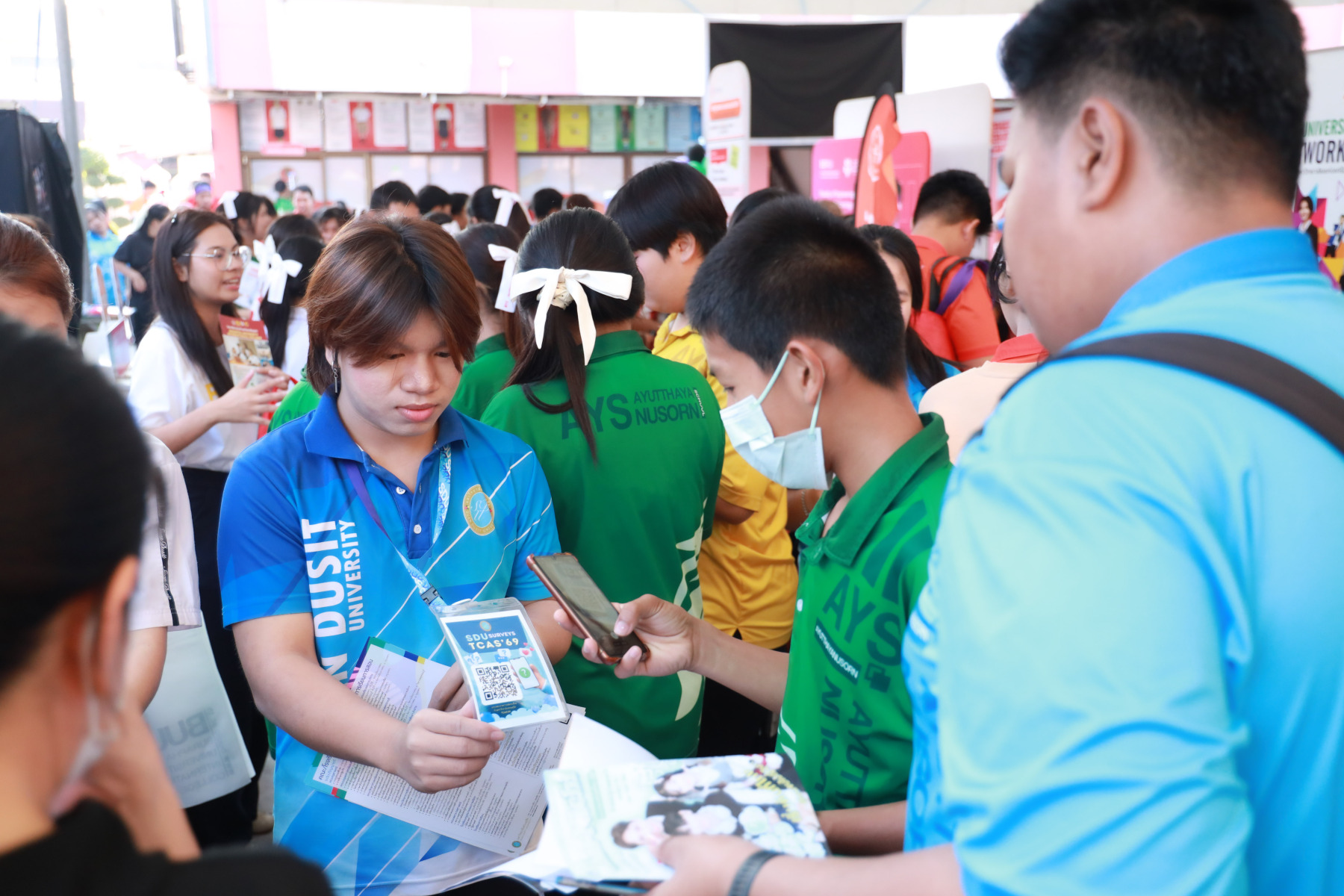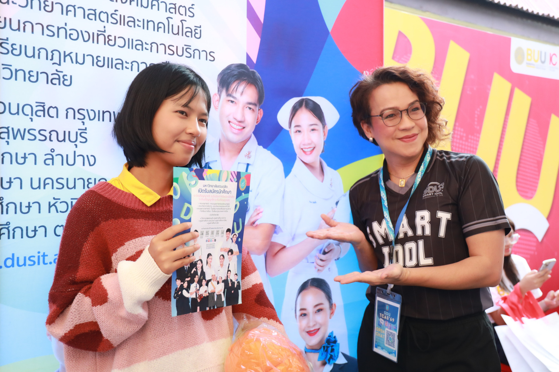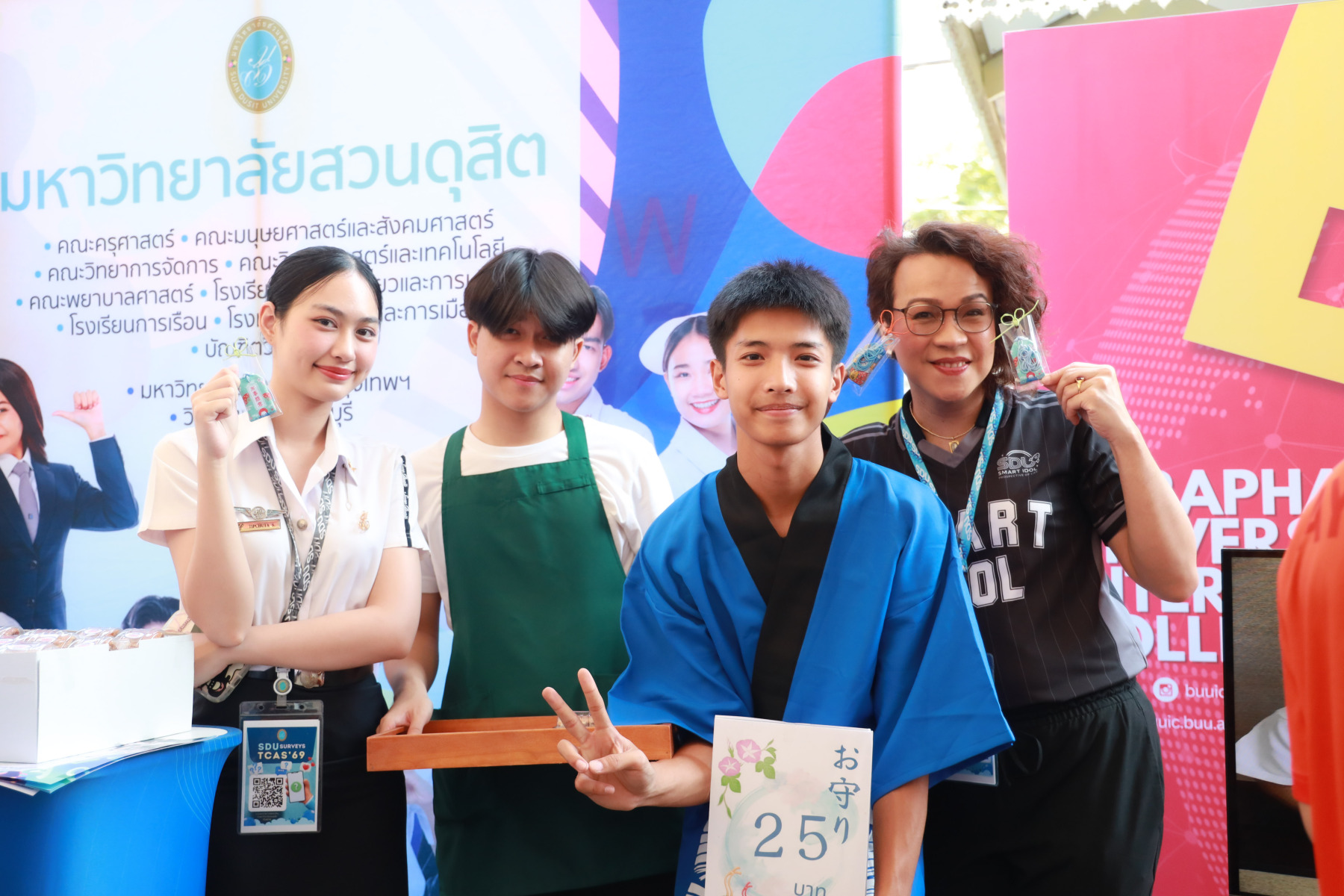 มหาวิทยาลัยสวนดุสิต นำโดย กองประชาสัมพันธ์ และนักศึกษาจาก โรงเรียนการท่องเที่ยวและการบริการ คณะวิทยาการจัดการ คณะมนุษยศาสตร์และสังคมศาสตร์ เข้าร่วมงาน “AYS Guidance Exhibition แนะให้ไกล ไปให้แนว 2025” ปีการศึกษา 2568 โดยในกิจกรรมมีการแนะนำข้อมูลของมหาวิทยาลัยสวนดุสิต ข้อมูลของหลักสูตรการเรียนการสอน พร้อมทั้งมี Toffee Cake จากสวนดุสิต Home Bakery มาให้นักเรียนได้ชิมกัน สร้างความประทับใจให้แก่นักเรียนเป็นอย่างมาก ในวันที่ 10 กุมภาพันธ์ 2569 ณ โรงเรียนอยุธยานุสรณ์