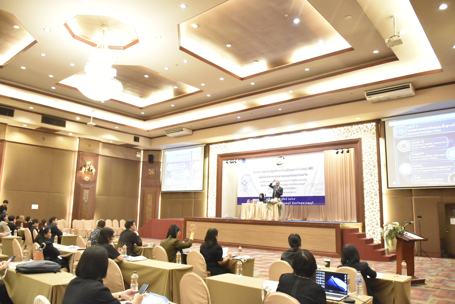 มหาวิทยาลัยสวนดุสิต วิทยาเขตสุพรรณบุรี โดย ดร.วรานี เวสสุนทรเทพ รองอธิการบดีฝ่ายวิทยาเขตสุพรรณบุรี มอบให้ นางกัณณ์อลิน สุอังคะวาทิน ผู้อำนวยการสำนักงานวิทยาเขตสุพรรณบุรี เป็นผู้แทนเข้าร่วมโครงการเสริมสร้างสมรรถนะการปฏิบัติงานภาครัฐเพื่อขับเคลื่อนยุทธศาสตร์การพัฒนาจังหวัดสุพรรณบุรี ด้วยนวัตกรรมและเทคโนโลยีดิจิทัล ประจำปีงบประมาณ พ.ศ. 2569 กิจกรรมที่ 1 การประชุมเชิงปฏิบัติการด้านปัญญาประดิษฐ์ (AI) เพื่อจัดทำและทบทวนแผนพัฒนาจังหวัด โดยได้รับเกียรติจาก นายณัฐพงษ์ สงวนจิตร ผู้ว่าราชการจังหวัดสุพรรณบุรี เป็นประธานกล่าวเปิดการประชุม ฯ และมอบนโยบาย โดยโครงการมีกิจกรรมการอภิปราย “ทิศทางพัฒนาสุพรรณบุรี ปี พ.ศ. 2569 กับการเปลี่ยนผ่านสู่ดิจิทัล (Digital Transformation) และศาสตร์และทักษะการใช้ AI ในการขับเคลื่อนภารกิจภาครัฐและงานสุขภาพ (Health & Public Services) โดย ดร.วัชรวิชญ์ กีรติดุสิตโรจน์ และทีมวิทยากร นอกจากนี้ยังมีกิจกรรมการอภิปรายในหัวข้อต่าง ๆ ที่เกี่ยวข้องกับทักษะการใช้ AI ในการพัฒนาแผนพัฒนาจังหวัดฯ ตามกำหนดการ ซึ่งโครงการจัดขึ้นในวันศุกร์ ที่ 13 กุมภาพันธ์ 2569 เวลา 08.00-17.00 น. โรงแรมเลิศธานี อำเภอเมืองสุพรรณบุรี จังหวัดสุพรรณบุรี
