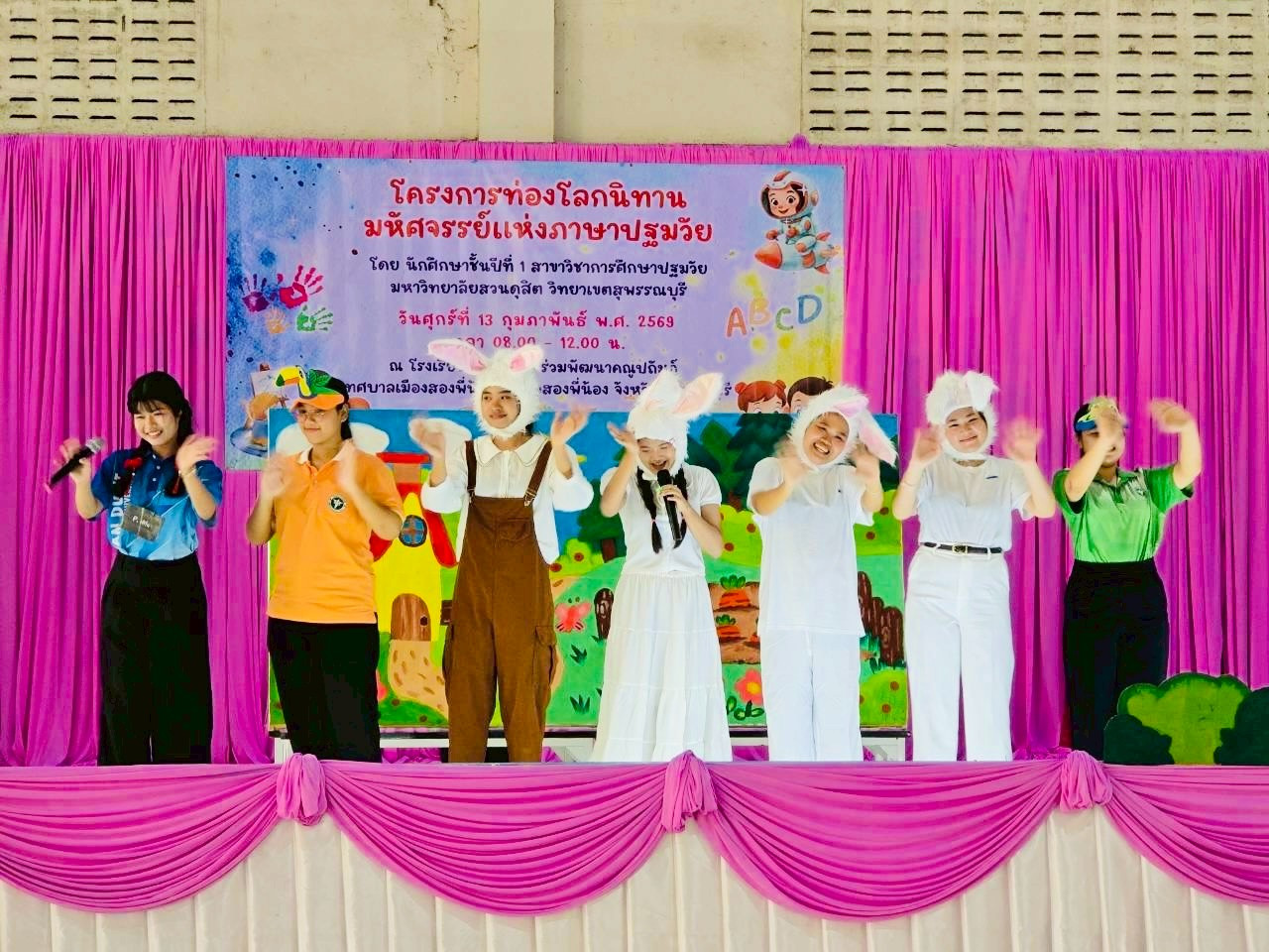หลักสูตรศึกษาศาสตรบัณฑิต สาขาวิชาการศึกษาปฐมวัย คณะครุศาสตร์ มหาวิทยาลัยสวนดุสิต วิทยาเขตสุพรรณบุรี นำโดย อาจารย์นนทพร ชอบตะคุ ได้จัดโครงการ “ท่องโลกนิทานมหัศจรรย์แห่งภาษาปฐมวัย” โดยโครงการดังกล่าวมีวัตถุประสงค์เพื่อส่งเสริมพัฒนาการด้านภาษา การสื่อสาร และจินตนาการของเด็กปฐมวัย ผ่านกิจกรรมการเล่านิทานโดยนักศึกษาสาขาวิชาการศึกษาปฐมวัย วิทยาเขตสุพรรณบุรี ซึ่งได้นำสื่อสร้างสรรค์และกิจกรรมการมีส่วนร่วมมาประยุกต์ใช้ เพื่อกระตุ้นให้เด็กได้คิด วิเคราะห์ และแสดงออกอย่างเหมาะสมตามวัย ซึ่งการจัดโครงการในครั้งนี้สะท้อนถึงความมุ่งมั่นในการพัฒนาศักยภาพเด็กปฐมวัยอย่างรอบด้าน อีกทั้งยังเป็นการสร้างความร่วมมืออันดีระหว่างสถานศึกษากับหน่วยงานภายนอก เพื่อร่วมกันยกระดับคุณภาพการศึกษาในท้องถิ่นอย่างยั่งยืน โดยกิจกรรมจัดขึ้นในวันศุกร์ที่ 13 กุมภาพันธ์ 2569 เวลา 08.00–12.00 น. ณ โรงเรียนเทศบาล 6 ร่วมพัฒนาคณูปถัมภ์ อำเภอสองพี่น้อง จังหวัดสุพรรณบุรี