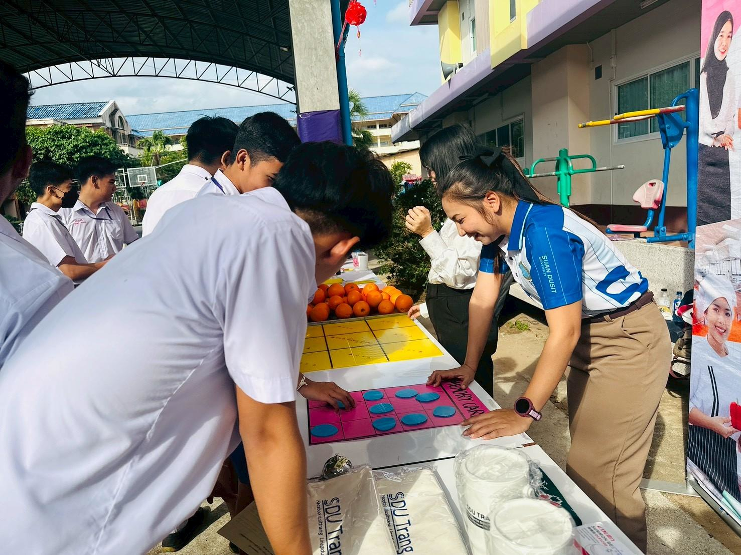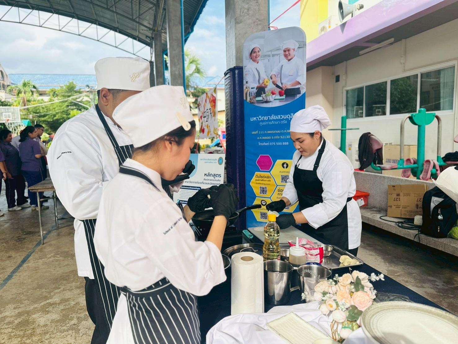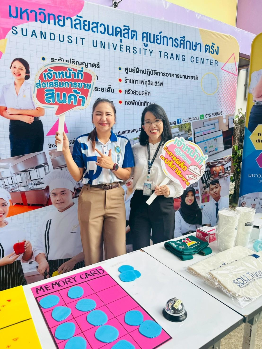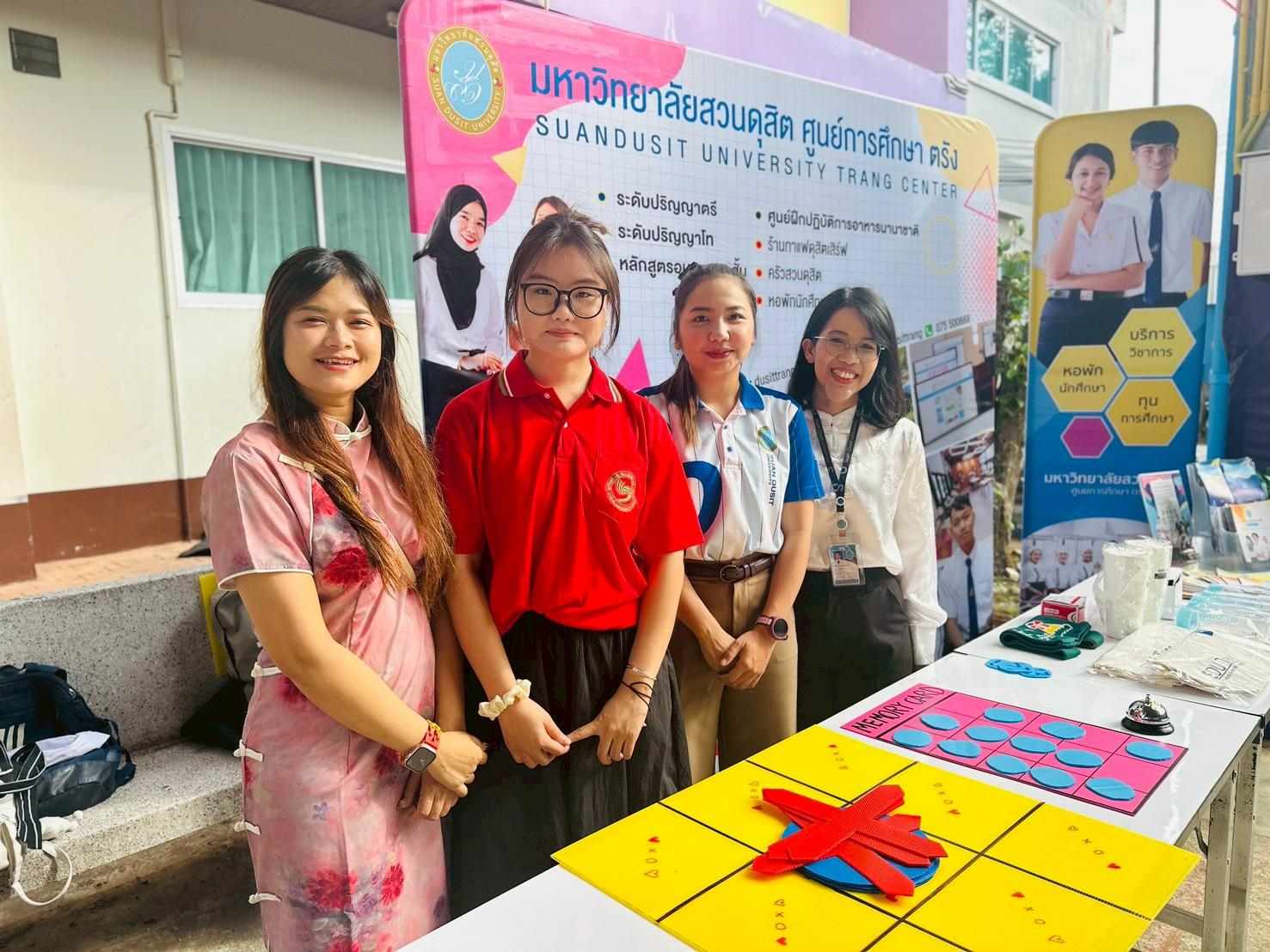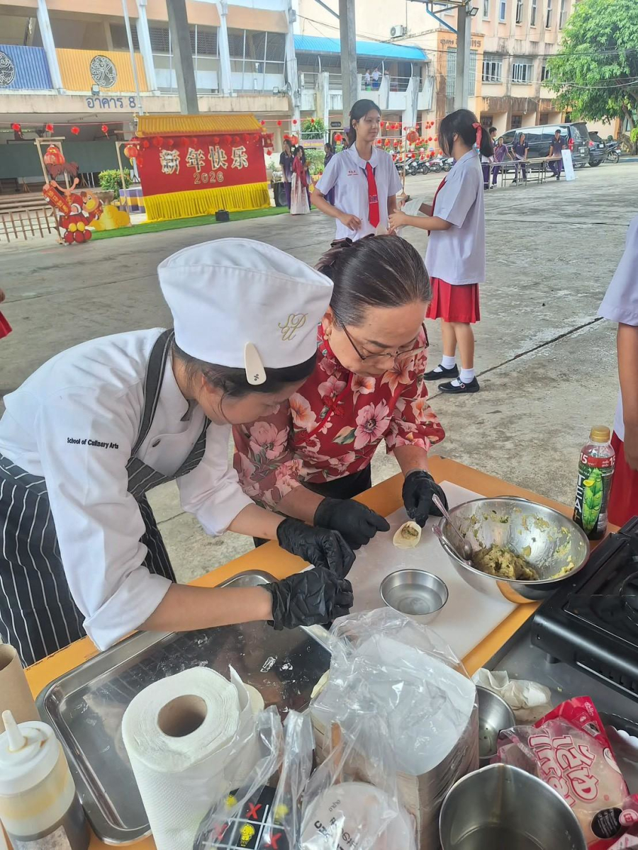 เมื่อวันที่ 16 กุมภาพันธ์ 2569 คณะบุคลากรและนักศึกษาสาขาวิชาเทคโนโลยีการประกอบอาหารและการบริการ มหาวิทยาลัยสวนดุสิต ศูนย์การศึกษา ตรัง ได้รับเชิญจากโรงเรียนตรังคริสเตียนศึกษา หมวดภาษาต่างประเทศ (ภาษาจีน) ร่วมจัดกิจกรรมเทศกาลตรุษจีน ประจำปี 2569 ภายใต้ชื่อ “เปิดโลกแห่งการเรียนรู้ สู่เส้นทางสายไหม จีน-ไทยสัมพันธ์” โดยมีการจัดกิจกรรม ฐานที่ 4 อาหารจีน (การทำเกี๊ยวจีน) ร่วมถ่ายทอดความรู้ด้านอาหารจีน การประดิษฐ์ซองอั่งเปา รวมถึง อาจารย์ Jiang Peng Qiao จากสถาบันขงจื่อ มหาวิทยาลัยสวนดุสิต สุพรรณบุรี ที่ร่วมกิจกรรมในครั้งนี้  และการประชาสัมพันธ์การรับสมัครนักศึกษาใหม่ระดับปริญญาตรี ประชาสัมพันธ์ผู้สนใจเข้าศึกษาระบบ Non-Degree และ Pre-Degree ของมหาวิทยาลัยสวนดุสิต ศูนย์การศึกษา ตรัง  โดยมีนักเรียนตั้งแต่ระดับ ประถมศึกษาปีที่ 1 ถึงมัธยมศึกษาปีที่ 6 ร่วมกิจกรรมได้สัมผัสและเข้าใจภาษาและวัฒนธรรมจีนอย่างลึกซึ้งยิ่งขึ้น