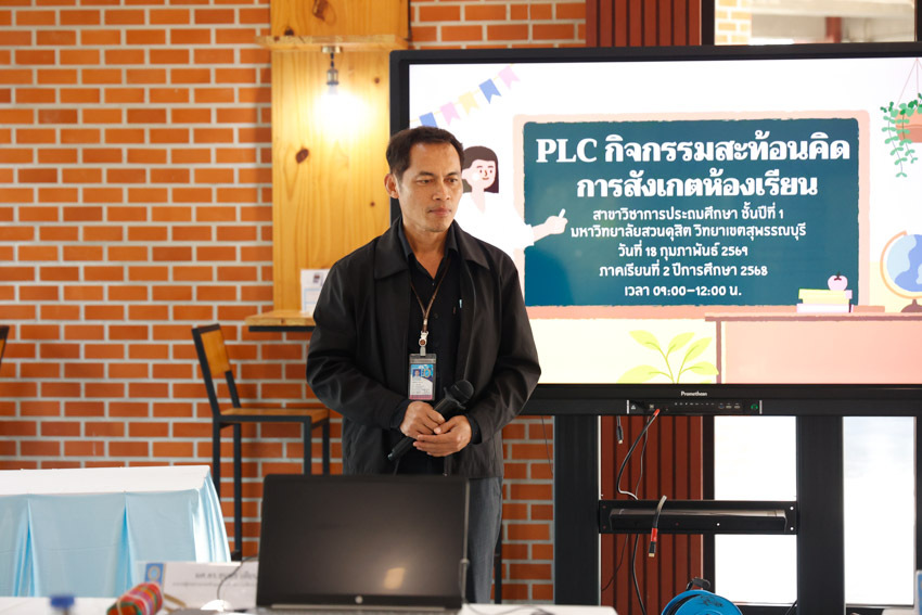 หลักสูตรศึกษาศาสตรบัณฑิต สาขาวิชาการประถมศึกษา มหาวิทยาลัยสวนดุสิต วิทยาเขตสุพรรณบุรี ได้จัดกิจกรรม PLC กิจกรรมสะท้อนคิดการสังเกตในห้องเรียน ภาคเรียนที่ 2 ปีการศึกษา 2568 ของนักศึกษาชั้นปีที่ 1 โดยได้รับเกียรติจาก ผู้ช่วยศาสตราจารย์ ดร.สุนทร เทียนงาม ประธานหลักสูตรฯ เป็นประธานกล่าวเปิดงาน โดยมีคณาจารย์ และนักศึกษาชั้นปีที่ 1 ของหลักสูตรฯ เข้าร่วมกิจกรรม ในวันพุธที่ 18 กุมภาพันธ์ 2569 เวลา 09.00 – 12.00 น. ณ ห้องประชุม SDU Library@Suphanburi ชั้น 1 โซน 3 มหาวิทยาลัยสวนดุสิต วิทยาเขตสุพรรณบุรี