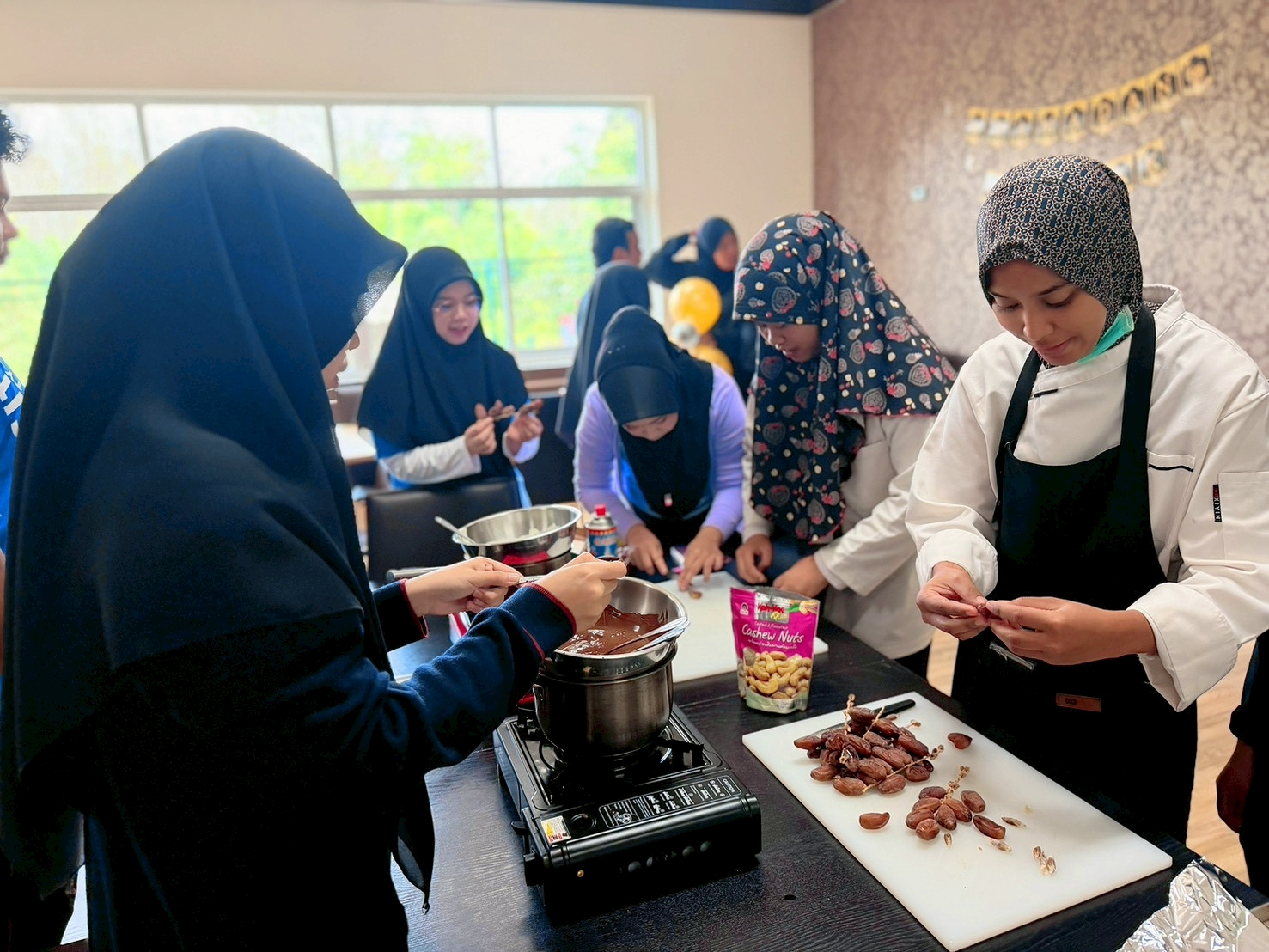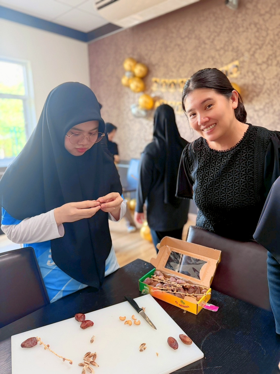 ฝ่ายวิชาการและงานทะเบียน ร่วมกับ กลุ่มวิชาการจัดการธุรกิจอาหารฮาลาล จัดกิจกรรมเวิร์กชอปสุดสร้างสรรค์ภายใต้ชื่อ “Ramadan: Dates x Chocolate” เพื่อเชิญชวนนักศึกษาและบุคลากรมุสลิมร่วมเตรียมความพร้อมเข้าสู่เดือนรอมฎอน ประจำปีฮิจเราะห์ศักราช 1447 ณ ห้องรับประทานอาหารบุคลากร ครัวสวนดุสิตตรัง เมื่อวันที่ 19 กุมภาพันธ์ 2569 ที่ผ่านมาสร้างสรรค์พื้นที่แห่งการเรียนรู้ (Learning Space) ไฮไลท์สำคัญของกิจกรรมนี้คือการใช้พื้นที่ภายในมหาวิทยาลัยให้เกิดประโยชน์สูงสุดในฐานะ “พื้นที่แห่งการเรียนรู้” (Learning Space) ที่เปิดกว้างให้ทั้งนักศึกษาและบุคลากรได้มาสัมผัสประสบการณ์จริงนอกเหนือจากตำราเรียน โดยเปลี่ยนมุมพักผ่อนและพื้นที่รับประทานอาหารให้กลายเป็นพื้นที่ปฏิบัติการสร้างสรรค์เมนูอินทผลัมเคลือบช็อกโกแลต (Chocolate-covered Dates) ซึ่งไม่เพียงแต่ได้ทักษะการปรุงอาหาร แต่ยังเป็นพื้นที่แลกเปลี่ยนวัฒนธรรม การแบ่งปัน และการเตรียมตัวเข้าสู่เดือนถือศีลอดอย่างมีคุณภาพ
