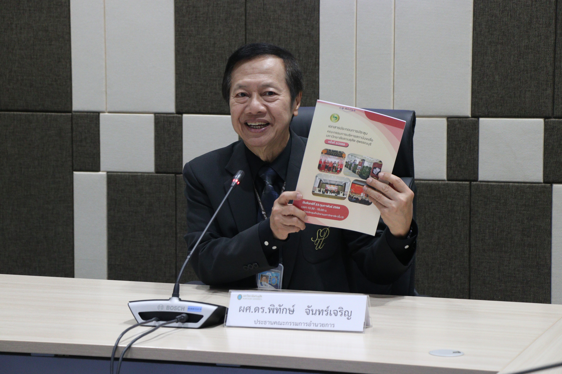 ผศ.ดร.พิทักษ์ จันทร์เจริญ อธิการบดีมหาวิทยาลัยสวนดุสิต เป็นประธานประชุมคณะกรรมการบริหารสถาบันขงจื่อ มหาวิทยาลัยสวนดุสิต สุพรรณบุรี ครั้งที่ 2/2569 โดยมีวาระเพื่อพิจารณา อาทิ (ร่าง) กำหนดการประชุมคณะกรรมการอำนวยการสถาบันขงจื่อมหาวิทยาลัยสวนดุสิต สุพรรณบุรี ประจำปี 2569 ระหว่างมหาวิทยาลัยสวนดุสิต และมหาวิทยาลัยกวางสี ณ สาธารณรัฐประชาชนจีน (ร่าง) คู่มืออาจารย์อาสาสมัครชาวจีน ประจำสถาบันขงจื่นมหาวิทยาลัยสวนดุสิต สุพรรณบุรี ณ ห้องประชุมชั้น 5 อาคารสำนักงานมหาวิทยาลัย วันที่ 23 กุมภาพันธ์ 2569