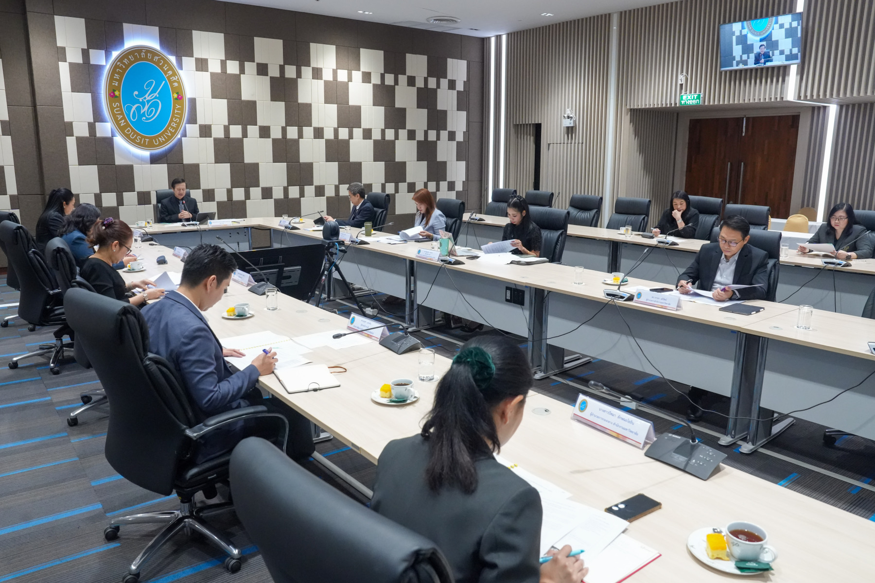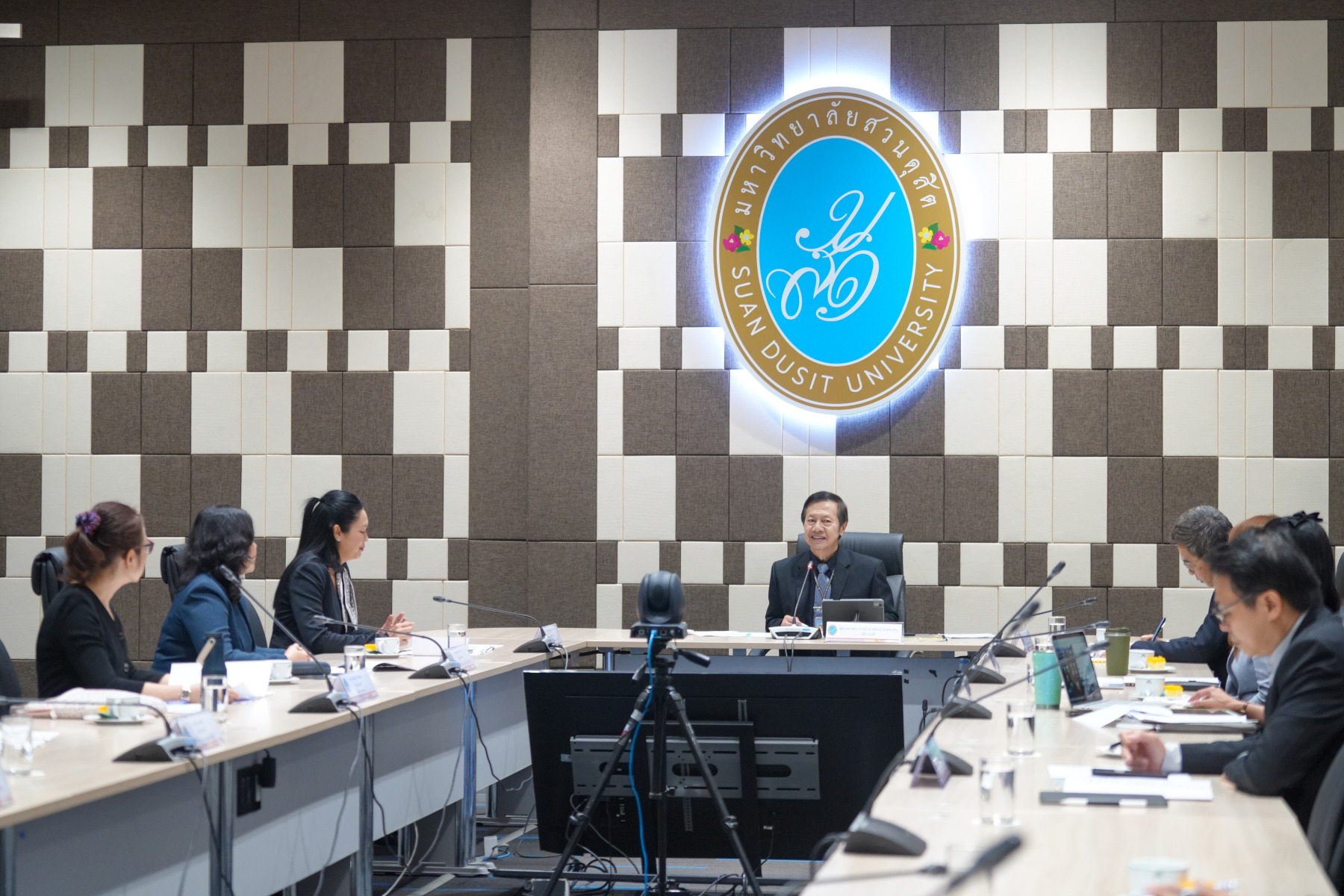 สำนักงานมหาวิทยาลัยสวนดุสิต จัดประชุมผู้ช่วยอธิการบดี ครั้งที่ 1/2569 โดยมี ผศ.ดร.พิทักษ์ จันทร์เจริญ อธิการบดีมหาวิทยาลัยสวนดุสิต เป็นประธานการประชุม โดยมีเรื่องนำเสนอเพื่อพิจารณา เรื่องหนังสือ The Six Disciplines of Strategic Thinking หลัก ๖ ประการ 3-16 ของการคิดเชิงกลยุทธ์ และเรื่องการประชุมเพื่อนำผลการดำเนินงานลงสู่การปฏิบัติ เมื่อวันที่ 24 กุมภาพันธ์ 2569 ณ ห้องประชุม ชั้น 5 อาคารสำนักงานมหาวิทยาลัย มหาวิทยาลัยสวนดุสิต