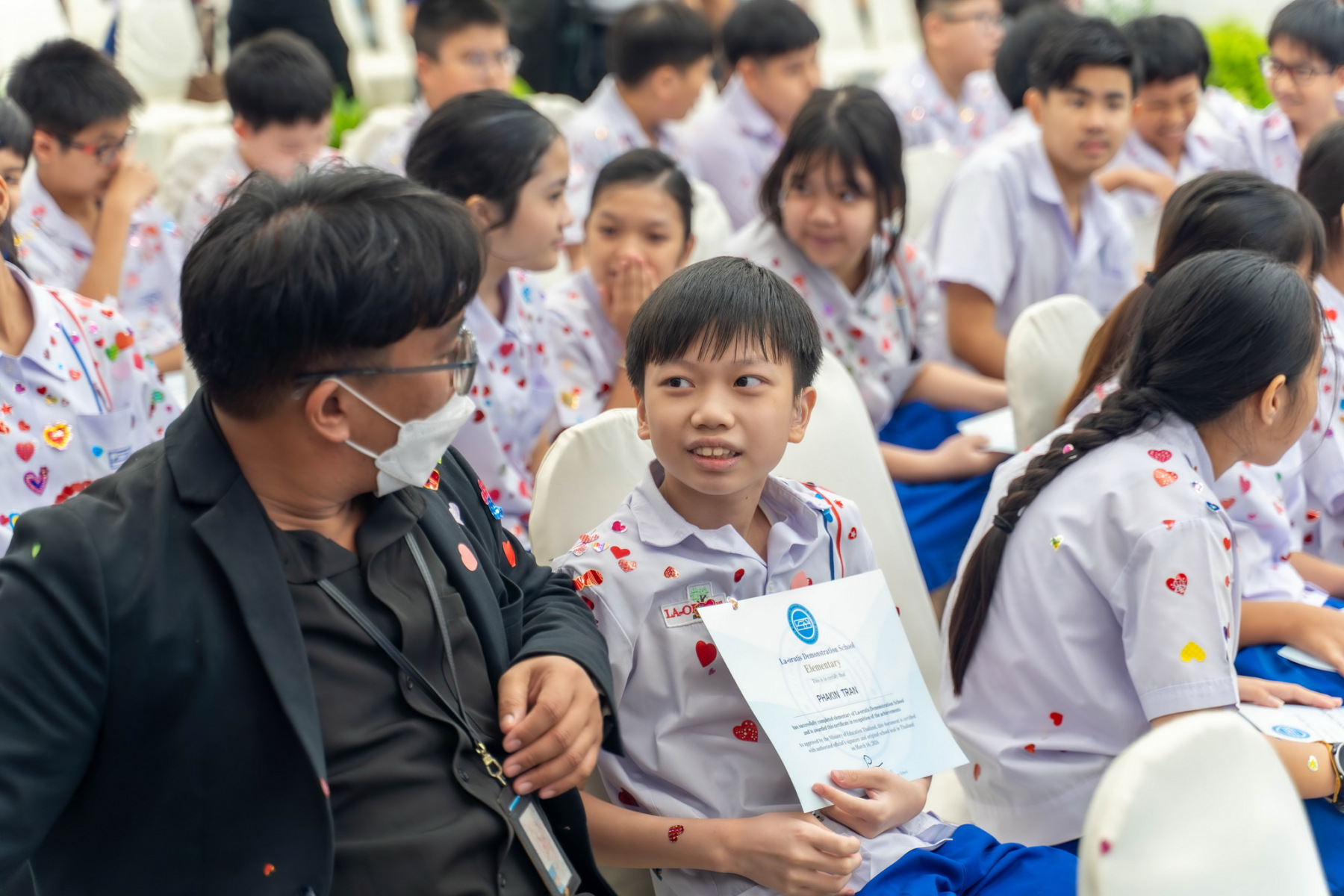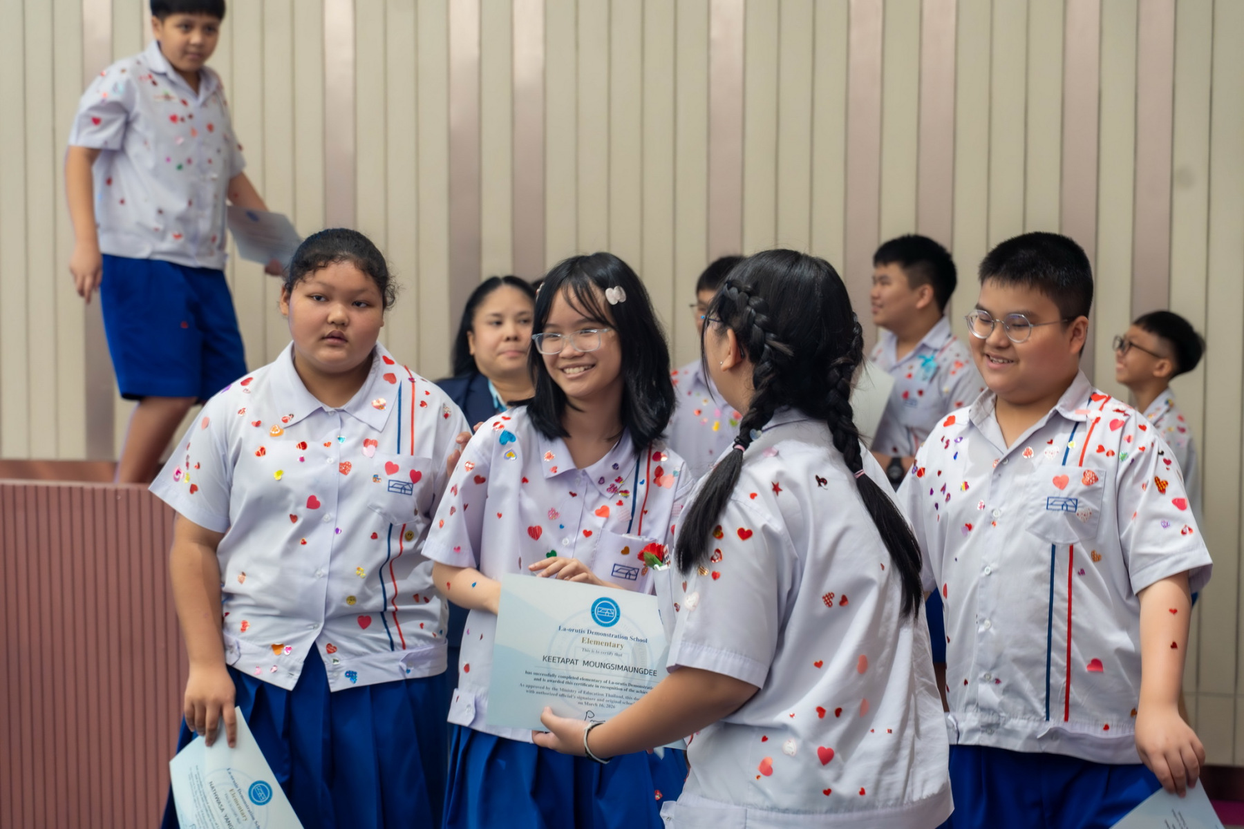 โรงเรียนสาธิตละอออุทิศ มหาวิทยาลัยสวนดุสิต จัดกิจกรรม “ปัจฉิมนิเทศนักเรียนระดับชั้นอนุบาลปีที่ 3 และระดับชั้นประถมศึกษาปีที่ 6 ประจำปีการศึกษา 2568” ในวันอังคารที่ 24 กุมภาพันธ์ 2569 ณ หอประชุมรักตะกนิษฐ มหาวิทยาลัยสวนดุสิต โดยช่วงเช้านักเรียนและผู้ปกครองร่วมพิธีแสดงความยินดี พร้อมกิจกรรมสักการะรูปปั้นคุณยายละออ และสักการะหลวงปู่ชัยมงคล เพื่อความเป็นสิริมงคล ณ บริเวณสนามเขียวและศาลหลวงปู่ชัยมงคล จากนั้นเข้าสู่งาน “ปัจฉิมนิเทศนักเรียนระดับชั้นอนุบาลปีที่ 3 และระดับชั้นประถมศึกษาปีที่ 6 ประจำปีการศึกษา 2568” ได้รับเกียรติจาก นางสาวธัญฐรัตน์ ผงทอง ผู้จัดการโรงเรียนสาธิตละอออุทิศ เป็นประธานกล่าวเปิดงานและให้โอวาทแก่นักเรียนระดับชั้นอนุบาลปีที่ 3 และระดับชั้นประถมศึกษาปีที่ 6 ที่สำเร็จการศึกษา ต่อด้วยการรับชมวิดีทัศน์ประมวลภาพความทรงจำ ผู้แทนคณะครูและTeacher กล่าวอวยพร ผู้แทนนักเรียนกล่าวแสดงความรู้สึก และปิดท้ายเป็นพิธีมอบเข็มและใบประกาศนียบัตรให้แก่ผู้สำเร็จการศึกษา