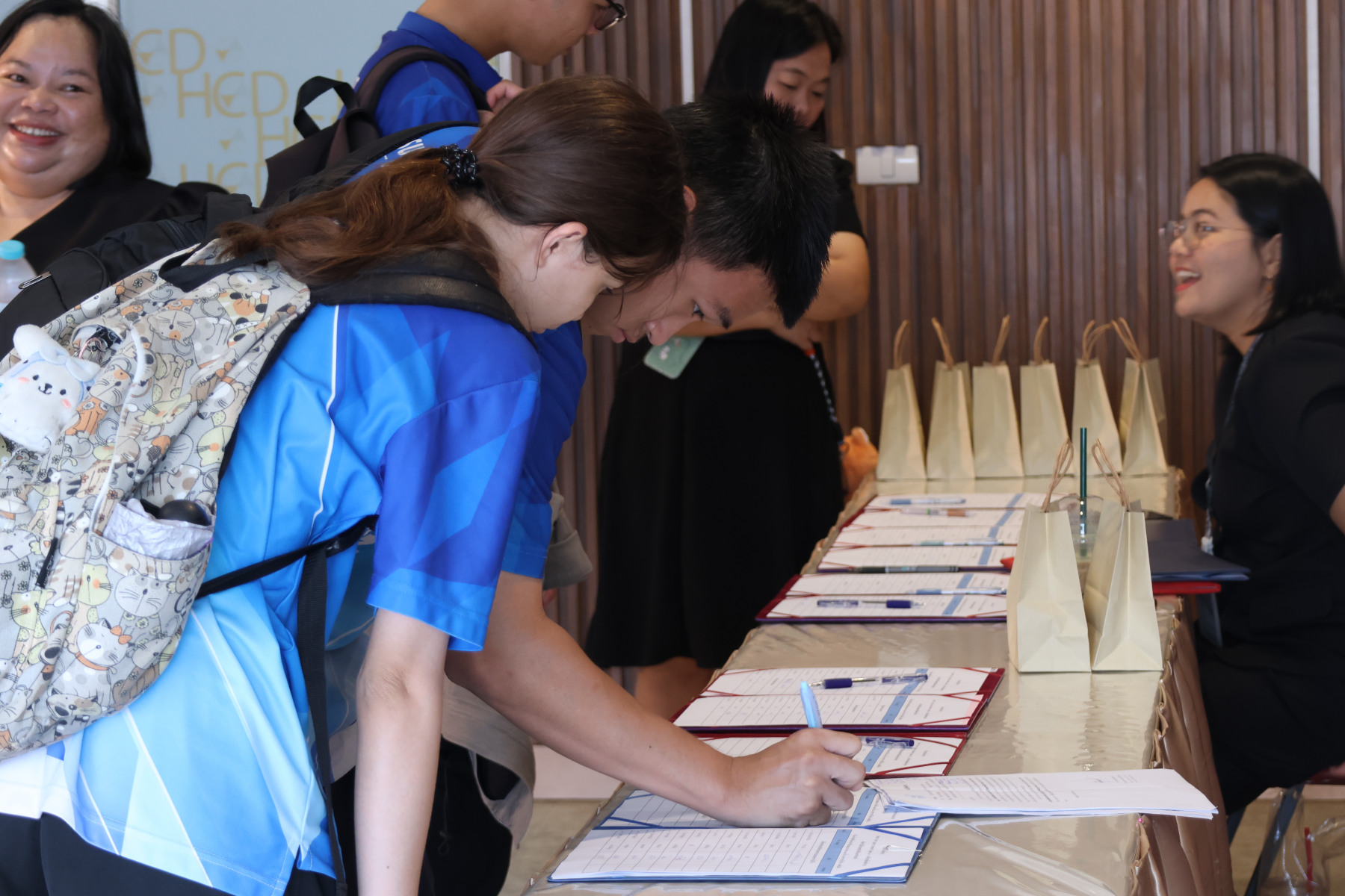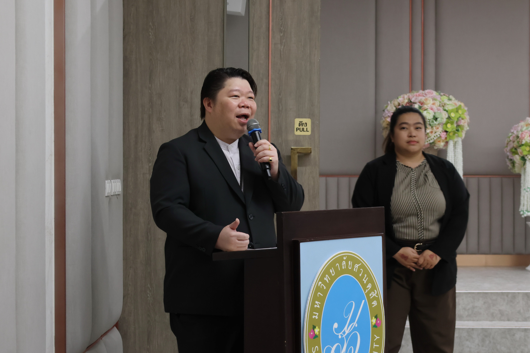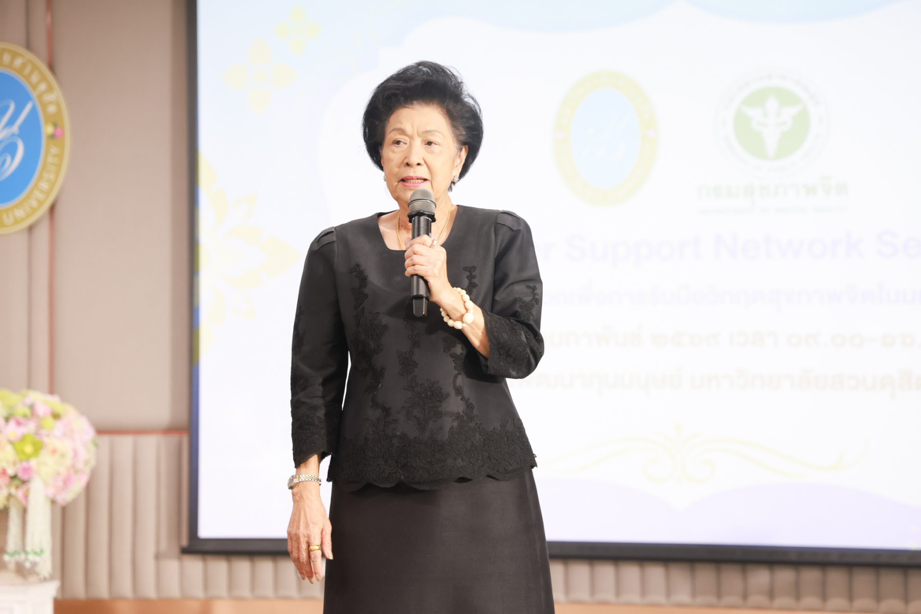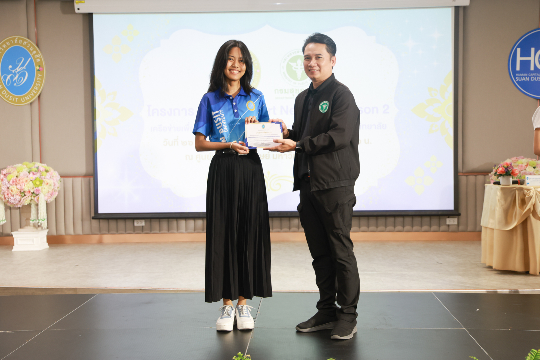 โดยมี ผู้ช่วยศาสตราจารย์พัศรินท์ ก่อเลิศวรพงศ์ กรรมการบริหารหลักสูตรจิตวิทยาอุตสาหกรรมและองค์การ คณะมนุษยศาสตร์และสังคมศาสตร์ มหาวิทยาลัยสวนดุสิต เป็นวิทยากรหลัก และมีทีมผู้ช่วยวิทยากรจากนักศึกษาหลักสูตรจิตวิทยาอุตสาหกรรมและองค์การ รวมทั้งนักศึกษาชมรมเพื่อนพลังบวก (Peer Support Club) ร่วมสนับสนุนการฝึกปฏิบัติ ในช่วงบ่าย เป็นการซ้อมแผนเผชิญเหตุสุขภาพจิตของมหาวิทยาลัยโดยคณะกรรมการบัญชาการเหตุการณ์ด้านสุขภาพจิต (SDU-ICS) พร้อมรับข้อเสนอแนะจากตัวแทนของศูนย์สุขภาพจิตที่ 13 และพิธีปิดการอบรมและมอบเกียรติบัตรแก่ผู้เข้าร่วม ได้รับเกียรติจาก รองศาสตราจารย์พัชรี สวนแก้ว รองอธิการบดีฝ่ายกิจการนักศึกษา มหาวิทยาลัยสวนดุสิต เป็นประธานในพิธี