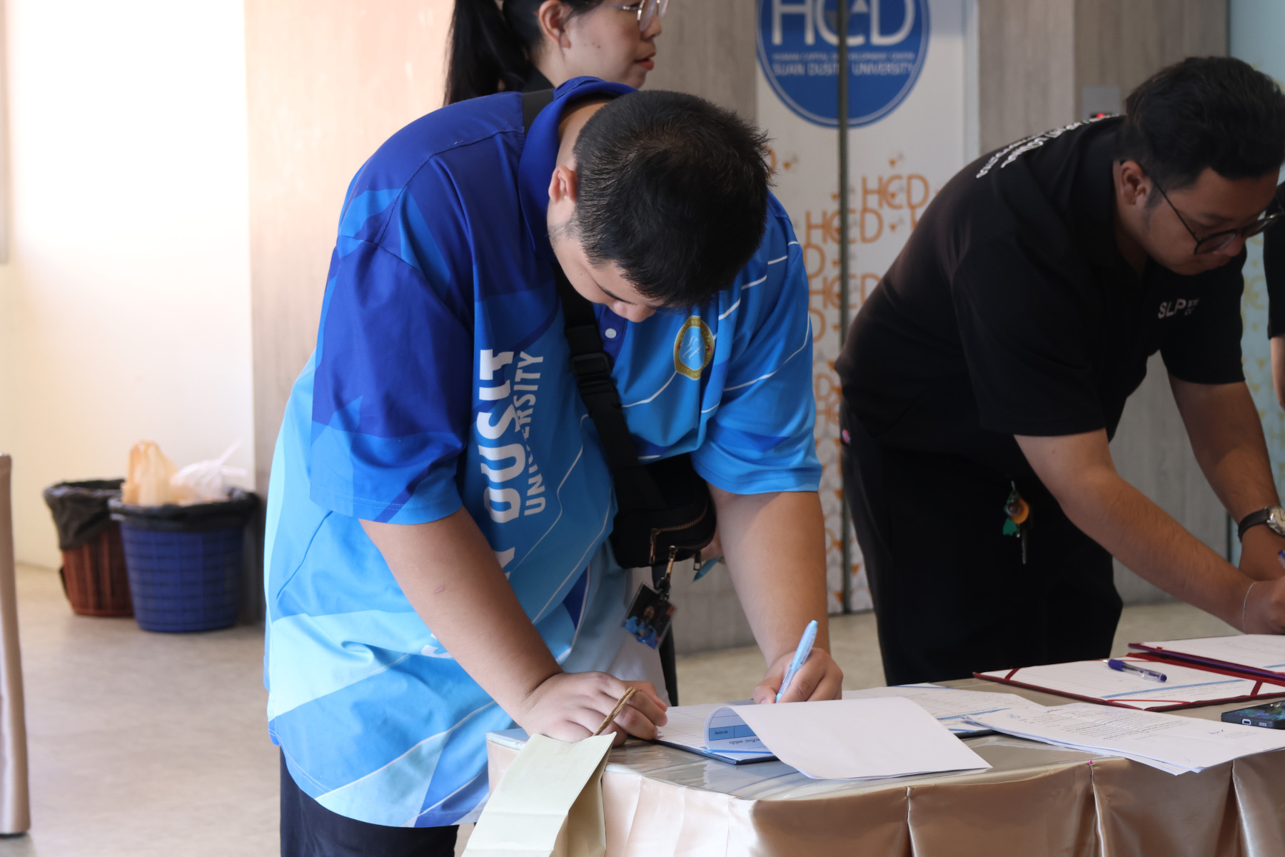 เมื่อวันศุกร์ที่ 27 กุมภาพันธ์ พ.ศ. 2569 ณ ห้อง 301 ศูนย์พัฒนาทุนมนุษย์ มหาวิทยาลัยสวนดุสิต ได้จัดกิจกรรมการฝึกปฏิบัติการและการซ้อมแผนเผชิญเหตุสุขภาพจิตของมหาวิทยาลัย เพื่อพัฒนาศักยภาพบุคลากรและนักศึกษาในการรับมือกับสถานการณ์วิกฤตอย่างเป็นระบบ ภายใต้กรอบแนวคิด Incident Command System (SDU-ICS) กิจกรรมภาคเช้าเป็นการฝึกปฏิบัติแบบ Workshop ผ่านฐานสถานการณ์จำลอง 3 ฐาน ได้แก่