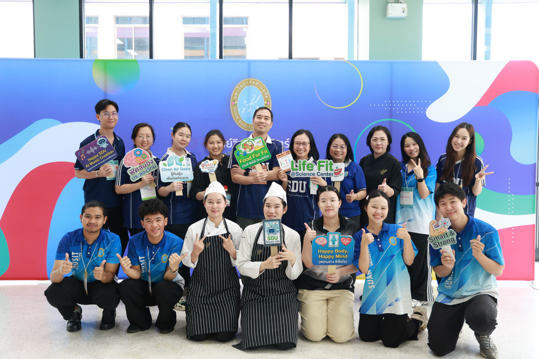 ศูนย์วิทยาศาสตร์ มหาวิทยาลัยสวนดุสิต ขับเคลื่อนนโยบาย Happy SDU ส่งเสริมคุณภาพชีวิตและความสุขของบุคลากร นักศึกษา ผ่านโครงการ Wellness Hub : Good Health & Well-being ภายใต้กิจกรรม “Life Fit @ Science Center” ซึ่งจัดโดยสำนักงานบริการอาคารวิทยาศาสตร์ การดำเนินงานครั้งนี้ได้รับความร่วมมือจาก คณะพยาบาลศาสตร์ คณะวิทยาศาสตร์และเทคโนโลยี โรงเรียนการเรือน และสำนักงานบริการอาคารวิทยาศาสตร์ ร่วมจัดกิจกรรมฐานการเรียนรู้ มุ่งเน้นการสร้างองค์ความรู้และประสบการณ์ด้านสุขภาวะองค์รวม ควบคู่การตระหนักรู้ด้านสิ่งแวดล้อม สอดคล้องกับเป้าหมายการพัฒนาที่ยั่งยืน (SDGs) เป้าหมายที่ 3 ด้านสุขภาพและความเป็นอยู่ที่ดี (Good Health & Well-being) โดยได้รับเกียรติจาก ผศ.ดร.ธณิดา นิลัมภาชาด คณบดีคณะพยาบาลศาสตร์ เป็นประธานเปิดงาน ดร.โสภิตา จันทร์เจริญ ผู้จัดการสำนักงานบริการอาคารวิทยาศาสตร์ รายงานวัตถุประสงค์โครงการ สำหรับกิจกรรมนี้ จัดขึ้นวันที่ 27 กุมภาพันธ์ 2569 ณ ห้อง Hall 2 อาคารเฉลิมพระเกียรติ 50 พรรษา มหาวชิราลงกรณ ศูนย์วิทยาศาสตร์ มหาวิทยาลัยสวนดุสิต