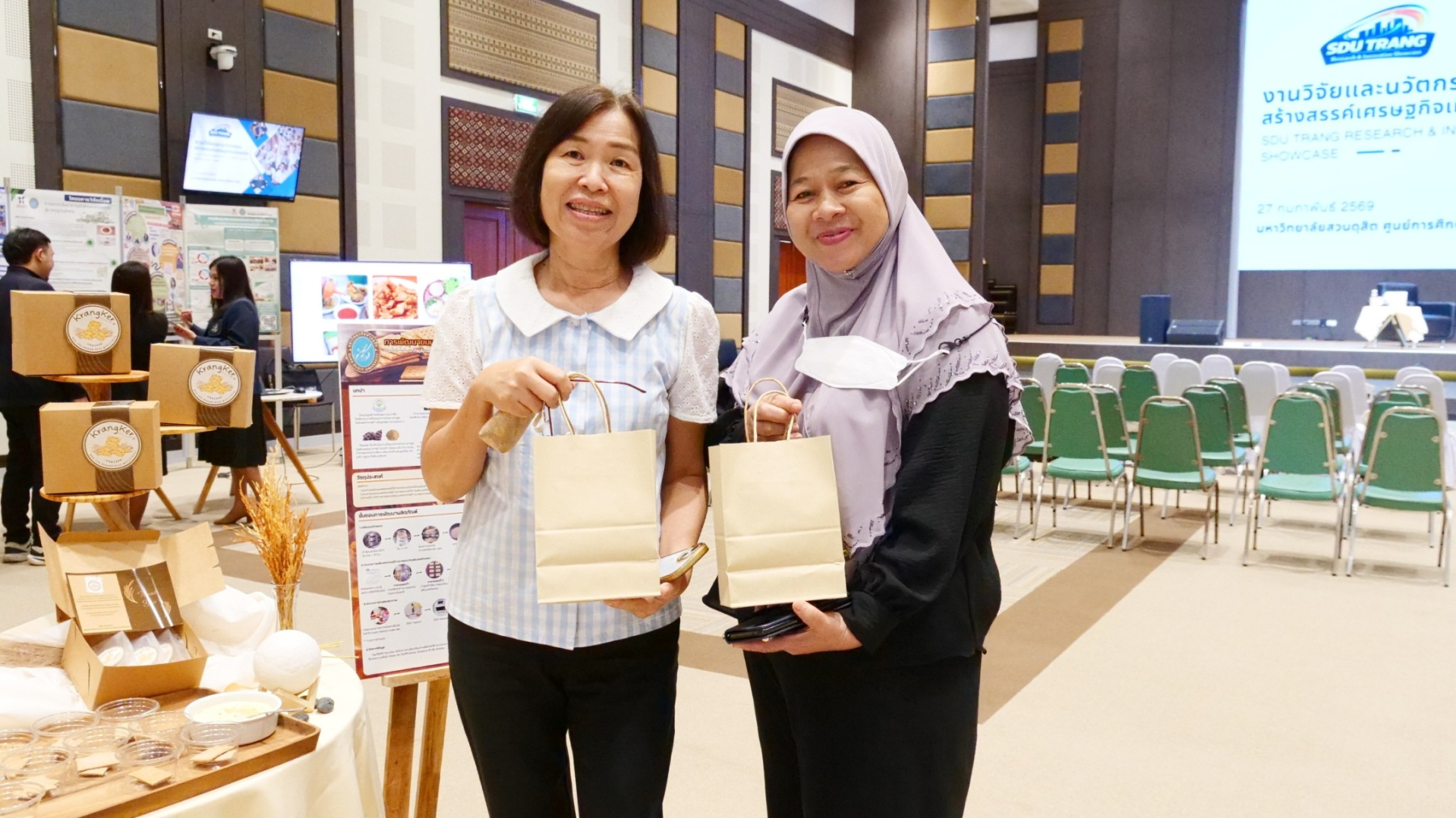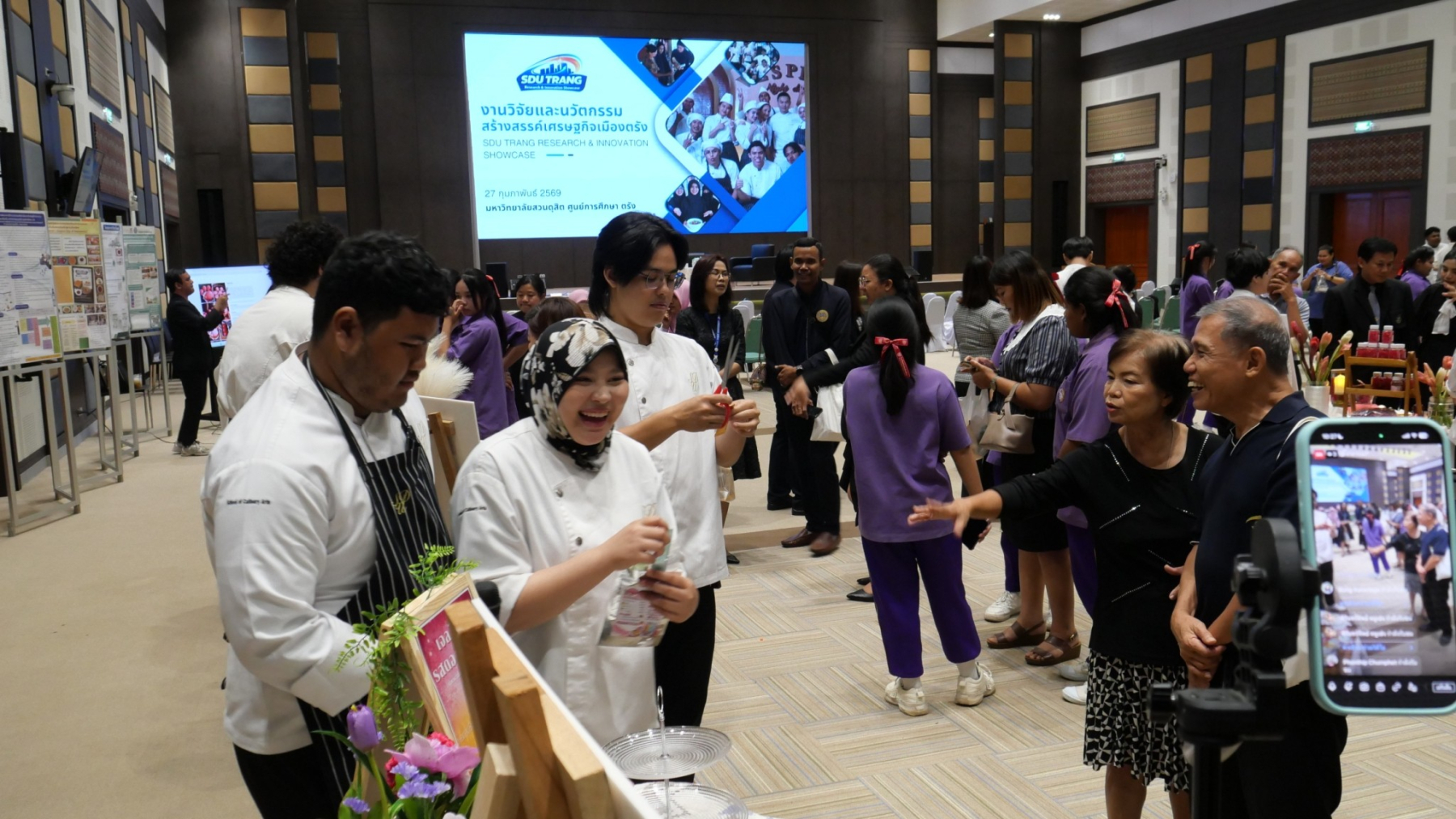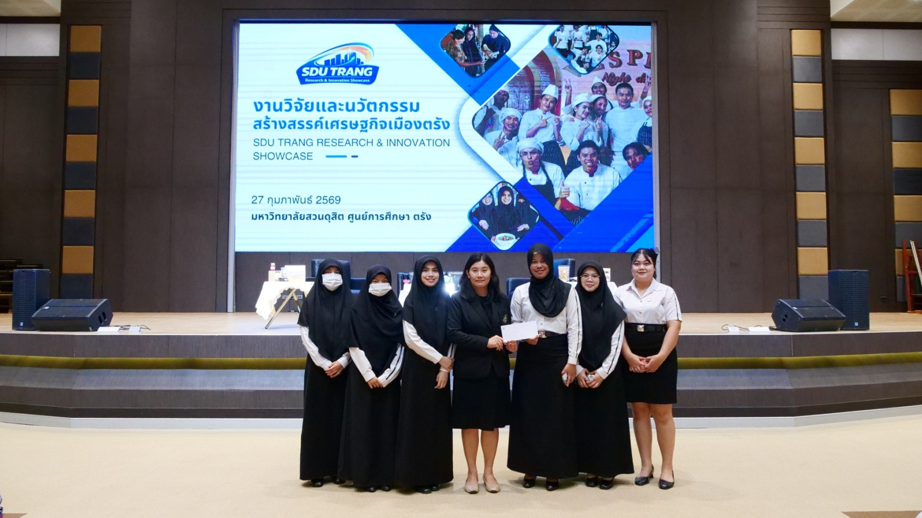มหาวิทยาลัยสวนดุสิต ศูนย์การศึกษา ตรัง เปิดบ้านต้อนรับ ในงาน SDU Trang Research & Innovation Showcase ประจำปีงบประมาณ 2569″ โดยคณะกรรมการส่งเสริมวิจัย ศูนย์ฯตรัง สร้าง “พื้นที่นำองค์ความรู้/ผลการวิจัยไปใช้ประโยชน์” ผ่านโครงการงานวิจัยและนวัตกรรมสร้างสรรค์เศรษฐกิจเมืองตรัง เพื่อให้นักศึกษาได้ฝึกฝนทักษะการสื่อสารผลงานวิจัยและนวัตกรรม (Research and Innovation Communication) ซึ่งเป็นทักษะสำคัญในศตวรรษที่ 21 และเปิดโอกาสให้อาจารย์ได้เผยแพร่ผลงานวิชาการเพื่อสร้างเครือข่ายความร่วมมือกับภาคีภายนอก อันจะนำไปสู่การยกระดับคุณภาพทางวิชาการและการยอมรับในระดับสากลตามอัตลักษณ์ของมหาวิทยาลัยสวนดุสิต โดยมีกิจกรรมการเสวนา จากวิทยากรผู้ทรงคุณวุฒิ คุณพาริวรรณ จันทร์แพทย์รักษ์ รองประธานชมรมผู้ประกอบการร้านอาหารจังหวัดตรัง คุณโชษิตา สงสีจันทร์ สำนักงานพานิชย์จังหวัดตรังและ ดร.ทรงศักดา ชยานุเคราะห์ ผู้อำนวยการศูนย์การศึกษา ตรัง มีการจัดนิทรรศการแสดงผลงานวิจัย และเวทีนำเสนอผลงานวิจัยและนวัตกรรมของนักศึกษาและอาจารย์ กลุ่มเป้าหมายเป็น นักศึกษา  บุคลากรสายวิชาการและสายสนับสนุนและ บุคคลภายนอก จำนวนกว่า 100 คน เมื่อวันที่ 27 กุมภาพันธ์ 2569 ผู้เข้าร่วมเข้าร่วมโครงการมีความพึงพอใจต่อโครงการในระดับดีมากและนักศึกษาเกิดการมีทักษะการสื่อสารและการนำเสนอข้อมูลเชิงวิชาการ