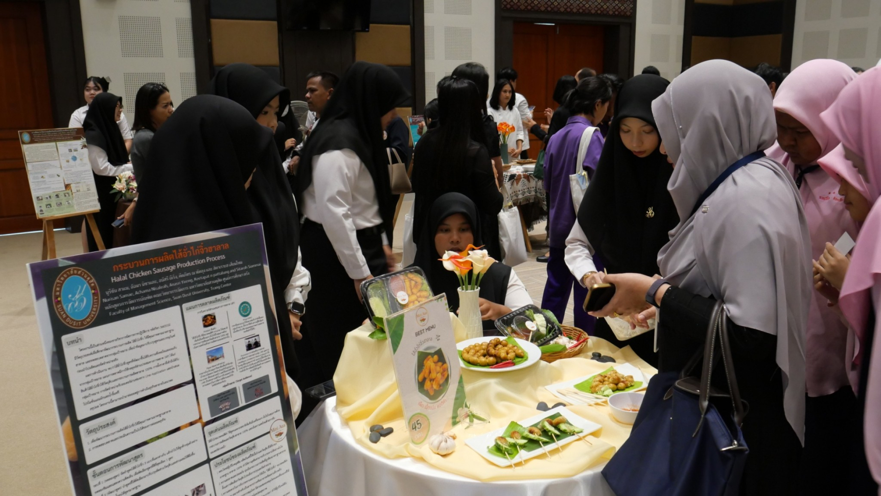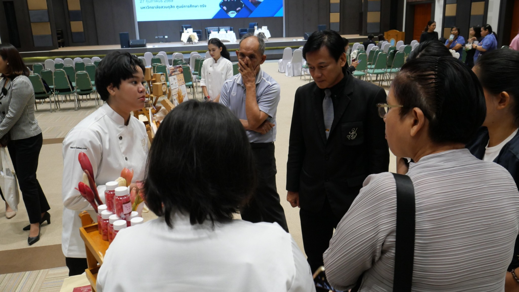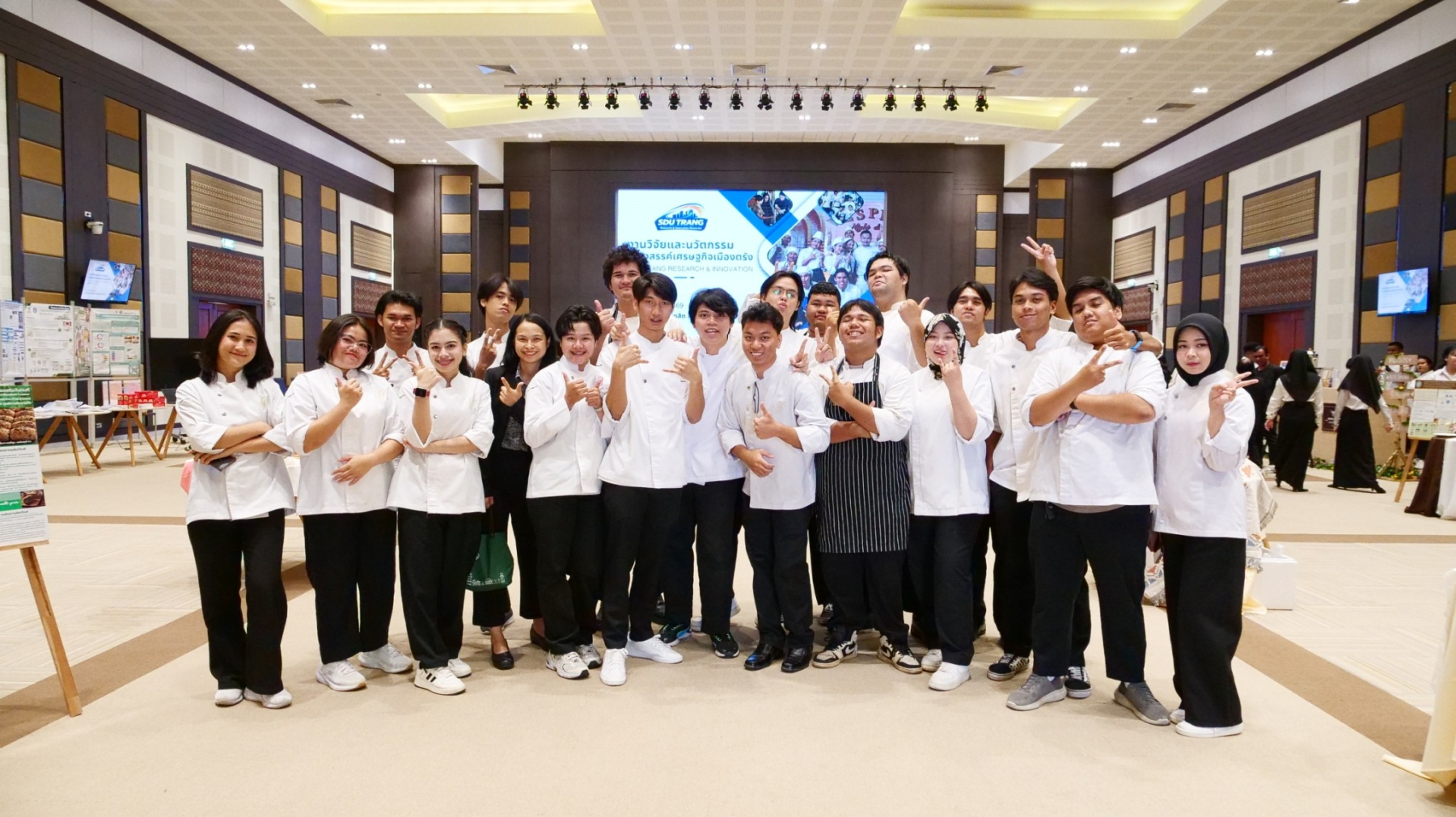 มหาวิทยาลัยสวนดุสิต ศูนย์การศึกษา ตรัง เปิดบ้านต้อนรับ ในงาน SDU Trang Research & Innovation Showcase ประจำปีงบประมาณ 2569″ โดยคณะกรรมการส่งเสริมวิจัย ศูนย์ฯตรัง สร้าง “พื้นที่นำองค์ความรู้/ผลการวิจัยไปใช้ประโยชน์” ผ่านโครงการงานวิจัยและนวัตกรรมสร้างสรรค์เศรษฐกิจเมืองตรัง เพื่อให้นักศึกษาได้ฝึกฝนทักษะการสื่อสารผลงานวิจัยและนวัตกรรม (Research and Innovation Communication) ซึ่งเป็นทักษะสำคัญในศตวรรษที่ 21 และเปิดโอกาสให้อาจารย์ได้เผยแพร่ผลงานวิชาการเพื่อสร้างเครือข่ายความร่วมมือกับภาคีภายนอก อันจะนำไปสู่การยกระดับคุณภาพทางวิชาการและการยอมรับในระดับสากลตามอัตลักษณ์ของมหาวิทยาลัยสวนดุสิต โดยมีกิจกรรมการเสวนา จากวิทยากรผู้ทรงคุณวุฒิ คุณพาริวรรณ จันทร์แพทย์รักษ์ รองประธานชมรมผู้ประกอบการร้านอาหารจังหวัดตรัง คุณโชษิตา สงสีจันทร์ สำนักงานพานิชย์จังหวัดตรังและ ดร.ทรงศักดา ชยานุเคราะห์ ผู้อำนวยการศูนย์การศึกษา ตรัง มีการจัดนิทรรศการแสดงผลงานวิจัย และเวทีนำเสนอผลงานวิจัยและนวัตกรรมของนักศึกษาและอาจารย์ กลุ่มเป้าหมายเป็น นักศึกษา  บุคลากรสายวิชาการและสายสนับสนุนและ บุคคลภายนอก จำนวนกว่า 100 คน เมื่อวันที่ 27 กุมภาพันธ์ 2569 ผู้เข้าร่วมเข้าร่วมโครงการมีความพึงพอใจต่อโครงการในระดับดีมากและนักศึกษาเกิดการมีทักษะการสื่อสารและการนำเสนอข้อมูลเชิงวิชาการ