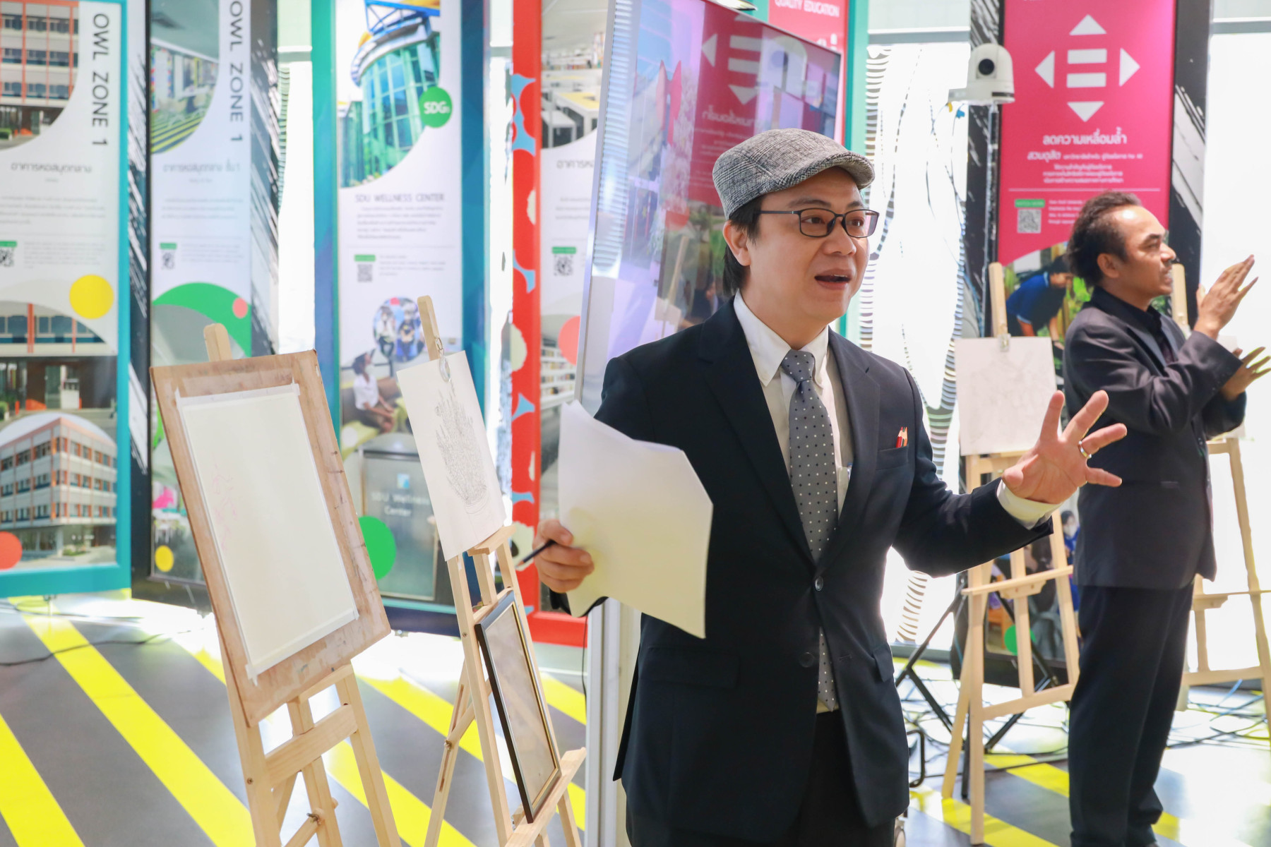 คณะมนุษยศาสตร์และสังคมศาสตร์ จัดโครงการ “HUSO Talk Series: Career Bridge: Learn, Connect & Grow” กิจกรรมในหัวข้อ “”Talk กับ Draw ADAI by P.P. Talk by Palunut Draw with Pichet REATIVE (ตอนสัญลักษณ์ในการมูและมงคลชีวิตจากศัพท์ภาษาอังกฤษ)” โดยมี รองศาสตราจารย์ ดร.ยุทธพงษ์ ลีลากิจไพศาล คณบดีคณะมนุษยศาสตร์และสังคมศาสตร์ กล่าวเปิดกิจกรรม ได้รับเกียรติจาก รองศาสตราจารย์ ดร. วรวิทย์ กิจเจริญไพบูลย์ อาจารย์ประจำหลักสูตรภาษาอังกฤษเพื่อการสื่อสาร เป็นวิทยากร ในวันพฤหัสบดีที่ 5 มีนาคม 2569 เวลา 09.30 – 12.00 น. ณ ลานกิจกรรม Monster Inc ชั้น 1 0WL มหาวิทยาลัยสวนดุสิต