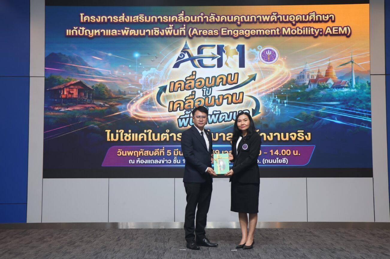 สำนักนวัตกรรมชุมชน มหาวิทยาลัยสวนดุสิต เข้าร่วมพิธีลงนามบันทึกข้อตกลงความร่วมมือ ฯ เนื่องจาก ได้รับการพิจารณาคัดเลือกให้ดำเนินโครงการพัฒนาศูนย์การเรียนรู้เกษตรปลอดภัยและสุขภาวะด้านสารชีวภาพจากทรัพยากรท้องถิ่นภายใต้แนวคิด ESG Living Lab ตำบลดงขี้เหล็กอำเภอเมือง จังหวัดปราจีนบุรี ภายใต้โครงการส่งเสริมการเคลื่อนกำลังคนคุณภาพด้านอุดมศึกษา แก้ปัญหาและพัฒนาเชิงพื้นที่ (Areas Engagement Mobility: AEM) ประจำปีงบประมาณ พ.ศ.2569 ของสำนักงานปลัดกระทรวงการอุดมศึกษา วิทยาศาสตร์ วิจัย และนวัตกรรม ในวันที่ 5 มีนาคม 2569 ณ ห้องแถลงข่าวชั้น 1 อาคารพระจอมเกล้า กระทรวงการอุดมศึกษา วิทยาศาสตร์ วิจัยและนวัตกรรม นำโดยรองศาสตราจารย์ ดร.รุ่งเกียรติ แก้วเพชร รองผู้อำนวยการสำนักนวัตกรรมชุมชน และบุคลากร เข้าร่วมงาน ในการนี้ ได้รับเกียรติจากนางสาววราภรณ์ รุ่งตระการ รองปลัดกระทรวงการอุดมศึกษา วิทยาศาสตร์ วิจัย และนวัดกรรม เป็นประธานเปิดงาน โดยมีอธิการบดีและผู้บริหารมหาวิทยาลัยที่ได้รับการพิจารณาคัดเลือกให้ดำเนินโครงการและเข้าร่วมพิธีลงนามฯ ทั้งหมดจำนวน 16 แห่ง