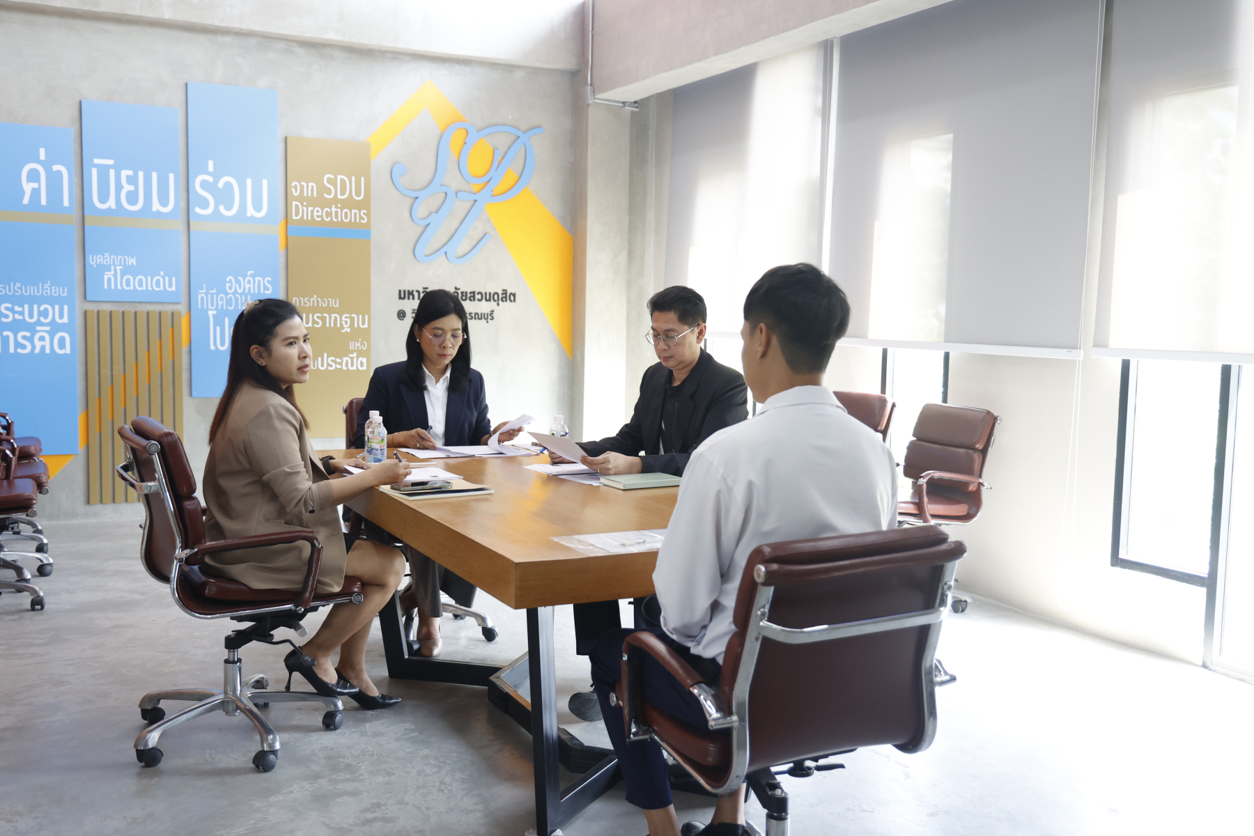 สำนักงานวิทยาเขตสุพรรณบุรี มหาวิทยาลัยสวนดุสิต จัดการสัมภาษณ์บุคคลเพื่อรับเข้าทำงานในตำแหน่ง เจ้าหน้าที่สำนักงาน (บริหารงานทั่วไป) จำนวน 1 อัตรา สังกัดกองอาคารและสิ่งแวดล้อม นำโดย นางกัณณ์อลิน สุอังคะวาทิน ผู้อำนวยการสำนักงานวิทยาเขตสุพรรณบุรี, นายปริญญา หนูนุรัตน์ ผู้อำนวยการกองอาคารและสิ่งแวดล้อม พร้อมด้วยเจ้าหน้าที่ในส่วนงานที่เกี่ยวข้อง เป็นกรรมการสัมภาษณ์ ในวันพฤหัสบดีที่ 5 มีนาคม 2569 เวลา 14.00 น. เป็นต้นไป ณ ห้องประชุม 1 ชั้น 2  อาคารศูนย์การเรียนรู้ระบบใหม่โดยใช้เทคโนโลยีเป็นสื่อ (SDU Library@Suphanburi) มหาวิทยาลัยสวนดุสิต วิทยาเขตสุพรรณบุรี