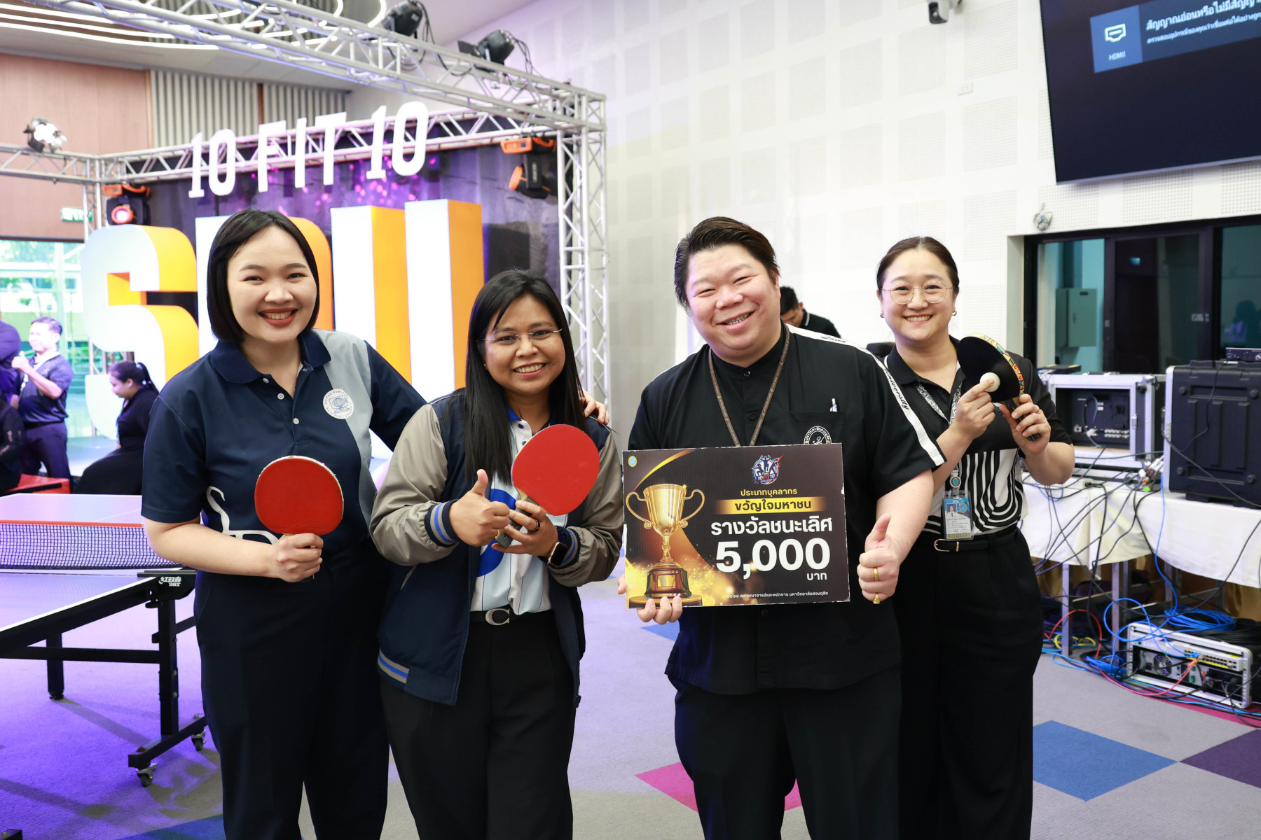 มหาวิทยาลัยสวนดุสิต โดยสภาคณาจารย์และพนักงาน จัดงานประกาศผลรางวัลและกิจกรรมโครงการ “สร้างความสุข ขยับกาย สบายชีวี ท้าเพื่อนดี SDU 10Fit10” โดยได้รับเกียรติจาก รองศาสตราจารย์ ดร.ชนะศึก นิชานนท์ รองอธิการบดีฝ่ายบริหาร วิจัยและนวัตกรรม กล่าวแสดงความยินดีแก่ผู้รับรางวัล อีกทั้ง ได้รับเกียรติจาก นายธงชัย ศรีดามา อุปนายกสภามหาวิทยาลัย ศาสตราจารย์ พล.ต.ต.หญิง ดร.พัชรา สินลอยมา และ ศาสตราจารย์ ดร.ศุภลักษณ์ พินิจภูวดล กรรมการสภามหาวิทยาลัย ผู้ทรงคุณวุฒิ ผู้ช่วยศาสตราจารย์ ดร.พรชณิตว์ แก้วเนตร รองอธิการบดีฝ่ายวิขาการ และกิจการต่างประเทศ พร้อมด้วยคณะผู้บริหาร บุคลากรและนักศึกษา ร่วมแสดงความยินดีในครั้งนี้