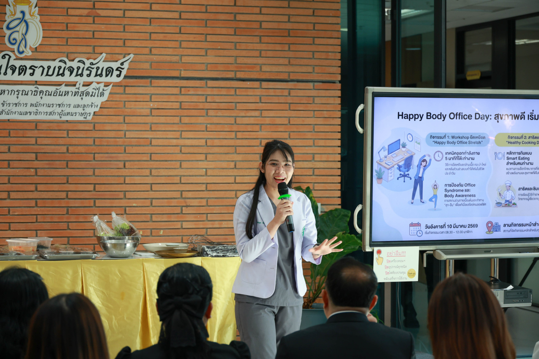 โรงเรียนการเรือน มหาวิทยาลัยสวนดุสิต เข้าร่วมกิจกรรมเสริมสร้างสุขภาพด้วยการยืดเหยียดและโภชนาการเพื่อคนทำงาน ในโครงการ Happy Body Office Day สุขภาพดี เริ่มต้นที่ที่ทำงาน ในช่วงแรกได้มีกิจกรรม Workshop ยืด เหยียด”Happy Body Office Stretch” ได้มีการแนะนำเทคนิค การออกกำลังกาย 5 นาทีที่โต๊ะทำงาน โดยใช้วิธีการยืดกล้ามเนื้อ คอ บ่า ไหล่ และการป้องกัน Office Syndrome และ Body Awareness โดย พท.ไปรมา รัตนะพร หัวหน้าศูนย์การแพทย์แผนไทยและการแพทย์ทางเลือก สาขารัฐสภา เป็นวิทยากรในการบรรยาย และช่วงที่สองได้มีกิจกรรม สาธิตและชิม “Healthy Cooking Demo” ได้มีการบรรยายหลักการกินแบบ Smart Eating สำหรับคนทำงาน โดย อาจารย์สุนิทรา ชัยภัย อาจารย์ประจำหลักสูตรวิทยาศาสตรบัณฑิต สาขาวิชาโภชนาการและการประกอบอาหารเพื่อสุขภาพและการชะลอวัย และได้สาธิตและชิมเมนูสุขภาพ การเรียนรู้วิธีทำอาหารเพื่อสุขภาพ 2 เมนูโดย อาจารย์ทัศเทพ อังกุราภินันท์ อาจารย์ประจำโรงเรียนการเรือน เป็นวิทยากรในการสาธิตและบรรยาย จัดกิจกรรมวันที่ 10 มีนาคม 2569 โดยสำนักงานเลขาธิการสภาผู้แทนราษฎร ณ ลานกิจกรรมหน้าสำนักพัฒนาบุคลากร ชั้น5 อาคารรัฐสภา