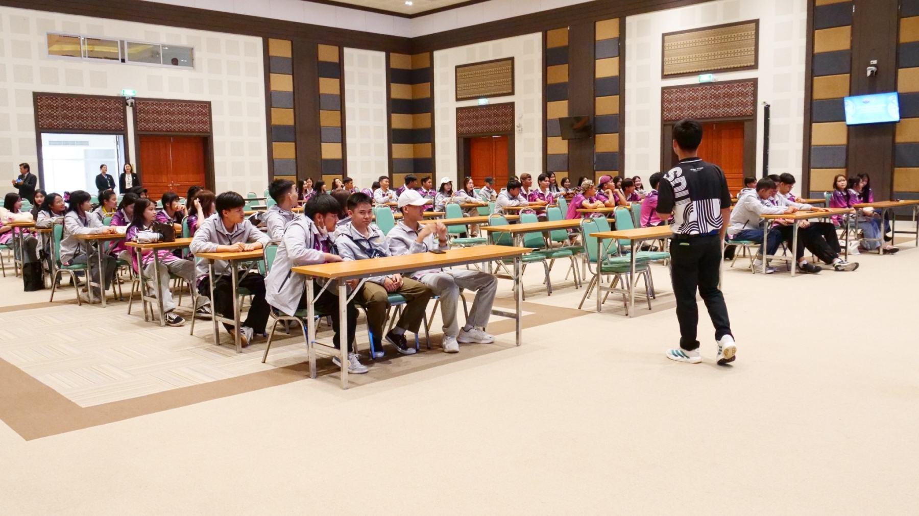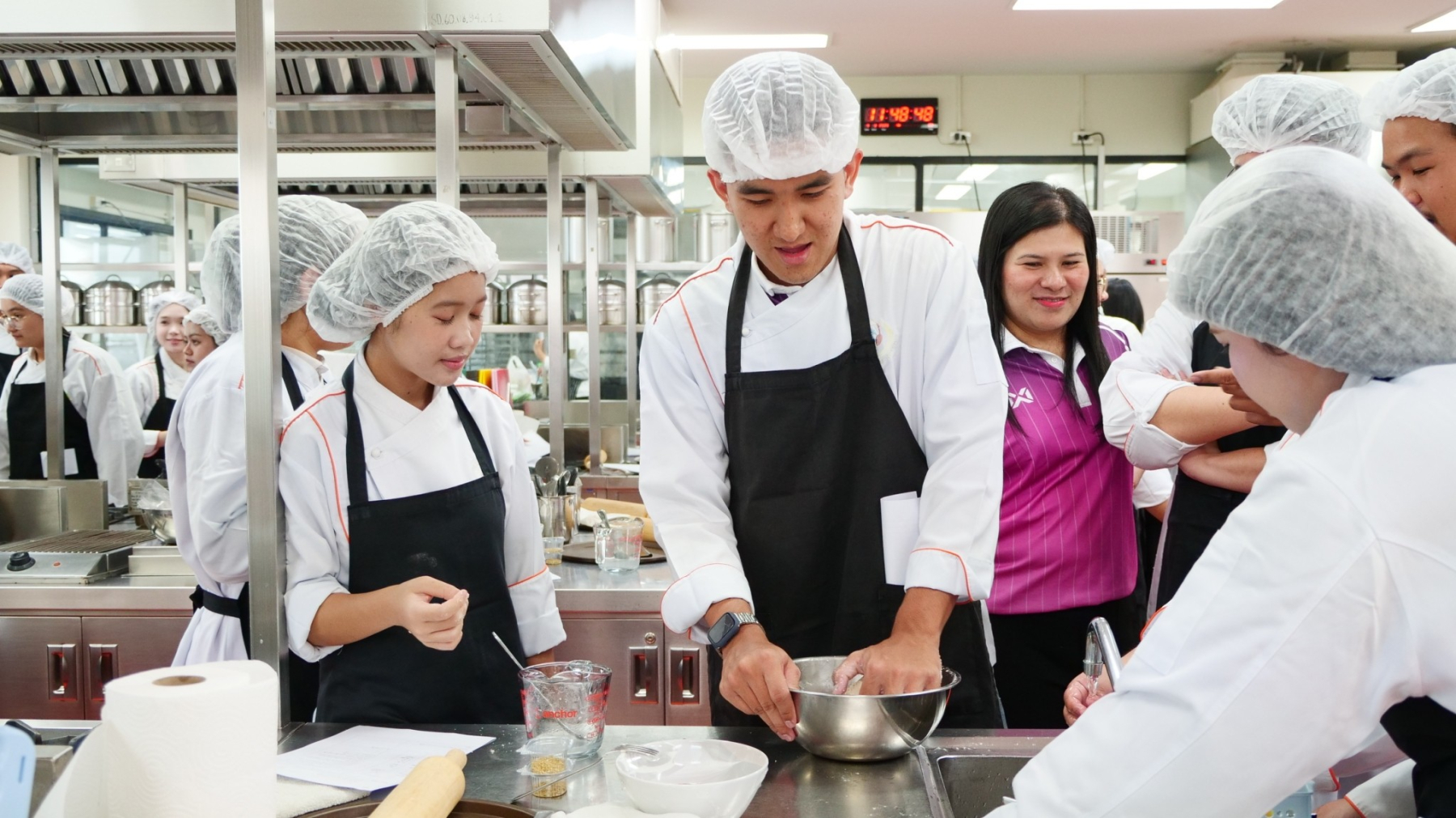เมื่อวันที่ 9 มีนาคม 2569 เวลา 10.00 น. ดร.ทรงศักดา ชยานุเคราะห์ ผู้อำนวยการและบุคลากรของศูนย์การศึกษา ตรัง มหาวิทยาลัยสวนดุสิต ได้ให้การต้อนรับคณะครูและนักเรียน โรงเรียนบางพลีราษฎร์บำรุง อำเภอบางพลี จังหวัดสมุทรปราการ จำนวน 178 คน ซึ่งได้เดินทางมาจัดกิจกรรม “โครงการค่ายพัฒนาศักยภาพนักเรียน ห้องเรียนพิเศษ EIS” ณ จังหวัดตรัง ทั้งนี้ ทางโรงเรียน ฯ ได้เดินทางมาทำกิจกรรม ณ สถานที่ท่องเที่ยวถ้ำเล-เขากอบ อ.ห้วยยอด จ.ตรัง และได้เลือกพื้นที่ของศูนย์การศึกษา ตรัง เป็นที่จัดกิจกรรมปฏิบัติการอาหารสำหรับนักเรียนชั้น ม.6 โดยฝึกปฎิบัติในเมนูพิชช่าและบานอฟฟี่ วัตถุประสงค์เพื่อให้นักเรียนได้เกิดพัฒนาทักษะด้านการทำอาหารและได้มีโอกาสใช้ห้องปฏิบัติการอาหารที่มีมาตรฐานสากลเป็นฐานการเรียนรู้ นอกจากนี้ ทางศูนย์การศึกษา ฯ ได้จัดกิจกรรมสันทนาการสำหรับนักเรียนชั้น ม.4-5 ซึ่งเป็นกิจกรรมที่ช่วยให้นักเรียนเกิดความผ่อนคลาย ลดอากาศเมื่อยล้าจากการเดินทางและเพื่อเสริมการเรียนรู้นอกห้องเรียนให้แก่นักเรียนด้วย ซึ่งกิจกรรมดังกล่าวได้สร้างความสนุกสนานและความประทับใจให้แก่คณะครู-นักเรียนที่ได้ทางมาใช้พื้นที่ของศูนย์การศึกษา ตรังในครั้งนี้