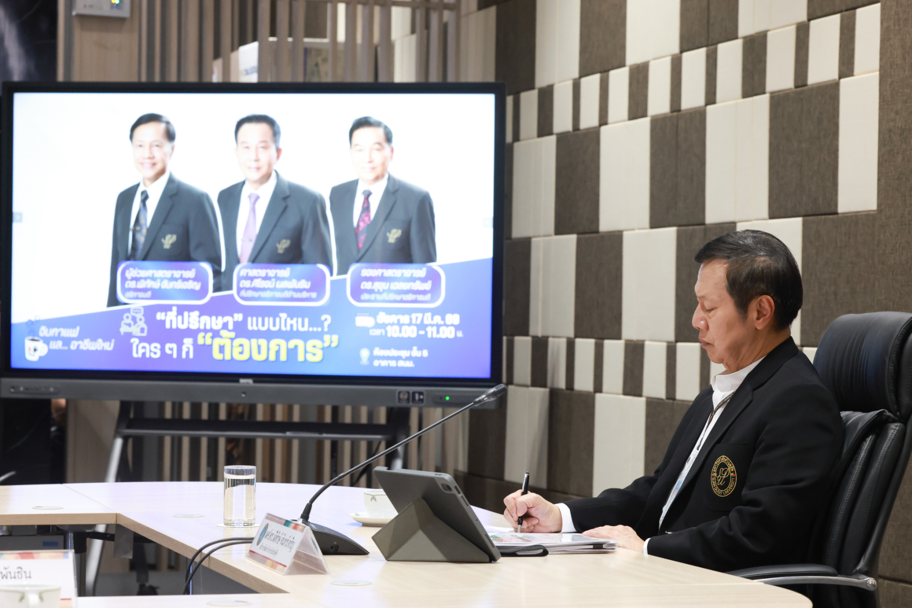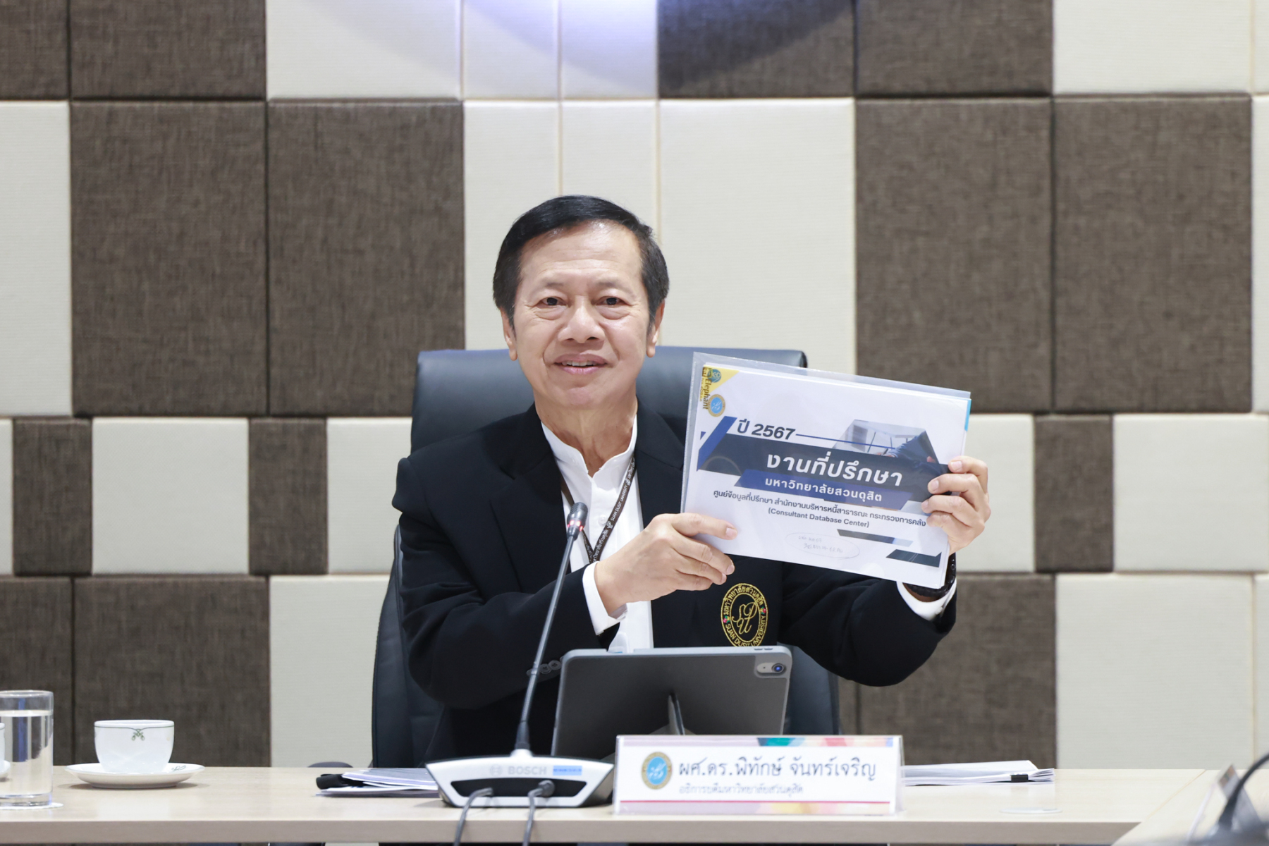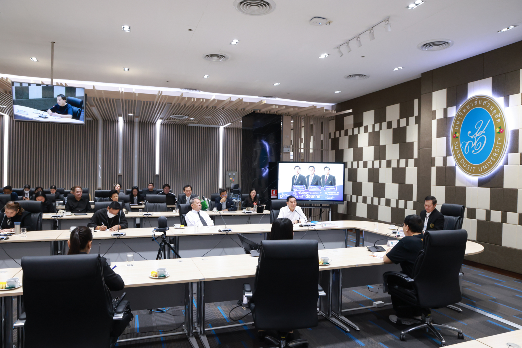 มหาวิทยาลัยสวนดุสิต จัดกิจกรรมจิบกาแฟแล…อาชีพใหม่ “อาชีพที่ปรึกษา” เทรนด์ใหม่ที่ใครๆ ก็ต้องการ เพื่อชี้ช่องทางอาชีพที่ปรึกษาซึ่งเป็นสายงานที่กำลังได้รับความนิยม มีความหลากหลาย และท้าทายในยุคปัจจุบัน กิจกรรมในครั้งนี้ได้รับเกียรติจากวิทยากรผู้ทรงคุณวุฒิมาร่วมถ่ายทอดประสบการณ์และกลยุทธ์การเป็นที่ปรึกษามืออาชีพ ได้แก่ ผศ.ดร.พิทักษ์ จันทร์เจริญ อธิการบดีมหาววิทยาลัยสวนดุสิต ช่วง “นำ” จิบกาแฟ ศ.ดร.ศิโรจน์ ผลพันธิน ที่ปรึกษาอธิการบดีด้านบริหาร ช่วงเจาะลึก “อาชีพที่ปรึกษา” และรศ.ดร.สุขุม เฉลยทรัพย์ ประธานที่ปรึกษาอธิการบดี ช่วง “ตบท้าย” จิบกาแฟ โดยจัดขึ้นในวันอังคารที่ 17 มีนาคม 2569 ณ ห้องประชุม ชั้น 5 อาคารสำนักงานมหาวิทยาลัย มหาวิทยาลัยสวนดุสิต และออนไลน์ผ่านระบบ Zoom โดยมีผู้บริหาร อาจารย์ บุคลากร และนักศึกษา ให้ความสนใจลงทะเบียนเข้าร่วมกิจกรรมกว่า 300 คน ซึ่งค่าลงทะเบียนเข้าร่วมกิจกรรมโดยไม่หักค่าใช้จ่ายสมทบทุนการศึกษาให้แก่นักศึกษามหาวิทยาลัยสวนดุสิต