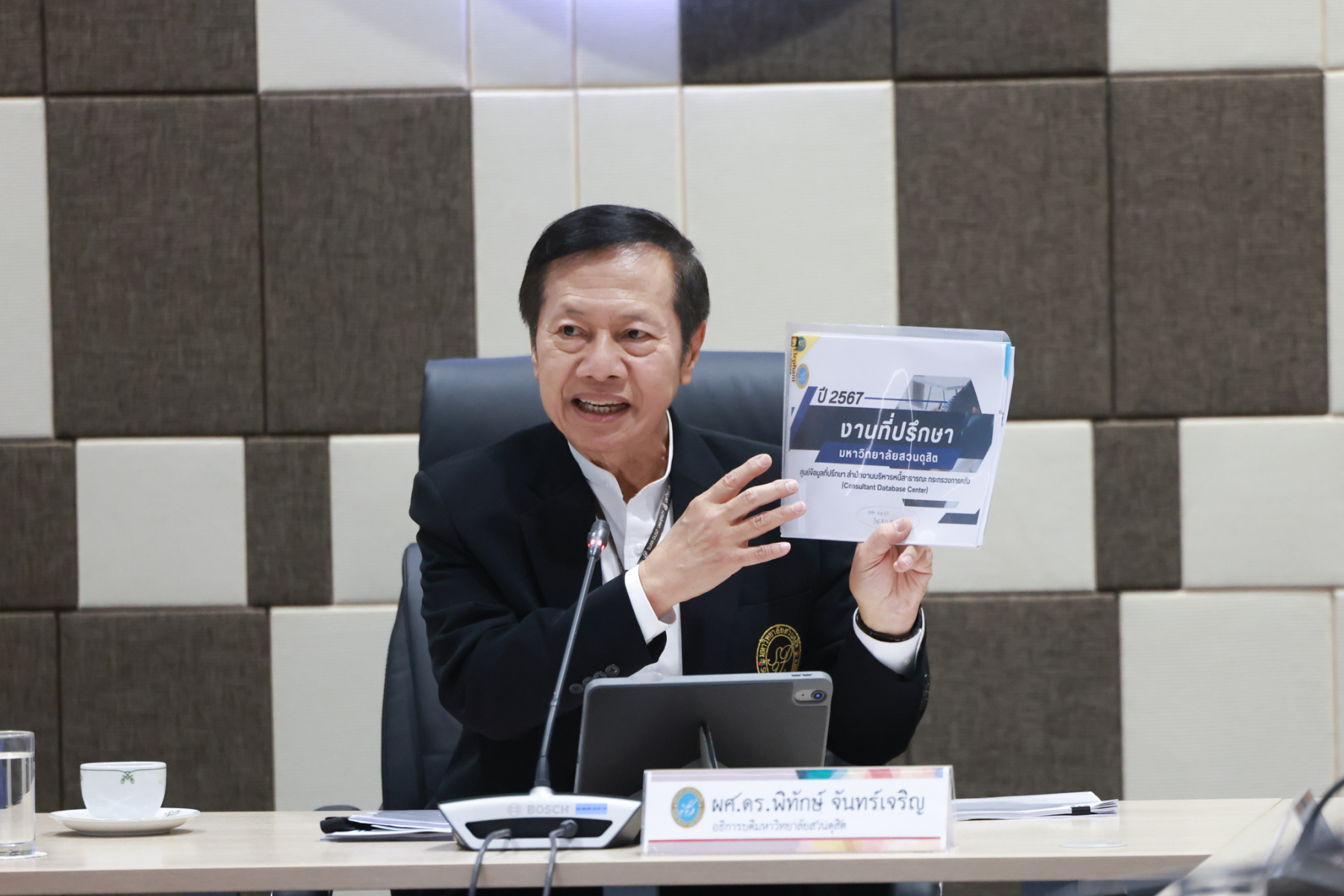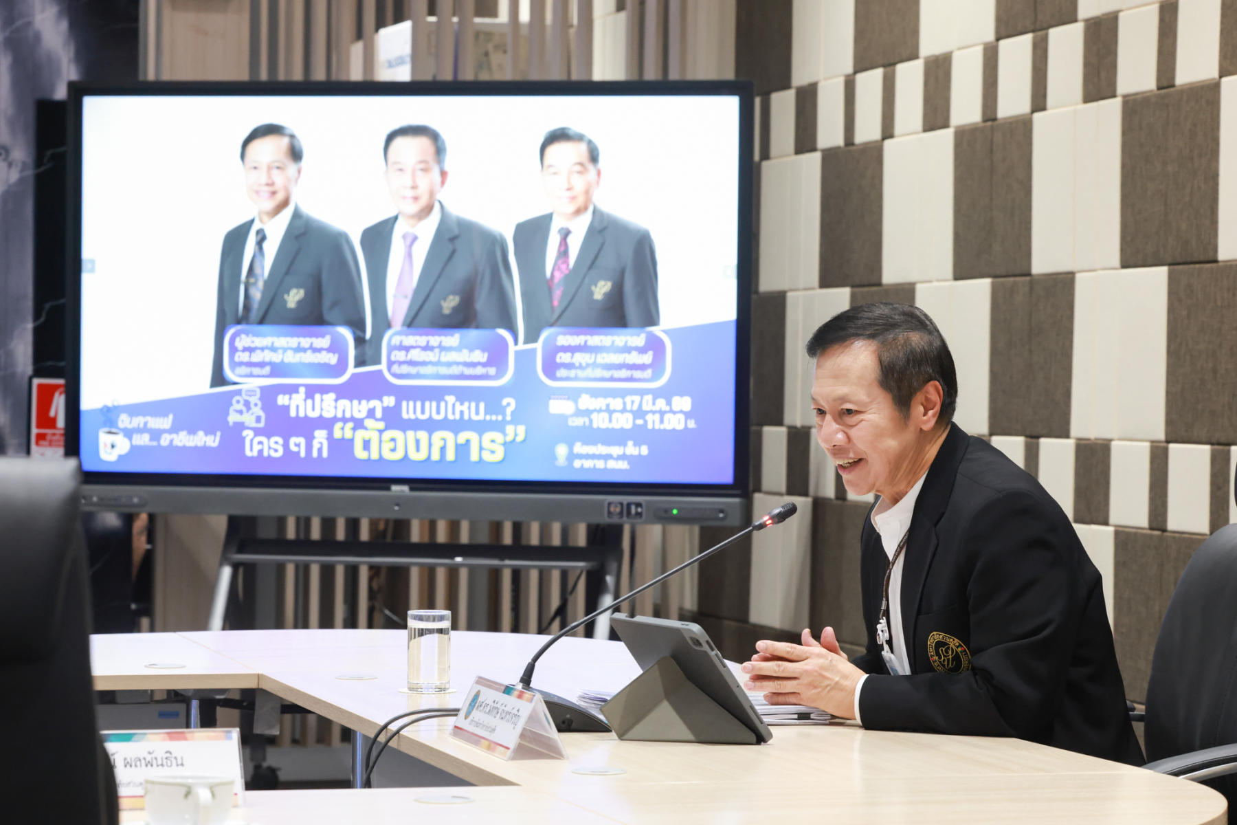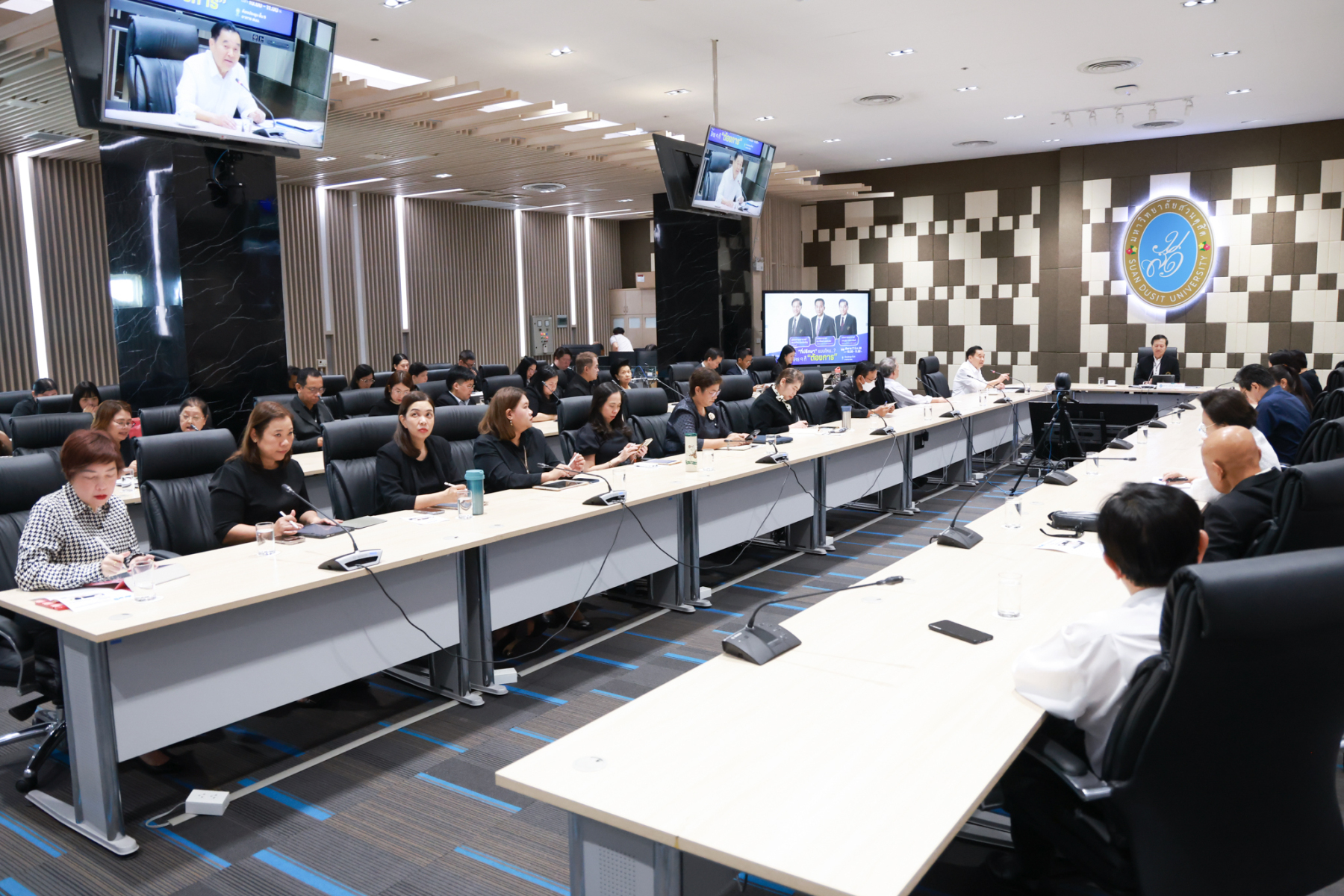 มหาวิทยาลัยสวนดุสิต จัดกิจกรรมจิบกาแฟแล…อาชีพใหม่ “อาชีพที่ปรึกษา” เทรนด์ใหม่ที่ใครๆ ก็ต้องการ เพื่อชี้ช่องทางอาชีพที่ปรึกษาซึ่งเป็นสายงานที่กำลังได้รับความนิยม มีความหลากหลาย และท้าทายในยุคปัจจุบัน กิจกรรมในครั้งนี้ได้รับเกียรติจากวิทยากรผู้ทรงคุณวุฒิมาร่วมถ่ายทอดประสบการณ์และกลยุทธ์การเป็นที่ปรึกษามืออาชีพ ได้แก่ ผศ.ดร.พิทักษ์ จันทร์เจริญ อธิการบดีมหาววิทยาลัยสวนดุสิต ช่วง “นำ” จิบกาแฟ ศ.ดร.ศิโรจน์ ผลพันธิน ที่ปรึกษาอธิการบดีด้านบริหาร ช่วงเจาะลึก “อาชีพที่ปรึกษา” และรศ.ดร.สุขุม เฉลยทรัพย์ ประธานที่ปรึกษาอธิการบดี ช่วง “ตบท้าย” จิบกาแฟ โดยจัดขึ้นในวันอังคารที่ 17 มีนาคม 2569 ณ ห้องประชุม ชั้น 5 อาคารสำนักงานมหาวิทยาลัย มหาวิทยาลัยสวนดุสิต และออนไลน์ผ่านระบบ Zoom โดยมีผู้บริหาร อาจารย์ บุคลากร และนักศึกษา ให้ความสนใจลงทะเบียนเข้าร่วมกิจกรรมกว่า 300 คน ซึ่งค่าลงทะเบียนเข้าร่วมกิจกรรมโดยไม่หักค่าใช้จ่ายสมทบทุนการศึกษาให้แก่นักศึกษามหาวิทยาลัยสวนดุสิต