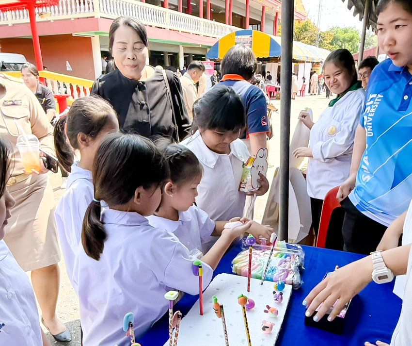 มหาวิทยาลัยสวนดุสิต วิทยาเขตสุพรรณบุรี โดยคณะกรรมการ โครงการ “Form Knowledge to Community : บริการประชาชนอย่างยั่งยืน สุพรรณบุรี 2569” และสาขาวิชาการศึกษาปฐมวัย โดยมีอาจารย์ บุคลากรและนักศึกษาจากวิทยาเขตฯ ร่วมทำกิจกรรมดินสอเพื่อนซี้ พร้อมประชาสัมพันธ์การรับสมัครนักศึกษาใหม่ ประจำปีการศึกษา 2569 ในโครงการจังหวัดสุพรรณบุรีรวมใจ บริการเคลื่อนที่ รับฟังทุกข์สุขประชาชน ประจำปีงบประมาณ พ.ศ.2569 โดยได้รับเกียรติจากนายณัฐพงษ์ สงวนจิตร ผู้ว่าราชการจังหวัดสุพรรณบุรี เป็นประธานกล่าวเปิดโครงการ และในงานยังมีหน่วยงานจากทั้งส่วนราชการ รัฐวิสาหกิจ และภาคเอกชน ออกให้บริการประชาชนตามโครงการฯ ในวันศุกร์ที่ 13 มีนาคม 2569 เวลา 08.00-12.00 น. ณ วัดกระเสียว หมู่ที่ 7 ตำบลกระเสียว อำเภอสามชุก จังหวัดสุพรรณบุรี