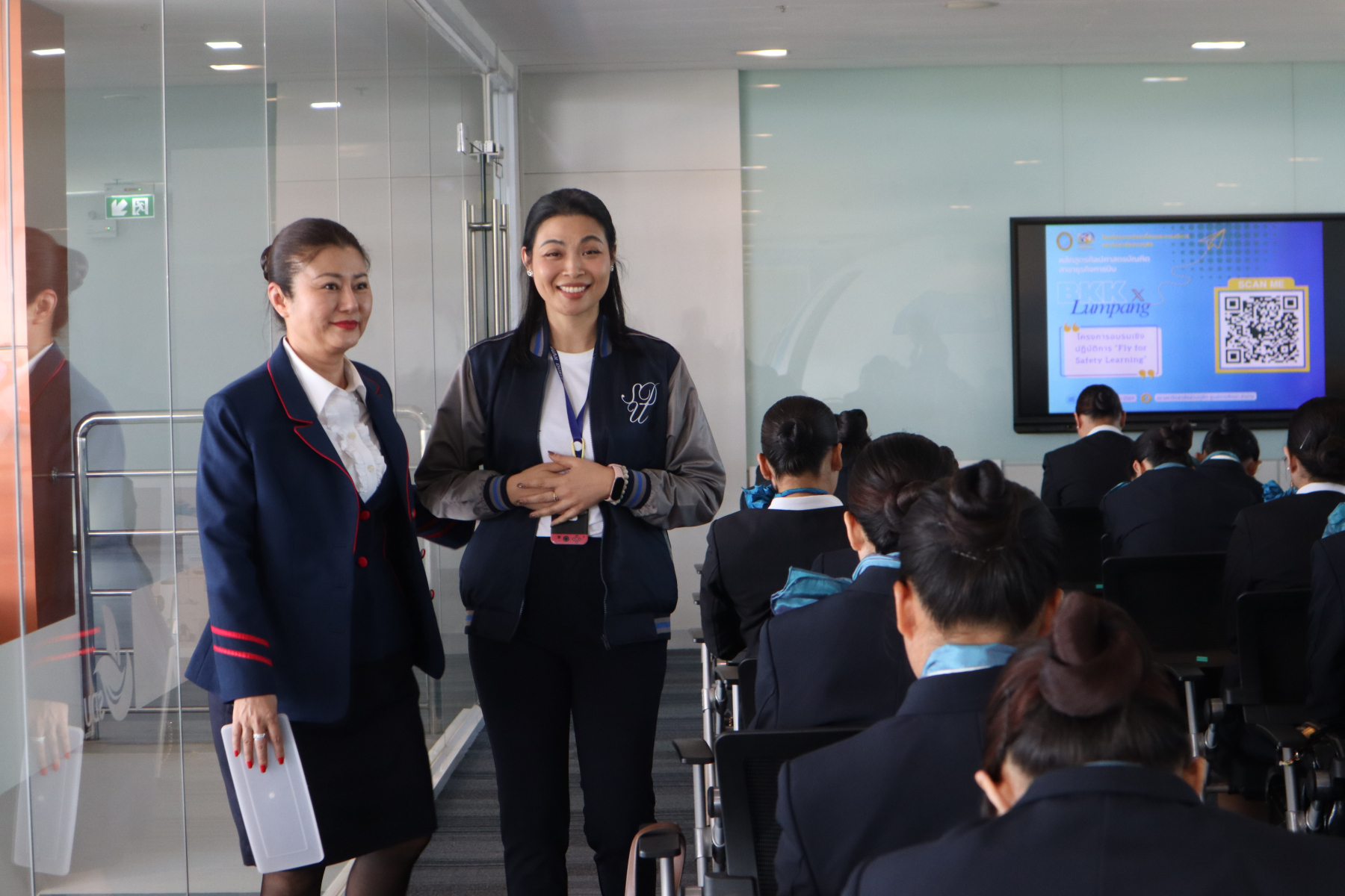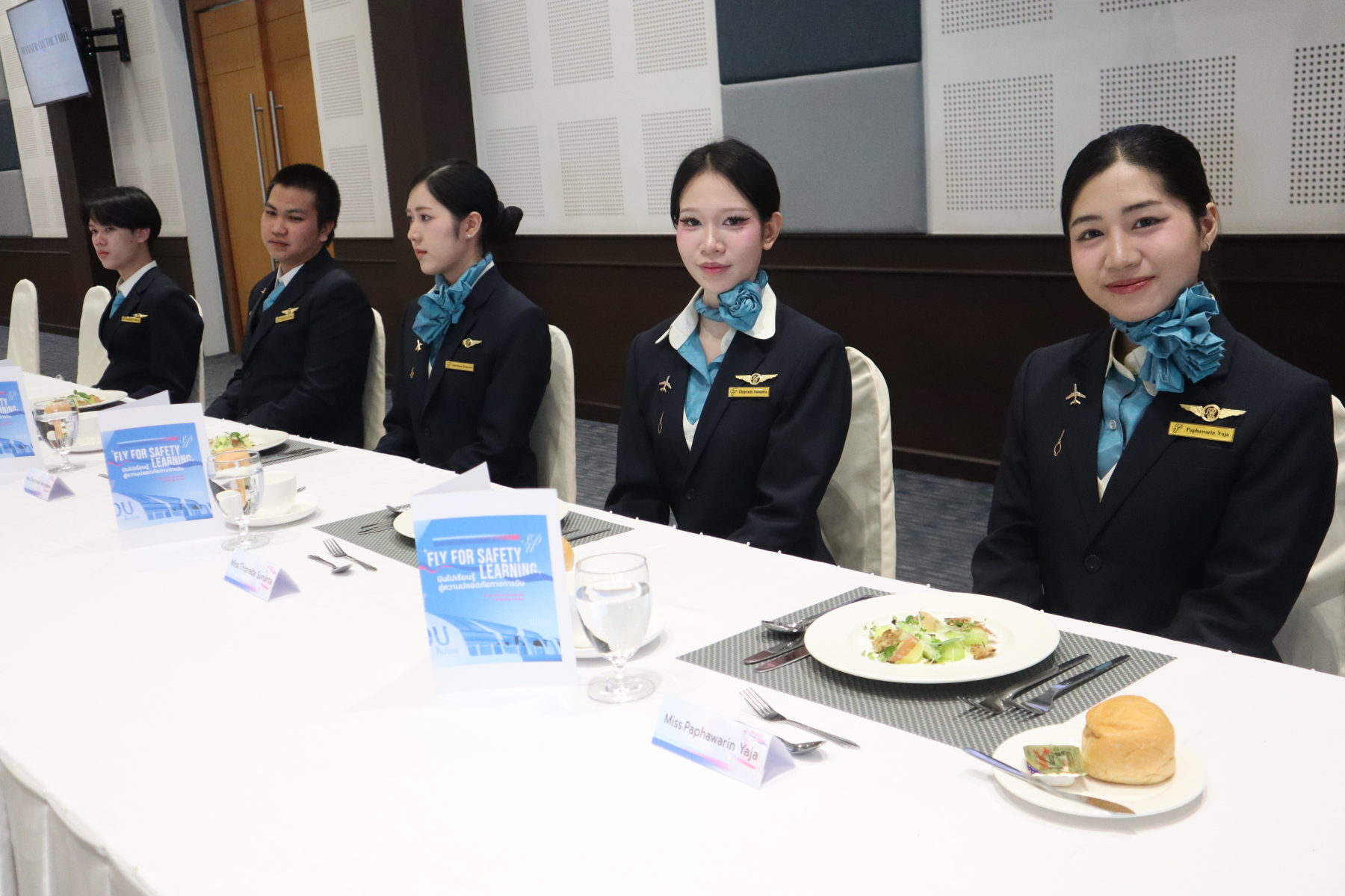 วันที่ 25 มีนาคม 2569 มุ่งเน้นการฝึกปฏิบัติด้านความปลอดภัยทางน้ำ ผ่านกิจกรรม Wet Drill จำลองสถานการณ์ลงจอดฉุกเฉินทางน้ำ (Ditching) พร้อมฝึกใช้อุปกรณ์ยังชีพ เช่น เสื้อชูชีพและแพยาง เพื่อเสริมสร้างความพร้อมและความมั่นใจในสถานการณ์จริง จากนั้น เดินทางสู่ วัดพระธาตุลำปางหลวง และ Lampang Gateway เพื่อเรียนรู้มรดกทางวัฒนธรรมควบคู่กับบริบทเมืองร่วมสมัย ผ่านกิจกรรม Learning City Experience