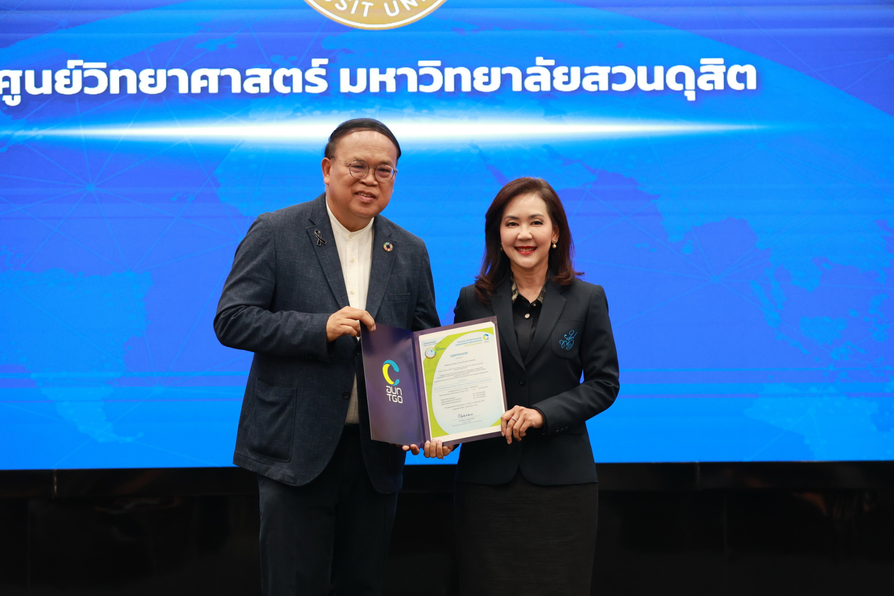 มหาวิทยาลัยสวนดุสิต ภายใต้ความร่วมมือของหน่วยงานภายในที่มุ่งขับเคลื่อนการพัฒนาอย่างยั่งยืน ประกาศความสำเร็จในการได้รับการรับรอง คาร์บอนฟุตพริ้นท์ขององค์กร (Carbon Footprint for Organization: CFO) จากองค์การบริหารจัดการก๊าซเรือนกระจก (องค์การมหาชน) หรือ อบก. (TGO) โดยมีหน่วยงานที่ผ่านการประเมินและได้รับการรับรองอย่างเป็นทางการ ได้แก่ โครงการสวนดุสิตโฮมเบเกอรี่ และ ศูนย์วิทยาศาสตร์ มหาวิทยาลัยสวนดุสิต นับเป็นอีกหนึ่งก้าวสำคัญ ของมหาวิทยาลัยในการยกระดับมาตรฐานการดำเนินงานด้านสิ่งแวดล้อมให้สอดคล้องกับเป้าหมายการพัฒนาที่ยั่งยืน สำหรับ โครงการสวนดุสิตโฮมเบเกอรี่ ได้รับการรับรองคาร์บอนฟุตพริ้นท์ขององค์กร ภายใต้สัญญาอนุญาตใช้เครื่องหมายเลขที่ TGO CFO FY26-085 สะท้อนถึงการนำแนวคิดการบริหารจัดการก๊าซเรือนกระจกมาใช้ในหน่วยงานด้านอาหารและการผลิตอย่างเป็นระบบและเป็นรูปธรรม ขณะที่ ศูนย์วิทยาศาสตร์ มหาวิทยาลัยสวนดุสิต ซึ่งประกอบด้วย 4 หน่วยงานสำคัญ ได้แก่ คณะวิทยาศาสตร์และเทคโนโลยี โรงเรียนการเรือน คณะพยาบาลศาสตร์ และสำนักงานบริการอาคารศูนย์วิทยาศาสตร์ ได้รับการรับรองคาร์บอนฟุตพริ้นท์ขององค์กร ภายใต้สัญญาอนุญาตใช้เครื่องหมายเลขที่ TGO CFO FY26-02-310 แสดงให้เห็นถึงการบูรณาการความร่วมมือของหลายภาคส่วนภายในมหาวิทยาลัยในการขับเคลื่อนเป้าหมายด้านสิ่งแวดล้อมร่วมกัน การรับรองเครื่องหมายคาร์บอนฟุตพริ้นท์ขององค์กรในครั้งนี้ พิจารณาจากการคำนวณปริมาณก๊าซเรือนกระจกที่ปล่อยจากกิจกรรมสำคัญในการดำเนินงานขององค์กร ครอบคลุมการประเมินครบทั้ง 3 ขอบเขต (Scope) ได้แก่