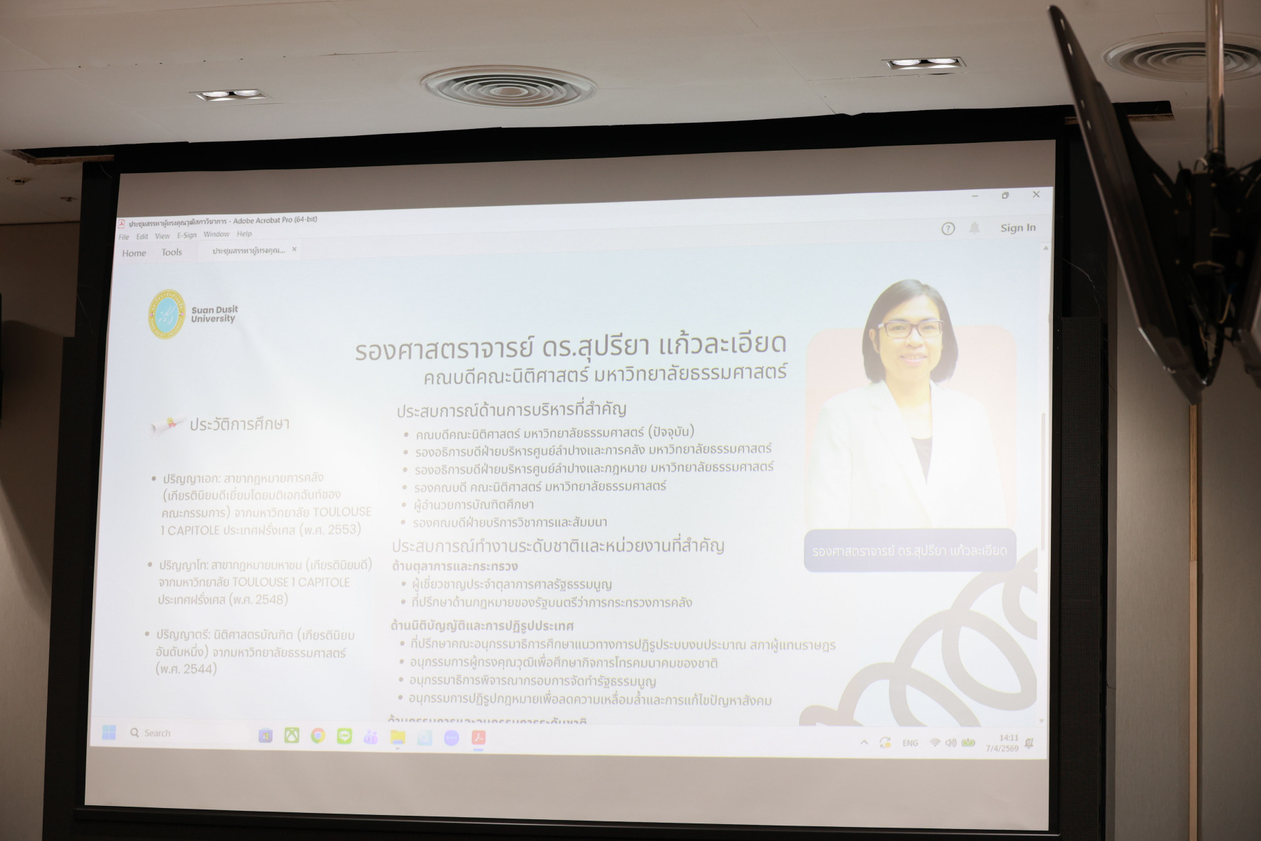 ผู้ช่วยศาสตราจารย์.ดร.พิทักษ์ จันทร์เจริญ อธิการบดีมหาวิทยาลัยสวนดุสิต เป็นประธานการประชุมสรรหากรรมการสภาวิชาการ ผู้ทรงคุณวุฒิภายนอก มหาวิทยาลัยสวนดุสิต โดยมีวาระเสนอเพื่อพิจารณา  การสรรหากรรมการสภาวิชาการผู้ทรงคุณวุฒิภายนอก มหาวิทยาลัยสวนดุสิต เมื่อวันอังคารที่ 7 เมษายน 2569 ณ ห้องประชุมชั้น 5 อาคารสำนักงานมหาวิทยาลัย