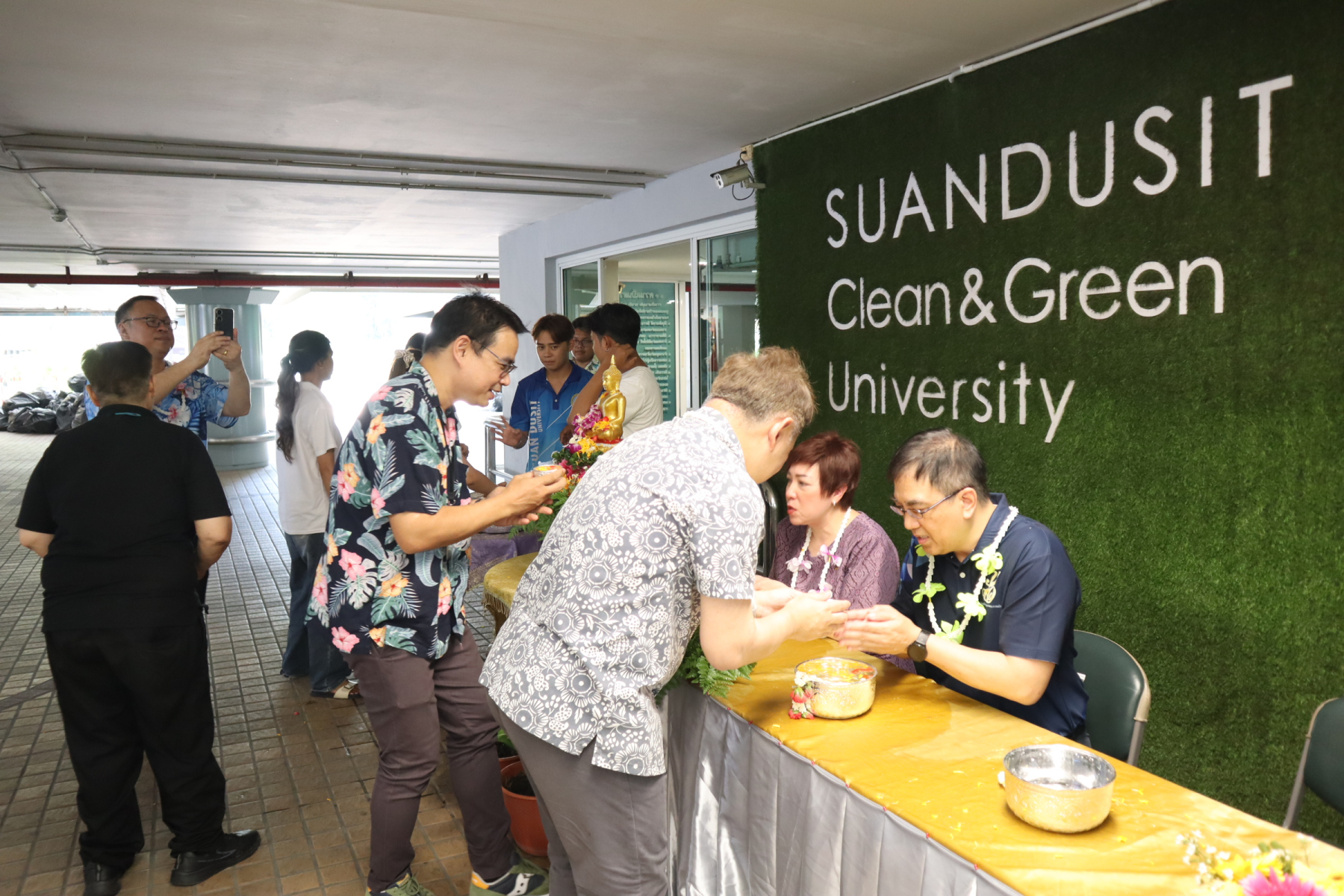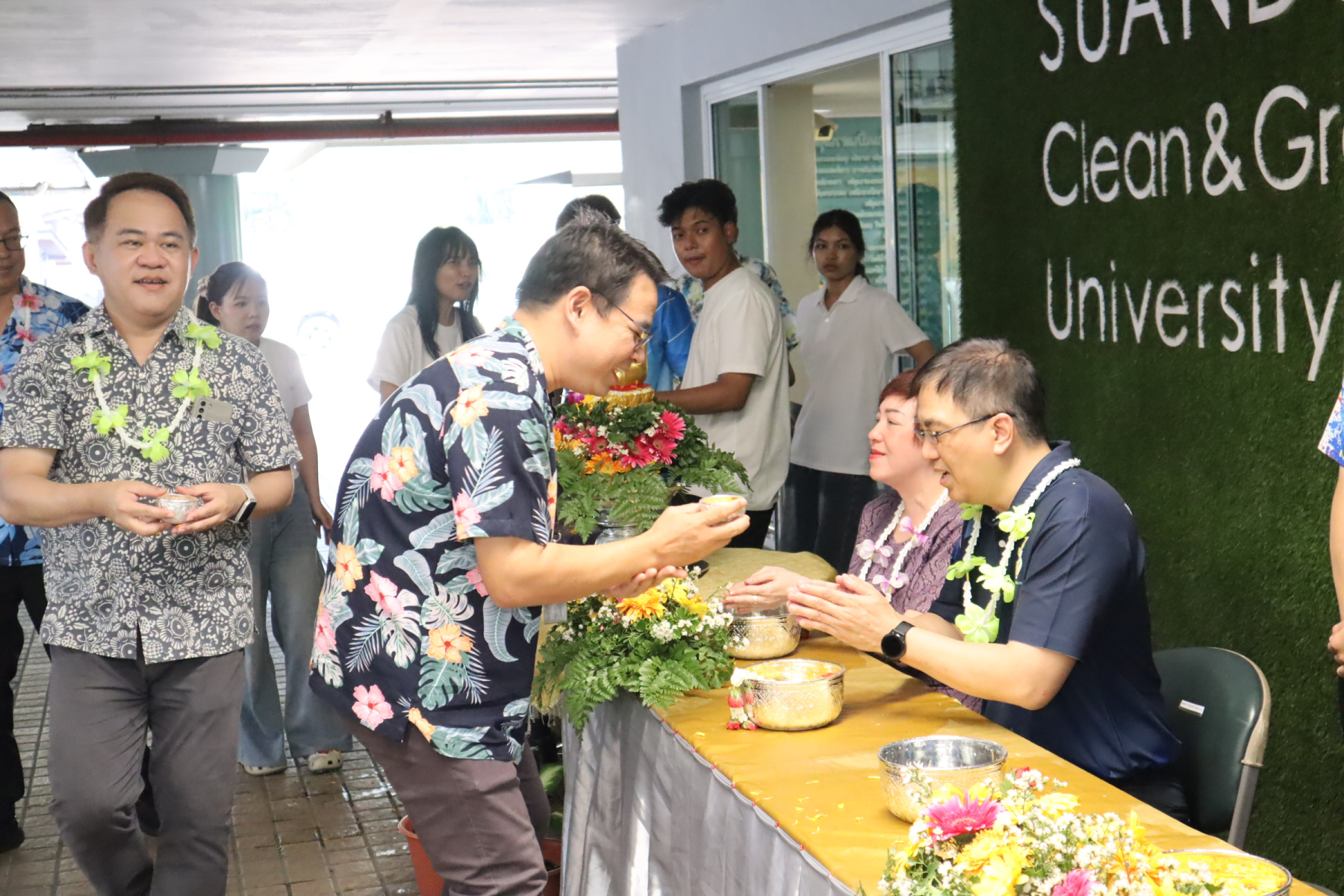 Dr. Ngamprawan Ehsomnuk, Dean of the School of Law and Politics, graciously presided over the opening ceremony and led the ceremonial bathing of the Buddha image during the Thai New Year Cultural Preservation Activity 2026 of the School of Law and Politics. The event featured traditional Songkran customs, including the Buddha bathing ceremony and the Rod Nam Dam Hua ceremony, through which students and staff paid respect to and sought blessings from faculty members in celebration of the Thai New Year. The activity was held on Tuesday, 7 April 2026, from 11:00 a.m. to 12:30 p.m., at the Multipurpose Area, 1st Floor, School of Law and Politics.