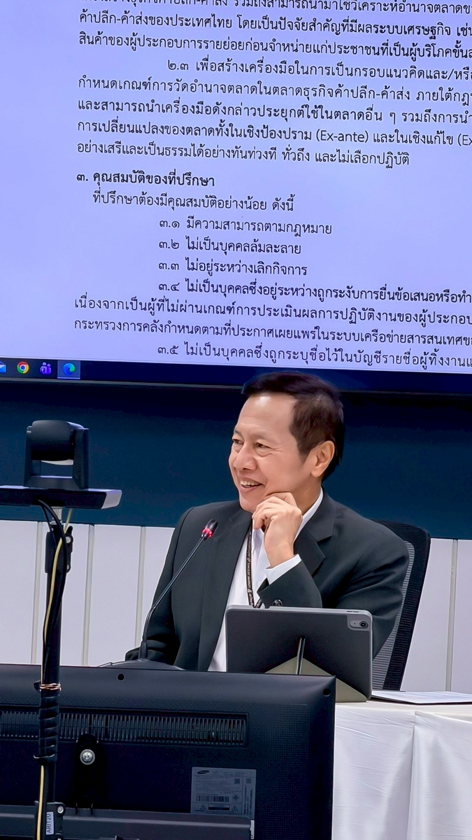 ผู้ช่วยศาสตราจารย์ ดร.พิทักษ์ จันทร์เจริญ อธิการบดี มหาวิทยาลัยสวนดุสิต เป็นประธานการประชุมคณะทำงานการดำเนินงานยื่นข้อเสนอ โครงการจัดทำแนวทางการประเมินอำนาจตลาดในธุรกิจค้าปลีก-ค้าส่งของประเทศไทย เพื่อส่งเสริมการบังคับใช้กฎหมายให้เกิดการค้าที่เสรีและเป็นธรรม (Term of Reference: TOR) ของสำนักงานคณะกรรมการการแข่งขันทางการค้า เมื่อวันที่ 9 เมษายน 2569 เวลา 13.30 – 15.00 น. ณ ห้องประชุม Library Café ชั้น 2 สำนักวิทยบริการและเทคโนโลยี มหาวิทยาลัยสวนดุสิต โดยคณะวิทยาการจัดการ ผู้ช่วยศาสตราจารย์ ดร.ปรียนันท์ ประยูรศักดิ์ คณบดีคณะวิทยาการจัดการ อาจารย์ศักดา ศรีทิพย์ รองผู้อำนวยการสำนักกฎหมาย ผู้ช่วยศาสตราจารย์สร้อย ไชยเดช ผู้ช่วยศาสตราจารย์สรศักดิ์ มั่นศิลป์ อาจารย์ประจำหลักสูตรนิติศาสตรบัณฑิต โรงเรียนกฎหมายและการเมือง และคณาจารย์คณะวิทยาการจัดการ ร่วมรับฟังแนวทางการจัดทำข้อเสนอฯ