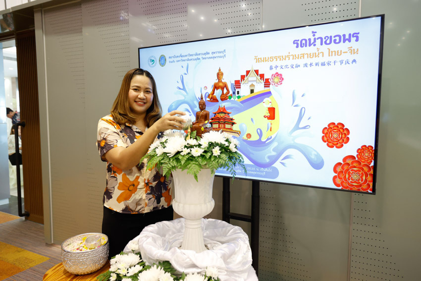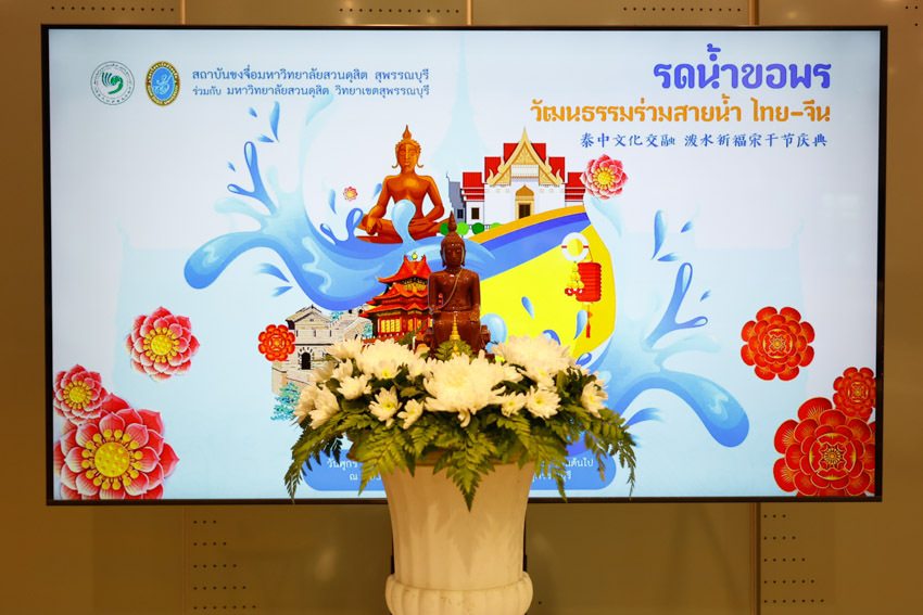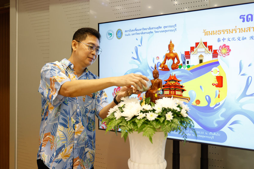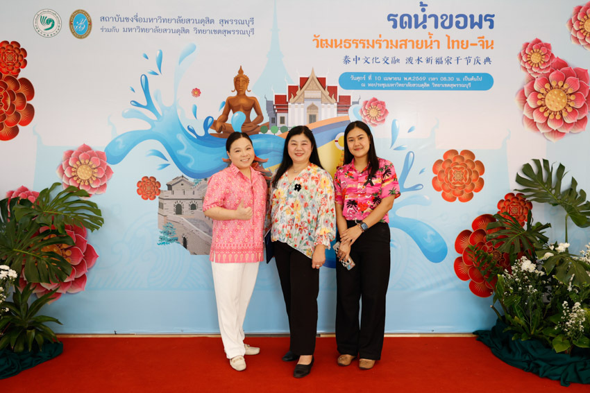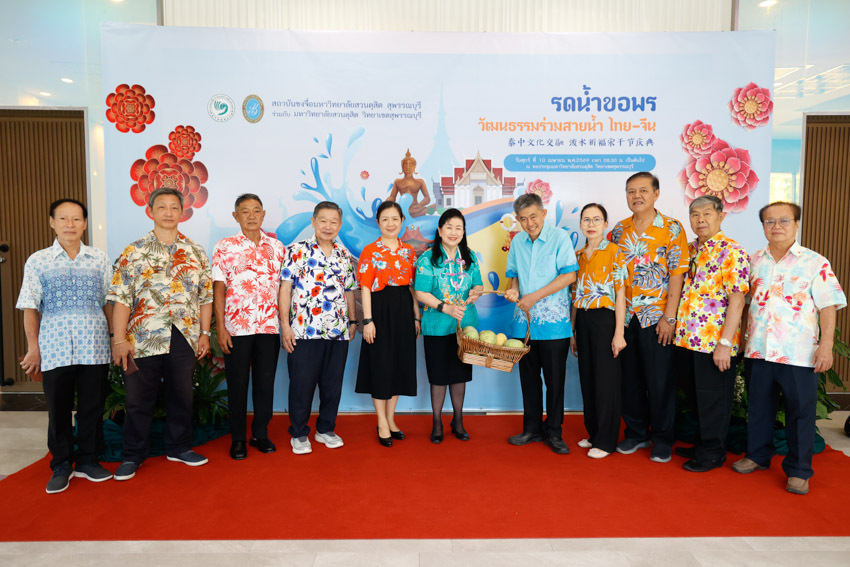 มหาวิทยาลัยสวนดุสิต วิทยาเขตสุพรรณบุรี ร่วมกับ สถาบันขงจื่อมหาวิทยาลัยสวนดุสิต สุพรรณบุรี จัดกิจกรรมรดนํ้าขอพร วัฒนธรรมร่วมสายน้ำ ไทย-จีน เทศกาลสงกรานต์ ประจําปี พ.ศ.2569 เพื่อส่งเสริม สืบสาน และอนุรักษ์ศิลปะ วัฒนธรรม และความเป็นสวนดุสิต และกระชับความสัมพันธ์อันดีระหว่างประเทศไทยและจีน ผ่านการจัดกิจกรรมรดนํ้าขอพรคณะผู้บริหารและผู้อาวุโส โดยมี ดร.วรานี เวสสุนทรเทพ รองอธิการบดีฝ่ายวิทยาเขตสุพรรณบุรี เป็นประธานกล่าวเปิดกิจกรรม และให้ศีลให้พรแก่บุคลากรฯ กิจกรรมภายในงานประกอบด้วย กิจกรรมเรื่องเล่าสงกรานต์ จีน-ไทย, สาธิตการทำน้ำอบ-น้ำปรุง, การแสดงงิ้วเปลี่ยนหน้า และการรดน้ำดำหัวผู้บริหารและผู้อาวุโส โดยมีผู้บริหารสถาบันขงจื่อฯ พร้อมบุคลากร คณะผู้บริหารมหาวิทยาลัยสวนดุสิต วิทยาเขตสุพรรณบุรี พร้อมบุคลากรและนักศึกษา และสโมสรโรตารี สุพรรณบุรี เข้าร่วมกิจกรรม ในวันศุกร์ที่ 10 เมษายน 2569 เวลา 09.30-14.30 น. ณ หอประชุมมหาวิทยาลัยสวนดุสิต วิทยาเขตสุพรรณบุรี